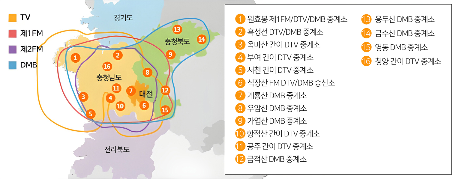 대전MBC TV/RADIO 가시청 구역도 안내 표