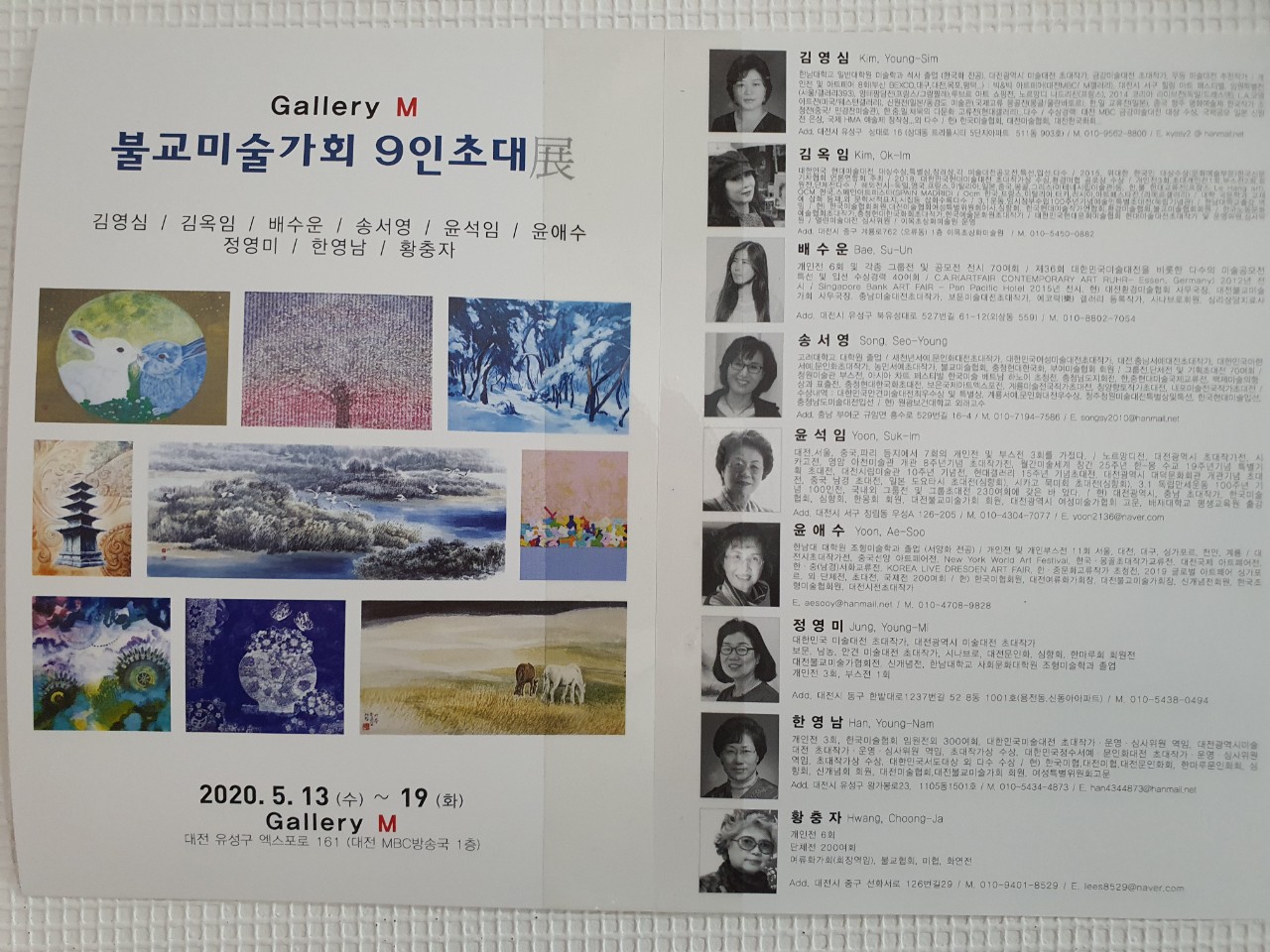 갤러리M 전시안내 불교미술가회 9인 초대展(2020. 05. 13 ~ 2020. 05. 26) 등록일 : 2020-05-15 11:18 조회수 : 215 수정 삭제 이전글 다음글 목록