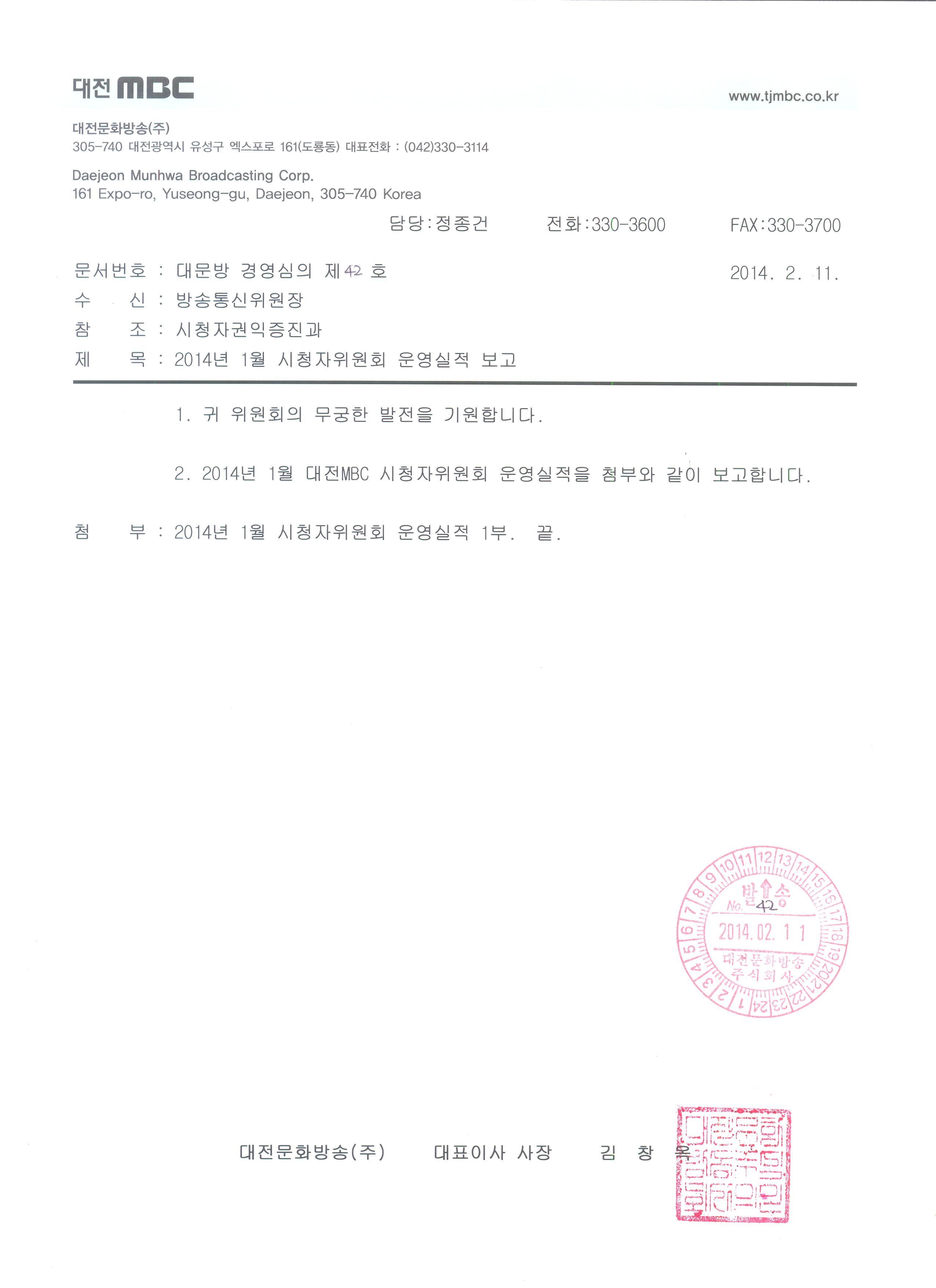 시청자위원회 회의록 2014년 01월 시청자위원회 회의록 등록일 : 2014-02-11 16:00 조회수 : 86 2014년 01월 시청자위원회 회의록 첨부파일 1GNP2AWEyfGqdna-시청자회의록_2014년 1월.pdf (198.45 KB) 다운로드 수정 삭제 이전글 다음글 목록