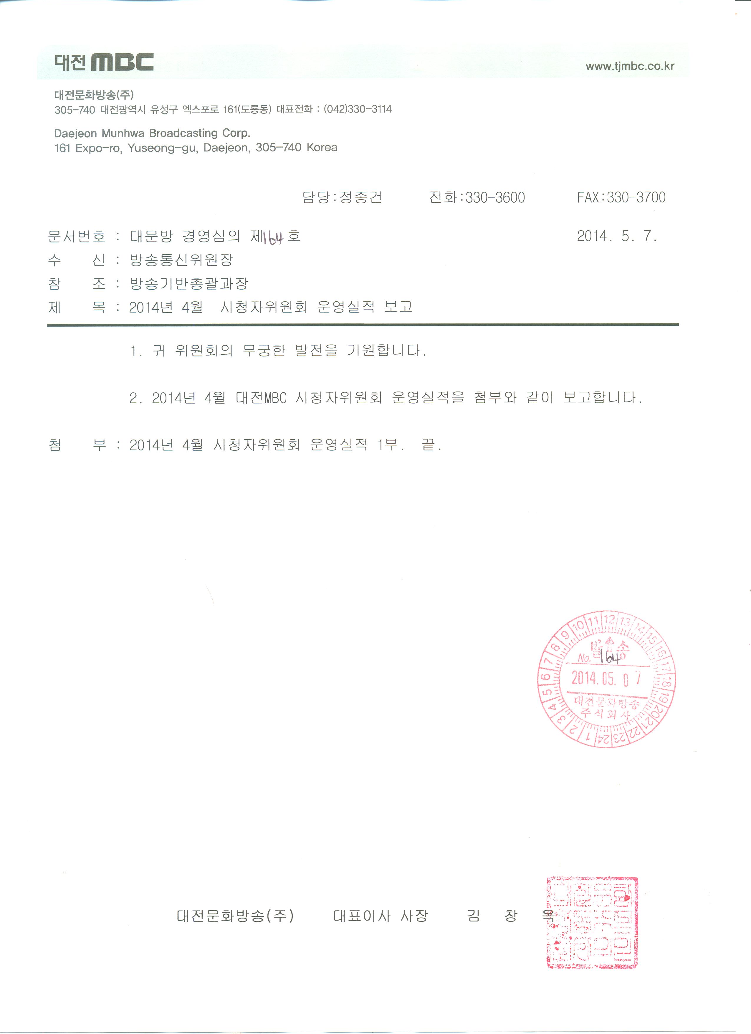 시청자위원회 회의록 2014년 4월 시청자위원회 회의록 등록일 : 2014-05-12 16:53 조회수 : 46 2014년 04월 시청자위원회 회의록 첨부파일 V6iidQhANn1vw-O-시청자회의록_2014년 4월.pdf (272.44 KB) 다운로드 수정 삭제 이전글 다음글 목록