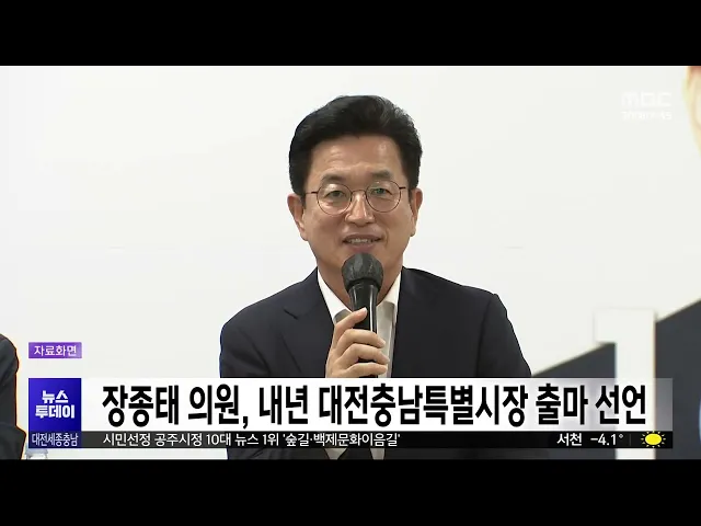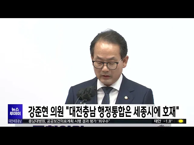 뉴스투데이 뉴스데스크뉴스투데이뉴스데스크 VOD(전체 다시보기)뉴스투데이 VOD(전체 다시보기)유튜브뉴스페이스북 뉴스카카오톡 뉴스인스타그램 뉴스 prev 2025.12.30 - 화요일 [리포트]충남 5만 석 돔구장 '급물살'⋯내년 1월 타당성 용역 ◀ 앵 커 ▶충남도가, 천안아산역 인근 5만 석규모의 대형 돔구장 건설과 관련해,다음 달 타당성 조사 용역을 시작하기로 했습니다.인근 충북도도 돔구장 건설을 추진하는 등 충청 지자체들이 관련 논의에 ... 최기웅 셀트리온, 예산에 신규 공장⋯2028년까지 3천억 투자 국내 대표 바이오기업인 셀트리온이입주할 예산군 내포신도시 농생명클러스터 1단계 산업단지 계획이,오늘 자로 승인 고시됐습니다.이번 승인으로 셀트리온은 예산 농생명 산업단지 11만9천㎡ 부지에 3천... 최기웅 충남 해넘이 해돋이 행사 곳곳에서 열려 오는 31일과 새해 첫날 충남 곳곳에서,다채로운 해넘이·해돋이 행사가 펼쳐집니다.서해에서 유일하게 일출·일몰을 감상할 수 있는 당진시 석문면 왜목마을에서는 오는 31일부터 해넘이·해맞이축제가 열려 ... 최기웅 충남도민 삶 만족도 상승⋯보육환경 만족도 하락 충남도민들의 전반적인 삶의 만족도는 지난해와 비교해 상승했지만, 보육 환경에 대한 만족도는 하락한 것으로 나타났습니다.충남도가 지난 5월부터 2달 동안만 5천 가구를 대상으로 실시한'2025 충남사회... 김지훈 서산시장 "국토부, 대산산단 공공 임대APT 추진해야" 한국토지주택공사가 서산 대산산단 공공 임대아파트 건설에 난색을 보이는 가운데, 이완섭 서산시장이,국토교통부를 향해 사업의 정상 추진을 촉구했습니다.이 시장은 "지난 2023년 국토부가 789억 원을 ... 김지훈 [리포트]대전 새 관문 '유성복합터미널'⋯"18년 만에 준공' ◀ 앵 커 ▶20년 가까이 표류하던 대전유성복합터미널이, 드디어 다음 달부터본격 운영에 들어갑니다.시외와 고속버스를 한 곳에서 탈 수 있고, BRT, 도시철도 1호선으로의환승도 쉬워져, 시민 교통 편의가 ... 박선진 대전시, 구암교차로 입체화 사업비 확보⋯"서북부 정체 해소" 대전시가 유성생명고 삼거리, 이른바 구암교차로 입체화 사업비455억 원을 확보해, 서북부 지역의교통난이 크게 해소될 전망입니다.구암교차로 입체화 사업은 2030년 완료되며외삼∼유성복합터미널 BRT 도... 김지훈 민주당 장종태 의원, 내년 대전충남특별시장 출마 선언 더불어민주당 대전 서구갑 장종태 의원이, 내년 지방선거에서 가칭 대전충남특별시장에출마하겠다고 선언했습니다.장종태 의원은 대전시의회에서 출마 기자회견을 열어 "지역 행정과 중앙 정치를 모두 경... 이승섭 강준현 의원 "대전충남 행정통합은 세종시에 호재" 강준현 더불어민주당 세종시당위원장이 세종시청에서 열린기자회견에서, "대전충남 행정통합은,세종시가 충청권 메가시티의 중심축으로도약할 중요한 기회가 될 것"이라고밝혔습니다.강 의원은 또, "국회... 이승섭 [리포트]꽉 막힌 도심 15분 만에 뚫는다⋯드론으로 혈액 배송 ◀ 앵 커 ▶응급 환자에게 혈액을 공급하는 일은 1분 1초가 급하지만, 꽉 막힌도로 위에서는 속수무책일 때가 많습니다.군부대나 섬마을 같은 경우는, 상황이 더 심각한데요.대전시가 군과 함께, 도심 상공... 이혜현 '뿌리면 1초 만에 지혈'⋯카이스트 가루형 지혈제 개발 카이스트 연구진이, 상처 부위에 뿌리기만 하면 1초 이내에 강력한하이드로겔 장벽을 형성해 출혈을 막는,가루형 지혈제를 개발했습니다.개발된 지혈제는 혈액 속 칼슘과 반응해즉시 겔 형태로 굳어지며무... 이혜현 천안시, 조류인플루엔자 인체감염 대책반 가동 천안에서 잇따라 조류인플루엔자가발생하자, 천안시가 인체감염 대책반을 꾸려 대응에 나섰습니다.시 보건소는 농장 종사자, 살처분 참여자 등 고위험군 1천102명을 대상으로인체감염 증상 유무를 살피고 ... 김윤미 '준예산 위기' 대전 유성구의회, 임시회서 본예산 통과 내년도 예산안 부결로 인건비 등 필수 경비만 집행하는 '준예산' 사태까지 거론됐던 대전 유성구가, 임시회에서 가까스로 새해 예산안을 처리했습니다.구의회는 8천2백억 원 규모의 내년도 본예산을 확정 ... 박선진 '집단 해고' GM 하청 노동자, 무기한 농성 돌입 120명 집단 해고를 통보받은한국 GM 세종물류센터 하청 노동자들이 기자회견을 열어,각각 사측에 해고 철회를,정부에 특별근로감독을 요구했습니다.노동자들은 "노동조합을 세웠다는 이유로사측이 20년 넘... 이승섭 [리포트]취재가 시작되자②보도로 드러난 '인면수심'⋯"법률 개정 이끌어" ◀ 앵 커 ▶올 한 해 대전MBC 뉴스가 만들어낸의미 있는 변화를 살펴보는 연말기획보도, '취재가 시작되자'두 번째 순서입니다.대전MBC는, 지난 2월 친부가 지적장애가 있는 딸에게 여러 차례친족 성폭력을 ... 김성국 관세청, 쿠팡 한·미 법인 간 외환거래 집중 조사 관세청이 본청 통관국과 조사국 등을투입해, 대규모 개인정보 유출사고를 낸 쿠팡의 수출입 통관 과정전반에 대한, 대규모 조사에 나섭니다.관세청은 쿠팡 미국 본사와 한국 법인의 관계가다국적기업 형태... 김지훈 '형제 참변' 대전 아파트 화재⋯전기적 요인 발생