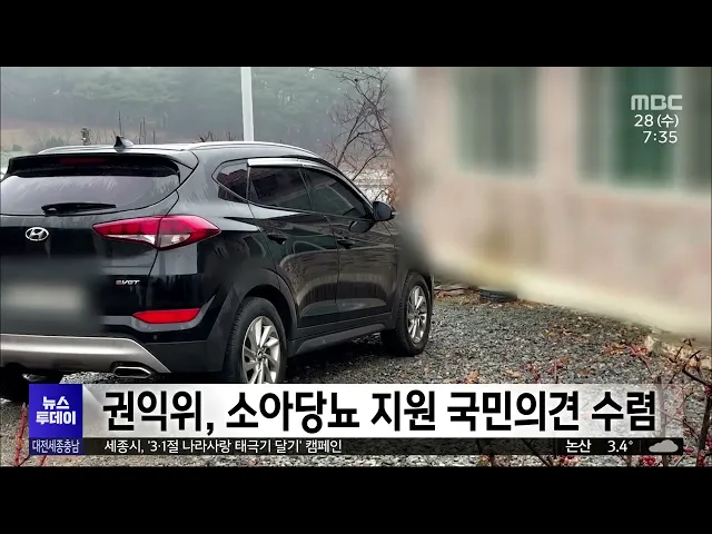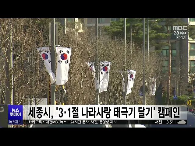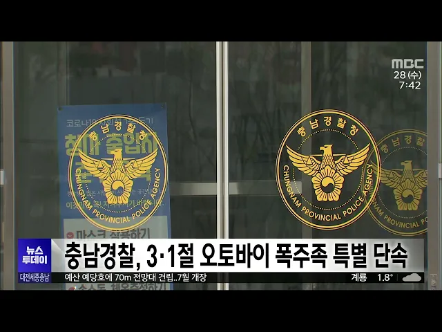 뉴스투데이 뉴스데스크뉴스투데이뉴스데스크 VOD(전체 다시보기)뉴스투데이 VOD(전체 다시보기)유튜브뉴스페이스북 뉴스카카오톡 뉴스인스타그램 뉴스 prev 2024.2.28 - 수요일 next 재정난 심화 '세종시' 천 억원 추경/투데이 ◀ 앵 커 ▶세수 부족으로 허리띠를 졸라매고 있는세종시가 올해 첫 추가경정예산안을 편성했습니다.지방세, 지방교부세 등 국비를 반영해 추경 천억 원을 편성했지만,당장 문화나 스포츠 사업 예산을 없애... 문은선 정부, '응급환자 사망' 현장 조사 보건복지부가 지난 23일, 대전에서 의료진이 없다는 이유 등으로 응급실 7곳에서진료를 거부당한 80대 응급환자가 숨진 것과 관련해 현장 조사를 벌였습니다.정부는 이와 함께 의사의 집단행동으로발생할 ... 이승섭 충남도, 의료원·보건소 확대 운영 검토 전공의들의 집단행동에 따른 의료공백이 심화하면서 충남도가공공 의료기관 운영시간 확대를 검토하고있습니다.충남도는 재난안전대책본부를 가동해동향을 파악하는 한편 상황이 악화하면4개 의료원과 시... 문은선 류현진 "8년 안에 우승한다"/투데이 ◀ 앵 커 ▶친정 팀인 한화이글스로 돌아온괴물 투수 류현진이 쾌조의 컨디션으로선수들과 함께 훈련을 소화하고 있습니다.류현진은 올 시즌 가을 야구 진출은 물론이고8년 계약 기간 안에 한국시리즈 우승... 뉴스팀 권익위, 소아당뇨 지원 국민의견 수렴 지난달 태안에서 당뇨병을 앓던아이를 포함해 일가족이 숨지는 사건이발생한 가운데 국민권익위원회가다음 달 10일까지 '1형 당뇨병' 지원 방법에 대한 국민 의견을 수렴합니다.설문은 1형 당뇨병에 대한 ... 문은선 충남도의회, 이륜차도 공회전 제한 대상 포함 추진 충남도의회가 공회전 제한 대상에 오토바이 등 이륜자동차를 포함하고 제한 지역도 공동주택까지 확대하는 방안을 추진합니다.도의회가 입법예고한 자동차 공회전 제한에 관한 조례 일부 개정안에는 이륜... 김광연 현역 탈당 불출마 잇따라..총선 판도 급변/투데이 ◀ 앵커 ▶각 당의 공천 작업이 속도를 내면서현역 의원의 탈당과 불출마 선언이잇따르는 등 정치권이 요동치고 있습니다.이들의 향후 거취는 총선 판세에 영향을 주는 변수가 될 전망입니다.고병권 기자가... 고병권 더불어민주당, 대전 중구 공천 '박용갑·정현태' 2파전 더불어민주당 전략공천관리위원회가 황운하 의원의 불출마로 전략 선거구가 된 대전 중구를 예비후보자 2인 경선으로 결정했습니다. 이에 따라, 대전 중구의 민주당 후보는 박용갑 전 중구청장과 정현태 ... 고병권 신축 아파트 공사 현장서 추락..2명 사상/투데이 ◀ 앵 커 ▶천안의 아파트 공사 현장에서작업 발판용 거푸집이 떨어지면서근로자들이 함께 추락해 한 명이 숨지고 한 명이 다쳤습니다.고용노동부는 관련 작업을 중지시키고중대재해처벌법과 산업안전보건법... 김광연 말다툼 끝 친구 흉기로 살해한 10대 항소심도 중형 대전고법 제3형사부가 친구와 말다툼을 벌이다가 흉기를 휘둘러 숨지게 한 혐의로재판에 넘겨진 10대 남학생의 항소심에서원심과 같은 징역 장기 10년, 단기 5년을선고했습니다.피고인은 지난해 2월, 서산... 이승섭 충남선관위, 사조직 만들어 선거운동한 일당 고발 충남선거관리위원회는 총선을 앞두고사조직을 만들어 선거운동을 하고 선거구민에게 음식물을 제공한 혐의로단체 관계자 등 3명을 검찰에 고발했습니다.이들은 지난해 11월 단체를 만들어 예비 후보자를 ... 김광연 충남경찰, 삼일절 폭주족 특별 단속 충남경찰청이 삼일절을 앞두고오토바이 폭주족이 자주 나타나는천안과 아산 지역을 중심으로 단속을 강화합니다.경찰은 이륜차의 불법 행위를 집중 단속하고 있고, 다음 달 1일에는 폭주족이 모일 것으로 ... 이승섭 세종시 '3·1절 나라사랑 태극기 달기' 캠페인 세종시가 세종시티앱을 통해 다음 달 5일까지 '3·1절 나라사랑 태극기 달기 캠페인'을 진행합니다.캠페인은 SNS에 태극기 달기 운동을 홍보한 인증글이나 태극기 달기 실천 인증 게시물을 세종시티앱에 올... 김지혜 "생강나무 3월 초·진달래 중순 개화..지난해와 비슷" 올해 3~4월은 평년과 기온이 비슷하거나약간 높을 것으로 전망돼 봄꽃 개화시기도지난해와 비슷할 것으로 전망됐습니다.산림청은 산림에서 가장 먼저 개화하는생강나무는 다음 달 6일, 진달래는 15일, 벚... 문은선 예산 예당호에 70m 전망대 들어서..오는 7월 개 예산 예당호를 한눈에 바라볼 수 있는높이 70m 전망대가 오는 7월 개장합니다.전망대 꼭대기 층에는 카페가 들어서 음료와 함께 예당호를 감상할 수 있고특히 전망대를 빛나게 할 미디어 파사드를비롯해 ... 김광연