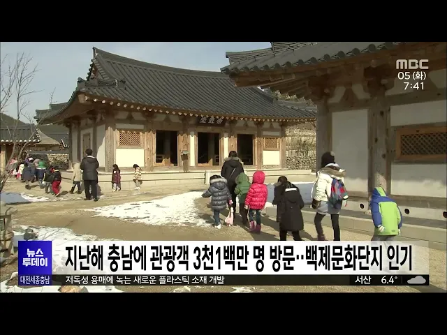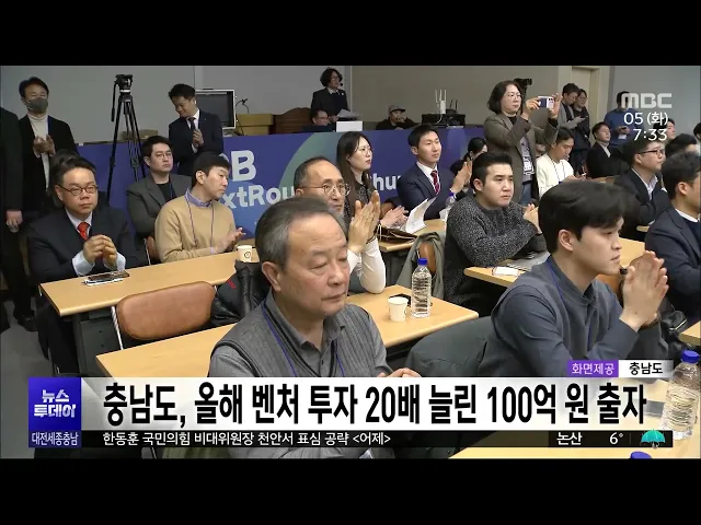 뉴스투데이 뉴스데스크뉴스투데이뉴스데스크 VOD(전체 다시보기)뉴스투데이 VOD(전체 다시보기)유튜브뉴스페이스북 뉴스카카오톡 뉴스인스타그램 뉴스 prev 2024.3.5 - 화요일 next 지역 의대 증원..전공의 복귀 '잠잠'/투데이 ◀ 앵 커 ▶대학마다 구성원 간에 이견은 있었지만결국 내년도 의과대학 정원 확대를 신청했습니다.2주째 진료를 거부하고 있는 전공의들은 아직 병원으로 돌아오지 않고 있고 인턴들도 대부분 계약을 포기... 이승섭 대전시, 66개 청년정책 사업 추진 대전시가 올해 일자리와 주거 등 청년정책 5대 분야, 66개 사업을 추진합니다. 시는 제1차 청년정책조정위원회를 열고 주거 청년 주택 공급, 일자리 대전형 코업 청년 뉴리더 양성, 청년통장 등 올해 청년... 조형찬 충남도, 올해 벤처 투자 20배 늘린다 충남도가 벤처 투자 활성화를 위해 지난해보다 20배 많은 100억 원을 출자합니다.도는 천안 충남창업마루나비에서 열린투자유치대회에서 '벤처 투자와기술 혁신의 중심 충남' 비전을 선포하고출자를 통해 ... 김태욱 세종시, 전세보증금반환보증 보증료 30만 원 지원 세종시가 전세사기 피해 예방을 위해 국토교통부와 함께 무주택 임차인들에게 전세보증금 반환보증 보증료를 최대 30만 원까지 지원합니다.지원 대상은 주택 임차보증금 3억 원 이하인 전세보증금 반환보... 조형찬 한동훈, 첫 번째 총선 격전지 천안 방문/투데이 ◀ 앵 커 ▶공천 작업이 마무리 단계에 접어들면서한동훈 국민의힘 비상대책위원장이천안에서 총선 격전지 순회를 시작했습니다.치우치지 않는, 충청의 마음을 얻고 싶다며 청년과 상인들을 만나 지지를 호... 김광연 충남도, 정부 목표보다 온실가스 더 감축 충남도가 지난해 정부 권장 목표보다3.2% p 더 많은, 39.2%의 공공부문온실가스 감축률을 기록했다고 밝혔습니다.지난해 충남지역 청사와 관용차량 등공공부문에서 배출한 온실가스는 7만8천61t으로, 도는... 김태욱 충남도, 충청유교문화권 관광개발사업 순항 오는 2028년까지 도내 15개 시·군 17개 사업에 2,876억 원을 투입하는 충청유교문화권 광역관광개발사업이 순항하고 있습니다. 충남도는 홍성 홍주천년 양반마을과 공주 충청감영 상생 마을 등 9개 사업은... 김태욱 홍성군, 백종원 대표와 '바비큐 특화시장' 추진 홍성군이 백종원 더본코리아 대표와 함께전통시장 활성화에 나섭니다.군과 더본코리아는 업무협약을 맺고지난해 함께 했던 홍성 글로벌 바비큐축제의 연장선에서 홍성 특산물을 활용한 특화 메뉴로 오는 9... 문은선 공천 '현역·주류' 강세/투데이 ◀ 앵 커 ▶총선이 30여 일 앞으로 다가오면서 여, 야의 대진표도 거의 완성됐습니다.현역 의원들의 컷오프와 불출마도 있었지만 경선에 나선 현역들의 경우 모두 승리했고 각 당의 이른바 당내 주류가 강세... 조형찬 충남도, 금산양수발전소 업무협약 충남도가 금산군, 한국남동발전과 업무협약을 맺고 금산양수발전소 건설 사업에 협력하기로 했습니다.협약에 따라 각 기관은 발전소 조기 건설과함께 지속 가능한 발전을 위한 정책을 개발하고 발전소를 ... 김태욱 대전시, 올해 전기차 3,367대 지원 대전시가 올해 전기자동차 3천3백여 대의 보조금을 지원합니다. 보조금 지원은 연비, 주행거리, 에너지 효율 등을 고려해차종 별로 차등 지원하며 전기 승용차는 대당 최대 990만 원, 전기 화물차는 최대 ... 조형찬 지난해 충남에 관광객 3,100만 명 방문 지난해 충남을 찾은 관광객이코로나19 이전보다 많은 3천백만여 명에 달한 것으로 집계됐습니다.충남도가 한국문화관광연구원 자료를 분석한 결과 지난해 충남 관광객은3,100만 9천여 명으로 1년 전보다 1... 김태욱 어르신이 운영하는 편의점/투데이 ◀ 앵 커 ▶고령화가 가속화하면서 건강도 챙기고 보람은 물론 소득도얻을 수 있는 일자리는 이제 어르신들에게 선택이 아닌 필수가 됐죠,어르신이 직접 운영하는 편의점이문을 여는 등 어르신 일자리에 대... 문은선 세종시, 공동주택 층간소음 측정 서비스 시범단 세종시가 층간소음관리위원회가 구성된 공동주택을 대상으로 층간소음 측정서비스 시범사업 단지를 모집합니다.시는 다음 달(4)부터 12월까지 공동주택 3개 시범단지를 선정 운영하며, 시범 단지에는 소음... 조형찬