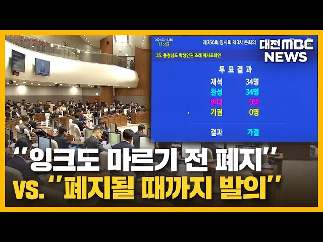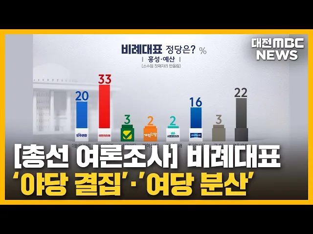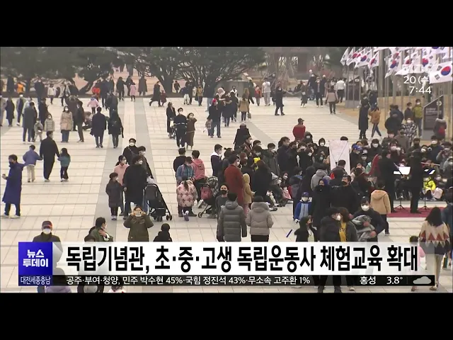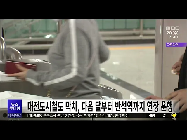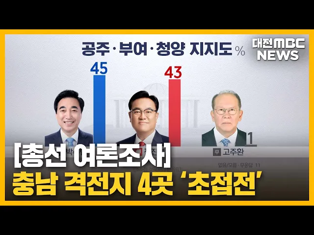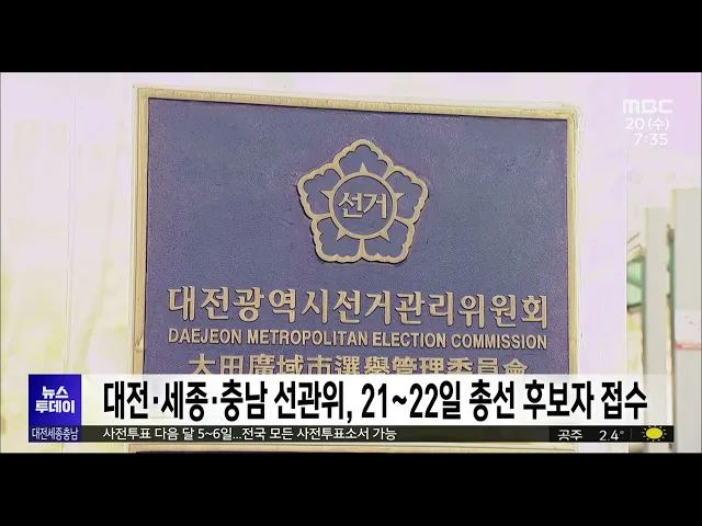 뉴스투데이 뉴스데스크뉴스투데이뉴스데스크 VOD(전체 다시보기)뉴스투데이 VOD(전체 다시보기)유튜브뉴스페이스북 뉴스카카오톡 뉴스인스타그램 뉴스 prev 2024.3.20 - 수요일 next 충남 표심 초접전/투데이 ◀ 앵 커 ▶대전MBC가 격전지 여론조사를 통해지역 유권자들의 표심을 가늠해 보는보도, 어제에 이어 오늘도 전해드립니다.오늘은 천안갑, 공주부여청양, 서산태안, 홍성예산 등 충남 네 지역구에서 유권자... 박선진 충남 비례대표 '1·2·3당 지지세'/투데이 ◀ 앵 커 ▶이번 충남지역 여론조사에서 비례대표는여당 지지자들은 국민의미래에 결집하고, 야당 지지자들은 더민주연합과 조국혁신당에 분산되는 현상이 두드러집니다.정부 견제와 국정 안정은 오차범위 ... 조형찬 대전·세종·충남 선관위, 21~22일 총선 후보자 접수 대전·세종·충남 선거관리위원회가오는 21일과 22일 이틀간 관할 선거구 선관위에서 제22대 국회의원과재·보궐선거 후보자 등록 신청을 받습니다. 후보 등록을 하더라도 본격적인 선거운동은 오는 28일부터... 김태욱 대전시, 4월 총선·재선거 등 선거사무 착수 대전시가 오는 4월 10일 실시되는 제22대 국회의원선거와 중구청장 재선거, 유성구의원 나선거구 보궐선거 사무에 착수했습니다.시는 전체 82개동에서 선거인명부를 작성하고, 이달 안에 투표소 공고와 설... 조형찬 충남대 의대 교수 비대위 "곧 사직서 제출 논의" 정부의 의과대학 정원 확대에 반대하는충남대 의대 교수 비상대책위원회가조만간 총회를 열어 개인 의사에 따른사직서 제출을 논의하겠다고 밝혔습니다.비대위는 호소문을 내고,정부가 추진하는 의대 증원... 이승섭 4.10 총선, 우리도 뛴다!/투데이 ◀ 앵 커 ▶이번 총선에선 국회의원만 뽑는 게 아니라대전 중구청장 재선거와 광역, 기초의원 재보궐 선거도 지역 6곳에서 실시됩니다. 국회의원 선거에 비해 관심이 덜 하지만지역 일꾼을 뽑는 중요한 선... 고병권 대전역세권 복합2구역 본격 추진 대전 동구가 대전역세권 재개발 핵심 사업인복합2구역 재개발 사업의 사업시행계획을 인가해 사업이 본격화될 전망입니다.이번 사업으로 재정비촉진지구인 소제동 291-2번지 일원 2만 8,369㎡에는 시에서 ... 박선진 우송학원 창립 70주년 기념 음악회 개최 우송학원 창립 70주년을 기념한미국 워싱턴대학교의 '윈드 앙상블' 팀의 초청 음악회가 어제우송예술회관에서 열렸습니다.우송대 재학생과 다문화 가족 등 천 300여 명이 참석한 가운데 열린 이번 음악회... 뉴스팀 대전도시철도 막차 다음 달부터 반석역까지 연장 운행 다음 달부터 대전도시철도 막차가 기존 정부청사역에서 반석역까지 연장운행합니다.이에 따라 도시철도 막차는 오후 11시 40분판암역을 출발해 다음 날 오전 0시 20분반석역 도착으로 시간이 조정됩니다.... 박선진 충남도의회, 학생인권조례 또 폐지/투데이 ◀ 앵 커 ▶한 달 전 극적으로 부활한충남학생인권조례가 또다시 폐지 수순을밟고 있습니다.국민의힘 소속 충남도의원들이조례 폐지안을 다시 상정해 본회의를통과한 건데요, 시민사회는 민생 현안이 산적한... 김태욱 세종농업기술센터, 영농부산물 소각 자제 당부 봄철 산불 위험이 커지면서영농부산물 소각에 대한 경계심도커지고 있습니다.세종시농업기술센터는 농촌진흥청 조사 결과 논두렁을 태운 직후 해충은 11% 정도 사라졌지만 거미 등 해충의 천적은 89%가 사... 박선진 충남도 보건환경연구원, 초미세먼지 사전 알림 추진 충남도 보건환경연구원이 미세먼지 경보발령 내용을 24시간 전에 알려주는 '초미세먼지 사전 알림 서비스'를 추진합니다.연구원은 지난달 환경부가 발표한 봄철 초미세먼지 줄이기 범부처 대응과도의 봄철... 김태욱 독립기념관, 초·중·고생 독립운동사 체험교육 확대 독립기념관이 올해 초중고 학생을대상으로 하는 독립운동사 체험 교육을확대 운영합니다.기념관 측은 독립군의 삶과 활동을 체험하는 독립군 체험학교와 역사왜곡의 실상을 알고 대응할 수 있는 독도학교 ... 김광연 충남도, 청년문화예술패스 15만 원 지원 충남도가 오는 29일부터 도내 2005년생,19살 청년 6,800여 명에게 연간 15만 원의청년문화예술패스를 발급합니다.청년들의 문화 소비 확대를 위한 이 사업은 영화와 대중가수 콘서트를 제외한 연극과 뮤지... 김태욱