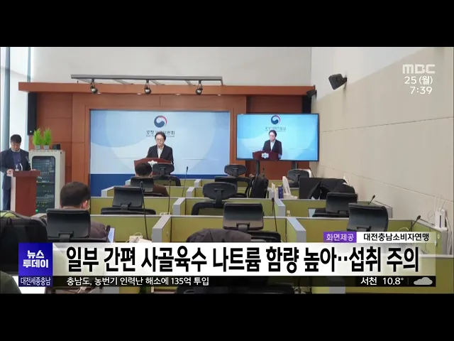 뉴스투데이 뉴스데스크뉴스투데이뉴스데스크 VOD(전체 다시보기)뉴스투데이 VOD(전체 다시보기)유튜브뉴스페이스북 뉴스카카오톡 뉴스인스타그램 뉴스 prev 2024.3.25 - 월요일 next 대형 건설사 믿었는데..하자 투성이/투데이 ◀ 앵 커 ▶최근 새로 지은 공동주택에 하자가 많다는 입주민들의 민원이 잇따르고 있습니다.입주가 미뤄지는 것은 물론이고물이 새고 철근이 드러나는 등안전 문제도 제기되고 있습니다.이러한 피해를 예방... 뉴스팀 '재산 축소' 이영선 세종갑 후보 공천 취소 더불어민주당이 공천과정에서 재산을 허위로 제시한 이영선 세종갑 후보를 제명하고 공천을 취소하기로 했습니다.민주당은 강민석 대변인 명의의 서면브리핑을 통해, 이 후보가 다수의 주택을 보유하고 갭... 조형찬 조국혁신당 대전시당 창당 "대한민국 구원 투수" 조국혁신당 대전시당 창당대회가 어제 대전 기독교연합봉사회관에서 조국 당대표와황운하 의원 등이 참석한 가운데 열려대전시민과 충청도민의 지지를 호소했습니다.'검찰독재 조기종식'을 기치로 내건 조... 조형찬 무주공산 대전 서구갑, 새인물 누구?/투데이 ◀ 앵 커 ▶대전 서구갑 선거구는 이곳에서만 내리 6선을 한 박병석 전 국회의장의불출마로 무주공산이 된 곳이죠. 여야 거대 정당 공천을 받은 후보들은 일제히 지역 개발을 최우선 공약으로 내세우면서도 ... 고병권 일부 간편 사골육수 나트륨 함량 높아..섭취 주의 대전충남소비자연맹이 시중에 판매 중인 간편 사골육수 10개 제품을 분석한 결과, 제품별로 나트륨 함량이 큰 차이를 보였습니다.100g당 나트륨 함량이 제품 간 최대 13배 차이가 났으며, 한 제품은 나트... 뉴스팀 충남도 "과수화상병 막는다"..4개 시군 집중 관리 충남도가 과수화상병 중점 관리지역인 도내 4개 시군을 대상으로 집중 예방 활동에 나섭니다.충남도 농업기술원은 천안과 아산, 당진, 예산 4개 시군에 있는 113ha의 농가 131곳을 대상으로 약제 방제와 ... 뉴스팀 대청호 벚꽃축제 29-30일, 천안위례축제는 1주일 연기 '대청호 벚꽃축제'가 오는 29일부터 사흘간 26.6km 길이의 벚꽃길에서 '도심 속 힐링, 자연 속 우리'라는 친환경 생태를 주제로대전 동구 대청호 일대에서 열립니다.오는 29일 개막식을 시작으로 초대 가... 뉴스팀 충남도, 956억 원 투입해 농업 수리시설 개보수 충남도가 올해 국비 956억 원을 투입해 도내 102개 지구에 있는 수리시설을개보수합니다.도는 현재 농업용 수리시설이 오래됐고파손과 호우 피해 등으로 관리가 시급하다며,양·배수장과 저수지, 용수로 등... 뉴스팀 충남경찰청, 천안서 음주단속해 13명 적발 충남경찰청과 충남자치경찰위원회가 주말인 그제 밤 천안시 서북구 두정동 일대에서 음주운전 집중 단속을 벌인 결과음주운전자 13명을 적발했습니다.경찰은 인력 75명을 배치해 2시간 가량 음주 단속으로... 뉴스팀 합강 습지 보호 위한 시민단체 네트워크 발족 세종환경운동연합 등 충청권 10개 시민단체가 세종시 합강 습지를 보호구역으로 지정하기 위해 합강습지보호지역시민네트워크를 발족하고 본격적인 활동에 들어갔습니다.시민네트워크는 세종시가 신도시 ... 뉴스팀