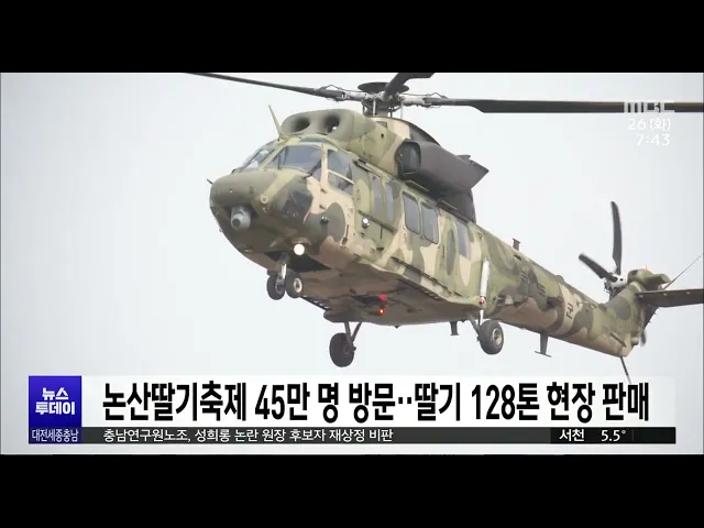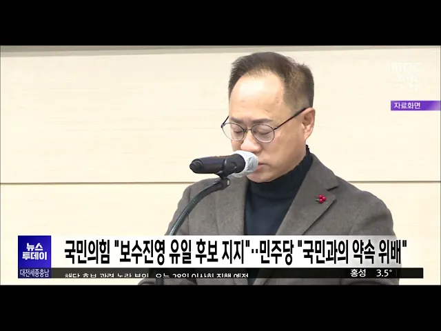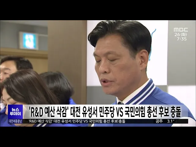 뉴스투데이 뉴스데스크뉴스투데이뉴스데스크 VOD(전체 다시보기)뉴스투데이 VOD(전체 다시보기)유튜브뉴스페이스북 뉴스카카오톡 뉴스인스타그램 뉴스 prev 2024.3.26 - 화요일 next 민주당 세종갑 '공천 취소' 후폭풍/투데이 ◀ 앵 커 ▶더불어민주당이 경선을 거쳐 후보 등록까지 마친 세종갑 이영선 후보의 공천을 전격 취소했습니다. 이 전 후보가 다수의 주택을 보유하고 이른바 갭 투기를 한 의혹이 있음에도 재산 보유 현황을... 박선진 무주공산 세종갑..양자대결/투데이 ◀ 앵 커 ▶유권자들의 선택을 돕기 위해총선 후보들의 공약을 들여다보는 시간, 오늘은 주말 사이 가장 뜨거운 관심 지역구가 된 세종갑입니다.이 지역은 더불어민주당 후보의 공천 취소로국민의힘과 새로... 박선진 'R&D 예산 삭감' 놓고 대전 유성 민주당, 국민의힘 총선 후보들 충돌 정부의 과학기술 연구개발 예산 삭감을 놓고대덕특구가 있는 대전 유성구 민주당과 국민의힘 총선 후보들이 정면충돌했습니다.더불어민주당 대전 유성갑과 유성을총선 후보인 조승래, 황정아 후보는 어제 ... 고병권 대전 중구청장 무소속 후보 지지 놓고 여야 공방 4월 10일 총선과 함께 치러지는 대전 중구청장 재선거에서 국민의힘 대전시당이 무소속 이동한 후보 지지를 공식화하자더불어민주당이 무공천 약속을 파기하는 것이라고 비난했습니다.국민의힘은 자당 귀... 조형찬 중투 통과했지만...개회식 사실상 무산/투데이 ◀ 앵 커 ▶대전 서남부 스포츠 종합타운이 중앙투자심사를 통과하는 등 계획이 수립된 지 13년 만에본궤도에 올랐습니다.그러나 당초 기대했던 2027 하계 세계대학 경기대회 사용은 사실상 무산됐습니다.... 고병권 의대 교수 '집단 사직' 시작..외래 진료 차질 우려 전국 의과대학 교수들이 예고한 대로어제부터 지역 의대 교수들도 사직서를 내기 시작했습니다.충남대 의대 교수 비상대책위원회는 정부의 의대 증원 방침에 변화가 없어예정대로 사직서를 낸다고 전했고 ... 뉴스팀 충남연구원노조, 성희롱 논란 원장 후보자 재상정 비판 한국노총 충남연구원지부가 도청에서 기자회견을 열고 성희롱 갑질 논란이 있는 원장 후보자가 한 차례 공모에서 탈락했는데도이사회가 선임안을 재상정하려 한다며 비판했습니다.이들은 지난 15일 성희롱... 김태욱 충남도, 'KADEX 2024' 계룡에서 개최 충남도가 대한민국 국제방위산업전시회, 'KADEX 2024' 유치했습니다.도는 계룡군문화축제와 지상군페스티벌 기간인 오는 10월 2일부터 6일까지 계룡대 활주로 일원에서 'KADEX 2024'를 함께 개최할 예정입... 김태욱 '포장 갈이' 카페..."행정 처분 못 해"/투데이 ◀ 앵 커 ▶대기업 빵집의 제품을 포장만 바꾸는이른바 포장갈이를 해 더 비싼 값에 팔아온 디저트 카페 소식, 지난주에 전해드렸죠,오랜 기간 소비자를 속여 왔지만법률 사각지대에 놓여 있어정작 업체에 ... 뉴스팀 논산딸기축제 45만 명 방문..딸기 128톤 현장 판매 지난 21일부터 나흘간 열린 논산딸기축제장에 45만 명이 방문하고 128톤의 딸기가 현장에서 판매되는 등 높은 흥행 성적을 거둔 것으로나타났습니다.논산시는 딸기 수확체험과 헬기탑승,딸기족욕 체험 등 ... 조형찬 서천군, 1호 고향사랑기금사업에 특화시장 재건축 서천군이 제1호 고향사랑기금사업으로서천특화시장 재건축을 선정하고지난해 모은 고향사랑기부금 1억 8천만 원과 올해 기부금 전액을 특화시장 재건축에 사용하기로 했습니다.서천군은 서쪽 주차장 부지... 김태욱