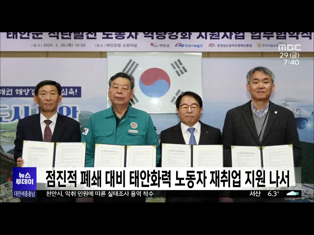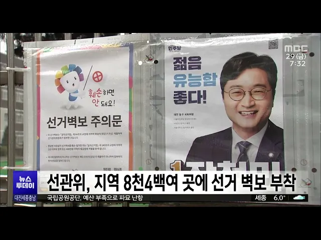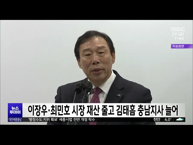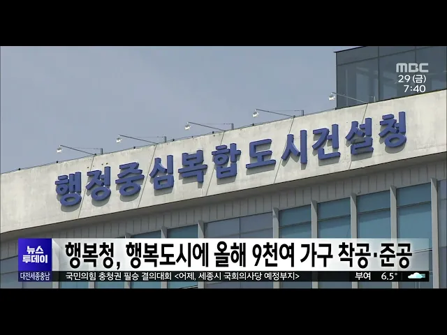 뉴스투데이 뉴스데스크뉴스투데이뉴스데스크 VOD(전체 다시보기)뉴스투데이 VOD(전체 다시보기)유튜브뉴스페이스북 뉴스카카오톡 뉴스인스타그램 뉴스 prev 2024.3.29 - 금요일 next 공식 선거운동 첫날 각 당 총력전/투데이 ◀ 앵 커 ▶4.10 총선 공식 선거운동 첫날을 맞은 어제,각 당이 대규모 유세전을 벌였습니다.국민의힘은 국회 세종 완전 이전 공약을부각했고, 더불어민주당은 정권 심판론을 강조했습니다.새로운 미래와 ... 고병권 지역 8천4백여 곳에 선거 벽보 부착 대전과 세종, 충남선거관리위원회는공식 선거운동 시작에 따라 유권자 통행이 많은 곳을 중심으로 국회의원선거 후보자 선거 벽보를 부착합니다.선거 벽보는 대전 천4백여 곳, 세종 720곳, 충남 6천여 곳... 문은선 논산·계룡·금산, 연임 시장VS국방 전문가/투데이 ◀ 앵 커 ▶유권자들의 선택을 돕기 위해총선 후보들의 공약을 들여다보는 시간,오늘은 논산·계룡·금산 선거구입니다.현역 의원이 지역구를 옮긴 이곳에선 3선 논산시장 출신의 더불어민주당 황명선 후보와 ... 박선진 '행정수도 지위 확보' 세종시법 전면 개정 착수 세종시가 행정수도 완성을 위한 지위와 기능 확보 등을 담은 세종시법 전면 개정을위한 구체적인 법령안 작성에 들어갔습니다.시는 시청에서 워크숍을 열고 세종시법에 입법·사법·행정 등 국가 주요 기관... 조형찬 대덕과학문화센터 매각..공동주택 건설 추진 대덕연구개발특구 한가운데에서20년 넘게 흉물처럼 방치됐던대전 대덕과학문화센터가 매각 절차를마쳤습니다.목원대는 한 특수목적법인으로부터잔금 828억 원을 받아 건물 소유권을 이전했고,매각 대금으... 이승섭 대전지방고용노동청·안전보건공단, 안전보건포럼 출범 고용노동부 대전지방고용노동청과 안전보건공단 대전세종광역본부는 대전 IBS과학문화센터에서 공공기관, CEO 단체, 민간 협의체 관계자 등이 참석한 가운데 대전·세종·충청지역 일터 안전보건포럼 출범식... 최기웅 전국 국립공원 무덤 수만 개...'파묘' 하세월/투데이 ◀ 앵 커 ▶국립공원으로 지정된 전국의 명산에5만 기 가까운 무덤이 있다는 사실,알고 계시나요?무덤 대부분은 등산로가 아닌 산 깊숙한 곳에있어 산림 훼손이나 산불 위험이 큽니다.보도에 윤소영 기자입... 뉴스팀 "점진적 폐쇄 대비"…태안화력 노동자 재취업 지원 맞손 내년부터 오는 2032년까지 태안화력 1~6호기 점진적 폐쇄를 앞두고태안군과 한국서부발전, 한국기술교육대 등이 업무협약을 맺고 석탄발전 노동자의 역량 강화 지원에 힘쓰기로 했습니다.이들은 태안화력 ... 문은선 행복청, 행복도시에 올해 9천여 가구 착공·준공 올해 세종시에 9천여 가구 공동주택이 착공 또는 준공됩니다.행복도시건설청이 발표한 2024년 행복도시 공동주택 공급계획을 보면, 합강동과 산울동 2개 생활권에 4,704가구가 착공되고산울동과 해밀동에... 조형찬 새 학기 홍역·수두 주의보..부여서 두 달새 6명 환자 새 학기 시작과 함께 지역에서수두 환자가 잇따라 발생하고 있습니다. 부여군은 지난달과 이달 들어 학원과 유치원, 중학교 등 3곳에서 6명의 수두 환자가 발생한 것으로 집계했습니다.법정 감염병 제2급... 문은선 올바른 완강기 사용법은?/투데이 ◀ 앵 커 ▶최근 공동주택이나 숙박업소에서 난 불로인명 피해가 이어지고 있습니다.다중이용시설에는 화재가 발생하면사람들이 건물 밖으로 신속하게 대피할 수 있도록 완강기가 설치돼 있는데요.이 완강기... 뉴스팀 내포종합병원 중투심사 3개월⟶40일 내포신도시 종합병원 건립이 정부의 패스트트랙 추진 사업으로, 서산 오토밸리 산업단지 이차전지 공장 증설은 투자 관련 규제 개선 사업에 포함됐습니다.정부는 내포 종합병원 건립 중앙투자심사기간을 3... 문은선 이장우·최민호 시장 재산 줄고 김태흠 충남지사 늘어 이장우 대전시장과 최민호 세종시장은재산이 줄고, 김태흠 충남지사는 다소 는 것으로 나타났습니다.공직자윤리위원회가 관보에 공개한올해 공직자 재산 신고내역을 보면,이장우 시장은 25억 2천여만 원, ... 고병권