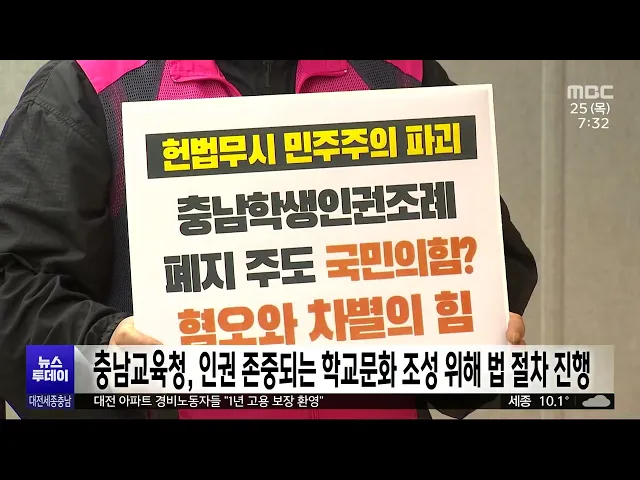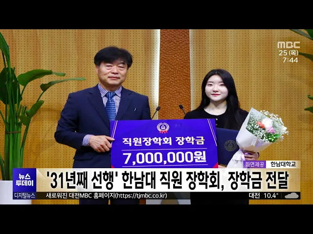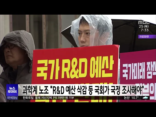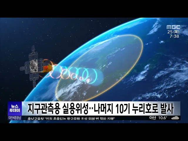뉴스투데이 뉴스데스크뉴스투데이뉴스데스크 VOD(전체 다시보기)뉴스투데이 VOD(전체 다시보기)유튜브뉴스페이스북 뉴스카카오톡 뉴스인스타그램 뉴스 prev 2024.4.25 - 목요일 next CTX 속도 내나?/투데이 ◀ 앵커 ▶대통령이 약속한 충청권 광역 급행철도CTX 사업이 2028년 착공을 목표로 속도를 내고 있습니다.지난 총선 이후 처음 열린 관계 기관 회의에서정부와 충청권 지자체가 강한 사업 추진 의지를 재확... 고병권 충남학생인권조례, 재의 표결 끝에 폐지 결정 총남학생인권조례 폐지안이 충남교육감 재의 요구로 네 번째 도의회 표결에 부쳐진 가운데, 표결 참여 의원 48명 중 찬성 34명, 반대 14명으로 결국 폐지됐습니다.이와 관련해 위기충남공동행동 등 시민사... 김태욱 과학계 노조 "R&D 예산 삭감 등 국정조사해야" 올해 정부가 연구개발 예산을 삭감한 것과 관련해 국회가 국정조사에 나서야 한다는 주장이 과학계에서 나오고 있습니다.전국과학기술노조와 전국대학원생노조는 공동 성명을 내고 "올해 RD 예산이 국가재... 김윤미 공통 공약 실천에는 여·야 정쟁 없어야/투데이 ◀ 앵 커 ▶4.10 총선에 출마한 지역 후보들,지역민의 삶과 미래를 바꾸겠다며저마다 굵직한 공약들을 제시했죠.22대 국회에서 이 공약들이 얼마나 실현될 수 있을지, 다시 한번 점검해 보는 기획보도 이어... 김태욱 소진공 "직원 안전·업무여건 개선위해 이전 불가피" 대전 중구에서 유성으로 이전을 추진 인 소상공인시장진흥공단이 기자회견을 열고, 이전 당위성을 주장하며 강행 의지를 재차 밝혔습니다. 공단 측은 현 사옥은 업무공간이 협소한데다 안전사고 발생 등 ... 조형찬 초소형 군집위성 1호기 발사 성공..항우연 지상국과 교신 국산 초소형 군집위성 1호기가어제 오전 뉴질랜드의 발사장에서 성공적으로 발사돼지상국과의 교신에도 잇따라 성공했습니다.과학기술정보통신부는"항공우주연구원 지상국과의 첫 교신을 통해 태양전지판... 김윤미 "전자담배 기술 발명 보상금 달라"..KT&G 전 연구원 2조 8천억 소송/투데이 ◀ 앵 커 ▶시중에서 흔히 볼 수 있는 궐련형 전자담배의 시장 규모가 내년에 2조 5천억원에 달할 것으로 전망되고 있는데요, 그런데 이 전자담배를 처음 개발했다고 주장하는 KTG의 전직 연구원이 발명 보... 최기웅 음주운전자 노려 사고 내 금품 뜯은 일당 송치 예산경찰서가 음주운전자를 상대로 고의 사고를 내 돈을 빼앗은 혐의로 40대 남성 등 4명을 구속하고, 또 다른 일당 1명을 불구속 상태로 검찰에 넘겼습니다.이들은 충남 일대에서 음주운전자를 따라가 일... 뉴스팀 대전 아파트 경비노동자들 "1년 고용 보장 환영" 대전 아파트 경비노동자 권리찾기 사업단과공공운수노조 대전 경비관리지회는 시청 앞에서 기자회견을 열고, 시가 관행적으로 초단기 계약을 맺는 아파트 경비 노동자의 고용기간을 1년 이상으로 보장하도... 뉴스팀 혁신 제품으로 '산불 막아라!'/투데이 ◀ 앵 커 ▶지난해 4월 대전과 충남은 며칠간 이어진대형 산불로 백 명이 넘는 주민들이 삶의 터전을 잃는 등 큰 피해를 입었는데요.산불을 보다 빠르고 효과적으로 잡기 위해 특수차량과 드론, 입는 장비... 박선진 '31년째 선행' 한남대 직원 장학회, 장학금 전달 한남대학교 직원들이 십시일반 모은 장학금을재학생 7명에게 전달했습니다.한남대 직원장학회는 교내에서 장학금 전달식을 열고, 학업 성적이 우수하고 모범이 되는 학생 7명을 선발해장학금 백만 원씩을 ... 이승섭