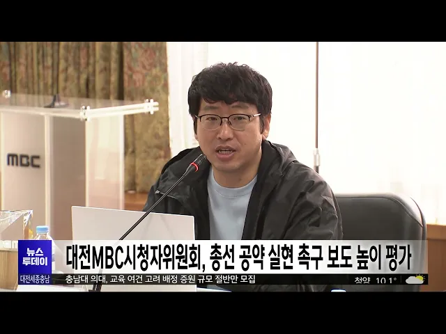 뉴스투데이 뉴스데스크뉴스투데이뉴스데스크 VOD(전체 다시보기)뉴스투데이 VOD(전체 다시보기)유튜브뉴스페이스북 뉴스카카오톡 뉴스인스타그램 뉴스 prev 2024.5.1 - 수요일 next 적자 '눈덩이'.. 운영 '빨간불'/투데이 ◀ 앵 커 ▶지난해 대전에 중증 장애 아동을 위한공공어린이 재활병원이 전국 최초로 문을 열었죠. 앞으로 전국에 보다 많은 재활병원이 들어서야 겠지만 장애 아동들에게 재활 치료의 기회가 조금이나마 ... 박선진 의대 증원 규모 윤곽..사립대 정부 안 유지한 듯 어제까지 각 대학이 내년도 입학 정원을 확정한 가운데 지역 사립대 의과대학은 대체로 정부로부터 배정받은 증원 규모를 유지한 것으로 알려졌습니다.을지대는 현재 40명인 의대 정원을내년에 정부 배정... 이승섭 지역 정치권, 영수회담 관련 반응 극명하게 엇갈려 그제 열린 윤석열 대통령과이재명 더불어민주당 영수 회담을 놓고지역 정치권 반응이 극명하게 엇갈렸습니다.황정아 더불어민주당 대전 유성을 국회의원 당선인은 SNS에 "대통령이 연구개발 예산 추경과 ... 고병권 대전·충남 경찰 "근로자의 날 집회로 교통 혼잡 예상" 오늘 근로자의 날을 맞아대전과 충남 주요 도심에서 대규모 집회가예정돼 일부 구간 차량이 통제됩니다.대전경찰청은 오늘민주노총 대전지역본부가 주최하는 노동절 집회가 대전시청 일원에서 열릴 예정이... 윤소영 보 운영 두고 곳곳서 마찰/투데이 ◀ 앵 커 ▶정부가 이르면 이달부터수문을 닫고 세종보를 재가동합니다.환경단체 등은 이에 반발하며 천막농성에 돌입했습니다.4대강 보 해체나 부분 해체 결정이번복되면서 곳곳에서 마찰을 빚고 있습니다.... 김광연 조승래 의원 "21대 국회 과방위 열어야" 더불어민주당 조승래 의원이 "제21대 국회 임기가 한 달도 남지 않았다며, 과학기술정보방송통신위원회를 조속히 열어야 한다"고 주장했습니다.과학기술정보방송통신위원회 간사인 조 의원은 보도자료를 ... 고병권 대전MBC시청자위원회, 총선 공약 실현 촉구 보도 높이 평가 4월 대전MBC 시청자위원회가 열려 지난 한달간의 보도와 프로그램을 평가하고 발전 방향 등을 논의했습니다. 위원들은 대전MBC가 객관적이고 공정한 선거 보도를 지향해 온 점과 총선 이후 '이제는 실천이... 최기웅 충남도, 김 신규 양식장 15% 늘린다 충남도가 해외시장에서 폭발적으로 수요가 늘고 있는 김 생산과 공급을 지원하기 위해 올해 기존 생산 면적의 15% 정도 되는양식장을 새로 개발합니다.도는 현재 도내 물김 생산량은 지난해 보다2.54% 늘... 김태욱 음주 사고 낸 교사..징계조차 없어/투데이 ◀ 앵 커 ▶충남의 한 고등학교 교사가음주운전을 하다 10대 자매를 치어크게 다치게 한 사실이 뒤늦게 알려졌습니다.사고를 낸 교사는 음주 운전 혐의로 기소됐지만여전히 교단에서 학생들을 가르치고 있습... 문은선 개통 1년 앞둔 충남형 M버스 하루 탑승객 57명에 그쳐 충남도가 천안·아산에서 수도권을 연결하는광역급행버스 M버스를 도입한 지 1년이 됐지만M버스 하루 평균 이용객은 50여 명에 불과한 것으로 나타났습니다.충남도 등에 따르면 지난해 5월 M버스 개통 이후... 문은선 농어촌공사, 예당저수지에서 통수식 진행 한국농어촌공사가 한 해 안전한 농사와풍년을 기원하며 첫 물길을 트는수문 개방 행사, 통수식을예산군 예당저수지에서 진행했습니다.예당저수지는 전국에서 4번째로 큰농업용 저수지로 4,700만 t의 물을 ... 김태욱 보령시, 이달 4~6일 국제모터페스티벌 개최 이번 달 4일부터 사흘 동안대천해수욕장 머드엑스포광장에서제3회 국제모터페스티벌이 열립니다.이번 축제에는 해외 완성차 업체들이 참가하고 최근 유행을 반영한 캠핑 트레일러 전시장과 관람객이 직접 ... 김태욱 "독주 막아라" 인텔-네이버-카이스트 '가우디 동맹'/투데이 ◀ 앵 커 ▶폭발적으로 성장하고 있는 전 세계 인공지능 반도체 시장은 사실상 미국 기업인 '엔비디아'가 독점하고 있습니다.여기에 맞설 새로운 AI 반도체 생태계를만들겠다며 인텔이 네이버에 이어 카이스... 김윤미