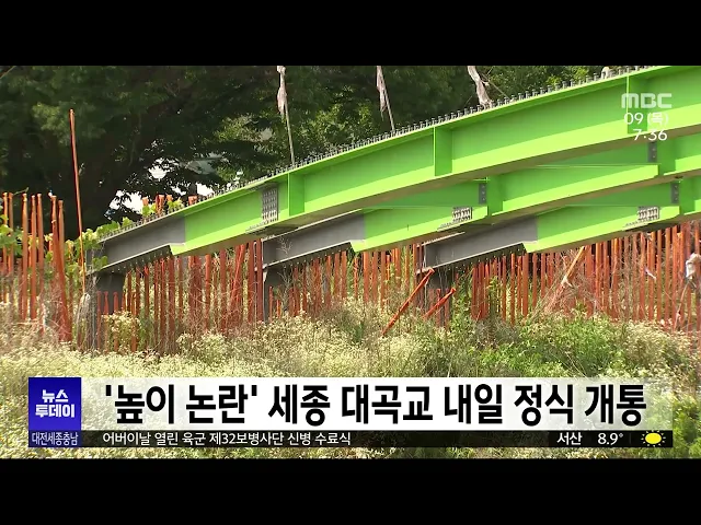 뉴스투데이 뉴스데스크뉴스투데이뉴스데스크 VOD(전체 다시보기)뉴스투데이 VOD(전체 다시보기)유튜브뉴스페이스북 뉴스카카오톡 뉴스인스타그램 뉴스 prev 2024.5.9 - 목요일 next '이전 완료' 보고만 8차례/투데이 ◀ 앵 커 ▶올해 초 원자로설계개발본부의 이전 추진이대전MBC 단독 보도로 알려지고, 지역 사회 안팎에서 공론화되면서 일단 지난 3월 졸속 이전은 막았는데요,그런데 그동안 본사인 한전기술은 정부 관계... 조형찬 대전시 "소진공 이전 중기부 방관이 한몫"..사과 요구 소상공인시장 진흥공단 이전 논란과 관련해 대전시는, 중소벤처기업부의 방관 또한 이번 이슈의 한 이유라며 오영주 중기부 장관의 공식 사과를 요구했습니다. 장호종 대전시 경제과학부시장은 기자회견을... 조형찬 충청권 최초 국제크루즈선 출항..일본-대만 거쳐 부산 입항 충청권 최초 국제크루즈선인 코스타세레나호가 어제 처음으로 승객 2,600여 명을 태우고 서산 대산항을 출발했습니다. 코스타세레나호는 일본과 대만을 거쳐 부산으로 입항하는 6박 7일간의 항해에 나섰는... 김태욱 개혁신당 당대표 선출 전당대회 대전서 시작 개혁신당이 차기 대표와 최고위원 선출을 앞두고 대전에서 첫 합동연설과 토론회를 열었습니다.대전, 세종, 충청 합동연설회를 겸한 1차 전당대회에서는 진성균, 허은아, 조대원, 이기인, 천강정 후보가 ... 조형찬 '욕하면 끊는다' 악성 민원 대책.. 실효성은/투데이 ◀ 앵 커 ▶최근 악성 민원에 시달리다 사망한 김포시 공무원의 사례 등 집요하거나 상습적인 악성 민원은 심각한 사회문제로 떠올랐는데요. 정부가 공무원을 보호하기 위해민원인에게 한 번 경고한 뒤에는... 박선진 '높이 논란' 세종 대곡교 내일 정식 개통 교량 높이 문제로 공사가 중단됐다 재개된세종시 소정면 대곡교 재가설 공사가 착공 3년 3개월 만에 끝나 내일정식 개통합니다.세종시는 지난 2020년 8월 집중호우로 무너진 대곡교를 홍수 등에 대비해 기... 김광연 세종시 낙화축제 당일 교통 통제.."도보·대중교통 권장" 세종시는 오는 11일 세종중앙공원 잔디마당 일원에서 열리는 세종낙화축제 교통 대책을 최종 점검했습니다.시는 축제 당일 오후 5시부터 11시까지 관람객이 집중될 것으로 보고 원활한 차량 소통을 위해 ... 김광연 대전 장동·계족산 생태 관광지로 조성 대전 장동과 계족산 일원이 시민 환경 체험과 힐링 등을 제공하는 체류형 생태관광지로 조성됩니다. 대전시는 오는 2026년까지 장동산림욕장 일원 70만㎡에 장동문화공원과 황톳길, 대청호길과 연계한 계... 조형찬 어버이날, 특별한 신병 수료식/투데이 ◀ 앵 커 ▶어제(8)가 어버이날이었죠,가족의 품을 떠나 국방의 의무를 다하고 있는장병들에게 어버이날은 남다른 의미로 다가올 텐데요.세종에서 열린 특별한 신병 수료식에윤소영 기자가 다녀왔습니다.◀ ... 윤소영 지역 국립대, 내년부터 전공자율선택제 확대 지역 국립대인 충남대와 한밭대, 공주대가내년부터 학생이 전공을 자유롭게 선택할 수 있는전공자율선택제를 도입합니다.현재 고등학교 3학년이 치를 내년도 대학 입시에서 충남대는 전공자율선택제로 852... 이승섭 홍성군, '김 산업' 종합발전계획 수립 나서 전 세계적으로 김 수요가 급증하는 가운데홍성군이 특산품인 김 산업 육성을 위해종합 계획을 수립합니다.군은 연구용역을 통해 김 산업의 체계적인발전 계획을 세우고 지역 특화발전특구 지정을 추진할 ... 문은선 황새공원 황새문화관 7월까지 임시 휴관 예산에 있는 황새공원 황새문화관이전시장을 새 단장하기 위해 오는 7월까지임시 휴관합니다.예산황새공원 친환경 생태단지 조성 사업의 하나로 진행되는 이번 공사에선 디지털 기반 전시 콘텐츠를 강화하... 문은선 CCTV 관제사의 따뜻한 시선/투데이 ◀ 앵 커 ▶점차 각박해지는 우리 사회에 필요한 것 중 하나, 바로 다른 사람에 대한 관심과 배려죠. 거동이 불편한 60대 어르신이 도로를 지나다가전동 스쿠터가 고장 나 오도 가도 못하는 모습이 CCTV에 ... 김성국 충남도, 세차장 폐수 배출·관리 10∼31일 집중 점검 충남도 특별사법경찰은 이달 말까지도내 세차장 폐수 배출 관리 실태를집중 점검합니다.이번 점검에선 배출시설 설치 신고 여부와오염 방지시설 정상 가동 여부 등을 살피고 폐수 무단 방류를 위한 비밀 ... 문은선