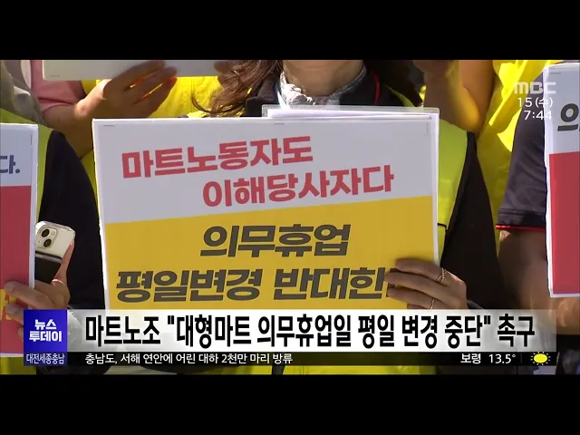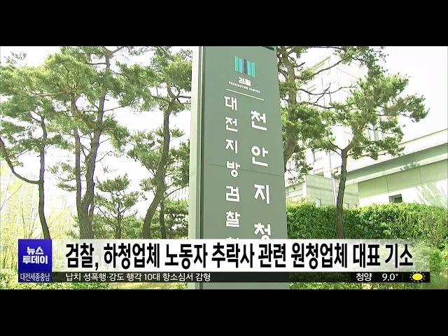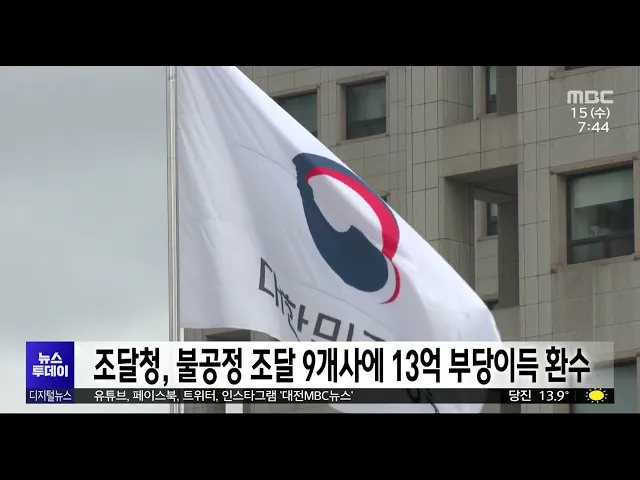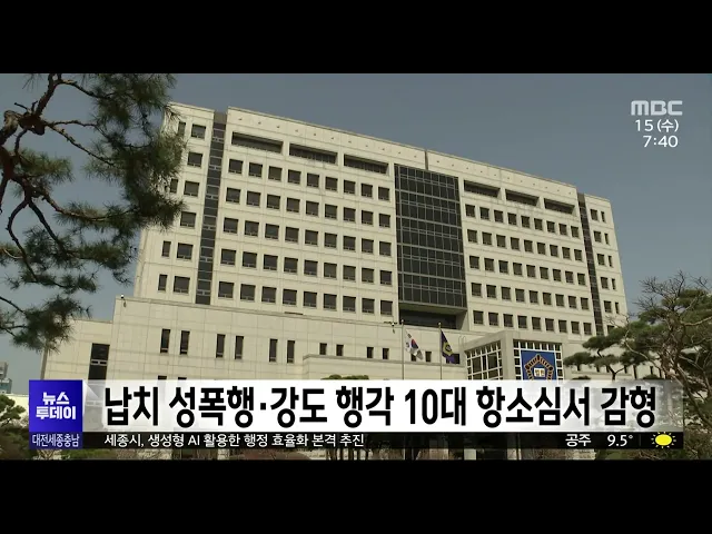 뉴스투데이 뉴스데스크뉴스투데이뉴스데스크 VOD(전체 다시보기)뉴스투데이 VOD(전체 다시보기)유튜브뉴스페이스북 뉴스카카오톡 뉴스인스타그램 뉴스 prev 2024.5.15 - 수요일 next 대전 첫 퀴어축제..찬반 논란/투데이 ◀ 앵 커 ▶올해 대전에서도 처음으로성 소수자를 위한 퀴어문화축제 개최가추진 중입니다.하지만 이를 반대하는 목소리가 곧바로 터져 나오면서 축제를 시작도 하기 전에갈등 양상이 빚어지고 있습니다.보... 윤소영 천안에서 올해 첫 과수화상병 발생 천안에서 올해 첫 과수화상병이 발생했습니다.농촌진흥청은 그제, 천안에 있는 0.5ha 규모의 배 농가에서 과수화상병이 확인돼오는 17일까지 발생 농가 주변 2km 이내의 과수원을 대상으로 예방 관찰을 하... 이승섭 충남도, 힘쎈충남 풀케어 돌봄 본격 추진 충남도가 도의회와 교육청, 돌봄기관 등과 업무협약을 맺고, 성인이 될 때까지 24시간 완전돌봄을 주요 내용으로 한 힘쎈충남 풀케어 돌봄정책을 본격 추진합니다.도는 오는 7월부터 전 시·군 24시간 전담... 김태욱 행정수도 청사진 마련..대학 추가 유치 노력/투데이 ◀ 앵 커 ▶지지부진했던 대통령 제2집무실과 국회 세종의사당 조성이 속도를 내고올해는 세종시를 실질적 행정수도로 만들기 위한 청사진도 그립니다.세종시를 미국 워싱턴DC처럼 국가 상징 공간으로 만들 ... 김광연 '건폐율·용적률 상향' 연구개발특구법 시행령 개정안 공포 대덕특구 등 연구개발특구에 위치한 연구와 교육, 사업화시설의 건폐율과 용적률이 상향됩니다.과학기술정보통신부는 건폐율을 30%에서 40%로, 용적률은 기존 150%에서 200%로 높이는 내용의 연구개발특구... 김윤미 세종시-법제처 '조례에 외래어·한자 없앤다' 세종시가 조례에 있는 외래어와 한자어를 한글로 바꿔 '한글 조례 특화 도시' 만들기에 나섭니다. 세종시와 법제처는 업무협약을 맺고, 기존 조례와 새 조례를 제정할 때한자와 외래어 등을 우리말로 정비... 조형찬 산사태 사각지대를 찾아라!/투데이 ◀ 앵 커 ▶지난해 여름 이른바 국지적 극한 호우로산사태가 발생하면서 충남에서만 3명,전국적으로도 13명이 목숨을 잃었는데요.올여름도 많은 비 특히나 짧은 시간 집중되는기록적 폭우가 예상돼 산림청... 고병권 검찰, 하청업체 노동자 추락사 관련 원청업체 대표 기소 대전지검 천안지청이 지난 2022년 5월,천안의 한 공사 현장에서 하청업체 소속인50대 노동자가 작업 도중 7.4m 아래로 떨어져숨진 사건과 관련해 원청업체인 건설회사 대표를 중대재해처벌법 위반 혐의로... 이승섭 납치 성폭행·강도 행각 10대 항소심서 감형 대전고법 제3형사부가 여성을 오토바이로 납치해 성폭행하고 금품을 빼앗은 혐의로 기소된 16살 남성의 항소심에서 원심을 깨고징역 장기 7년, 단기 5년을 선고했습니다.항소심 재판부는 피해자가 피고인... 이승섭 충남 첫 크루즈 출항..서해 바다를 깨우다/투데이 ◀ 앵 커 ▶서산 대산항에서 충청권 최초 국제 크루즈선이 드디어 첫 출항을 했죠.대전MBC는 충남 크루즈 관광 산업의 의미와 지역 경제 활성화를 위한 과제 등을 짚는 연속 보도를 마련했는데요.먼저 첫 순... 김태욱 태안군, 야생동물 사고 치료·화상 수술비 지원 태안군이 야생동물로 인한 사고 치료비와 화상 피해에 대한 수술비를 각각 지원합니다.군은 최근 농작업 중 멧돼지 등 야생동물의습격으로 인한 군민 피해가 늘고 있고, 가정과 캠핑장 등에서 화재가 잇따... 김태욱 마트노조 "대형마트 의무휴업일 평일 변경 중단" 촉구 민주노총 서비스연맹 마트노조 대전세종충청지역본부가 어제, 대전시청 북문 앞에서 기자회견을 열어대형마트의 의무 휴업일을 평일로 변경하려는대전시의 정책을 규탄했습니다.이들은 대형마트의 의무 휴... 이승섭 조달청, 불공정 조달 9개사에 13억 부당이득 환수 조달청이 직접생산 위반 등 불공정 조달행위로 적발된 9개사에 대해 13억 원의 부당이득금을 환수했습니다.환수 대상인 9개사는 차수매트와 낙석방지책, LED가로등기구 등 8개 품목을 직접 생산하지않고 ... 조형찬