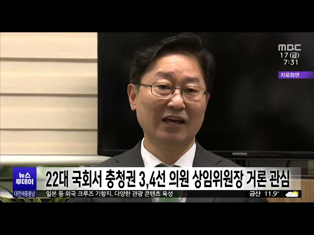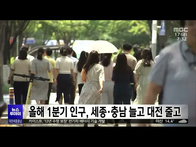 뉴스투데이 뉴스데스크뉴스투데이뉴스데스크 VOD(전체 다시보기)뉴스투데이 VOD(전체 다시보기)유튜브뉴스페이스북 뉴스카카오톡 뉴스인스타그램 뉴스 prev 2024.5.17 - 금요일 next 협의체 '사실상 무산'..협치 가능?/투데이 ◀ 앵 커 ▶이장우 대전시장과 대전지역 국회의원 당선인 7명이 지난 4.10 총선 이후 처음으로 만났습니다.지역 현안 해결에 협치가 필요하다는 데에는 공감했지만, 구체적인 의제나 실무 협의체 구성에는 ... 박선진 22대 국회서 충청권 3,4선 의원 상임위원장 거론 오는 30일 개원하는 제22대 국회상임위원장 후보로 충청권 의원들이 다수거론돼 결과가 주목됩니다.3선의 더불어민주당 어기구 의원과 조승래 의원은 각각 농림축산식품해양수산위원회와 과학기술정보방송... 문은선 이장우 시장 "소진공, 원도심 돌아온다면 해결 가능" 이장우 대전시장이 소상공인진흥공단 본부 사옥 이전과 관련해 "향후 원도심으로 다시 돌아온다면 문제가 해결될 수 있을 것으로 본다"라는 입장을 밝혔습니다.이 시장은 여전히 사옥 이전에 대해서는바람... 박선진 올해 1분기 인구, 세종·충남 늘고 대전 줄고 올해 1분기 세종과 충남은 인구가 늘어났지만,대전은 소폭 줄어든 것으로 나타났습니다.충청지방통계청은 지난 1월부터 3월까지 충남 인구는 4,936명, 세종은 547명 증가했지만, 대전은 55명이 감소한 것... 고병권 과수화상병에 배 주산지 타격/투데이 ◀ 앵 커 ▶천안에서 올해 첫 과수화상병이 발생했는데,가까운 농가에서도 의심 증상이 잇따라 나타나면서 방역에 비상이 걸렸습니다.최근 10년 가까이 천안에서 과수화상병이 해마다 반복해 발생하면서 배... 김성국 세종 합강캠핑장 재개장 4개월 늦춰진 오는 10월 전망 지난해 7월 폭우 피해로 문을 닫은세종시 합강캠핑장 재개장 시점이 오는 6월에서 10월로 늦춰질 예정입니다.세종시 시설관리공단은오는 6월 전체 구역 재개장을 목표로 했지만,하천 점용허가 문제로 4개... 고병권 환경단체, '갑천 물놀이장 설립 중단' 촉구 대전충남녹색연합과 대전환경운동연합은 성명을 내고, 대전시가 추진하는갑천 둔치 물놀이장 설립을 즉각 중단할 것을 촉구했습니다.환경단체 측은 폭이 넓지 않은 갑천 둔치에 시설물을 두면 여름철 강우... 이승섭 순천향대천안병원 석면환경보건센터, 2027년까지 사업 연장 순천향대학교 부속 천안병원석면환경보건센터가 최근 환경부 재지정을 받아 석면피해 건강영향조사 등을 오는 2027년까지 이어갑니다.지난 2009년 지정된 센터는석면 광산과 공장, 슬레이트 밀집 지역 등... 문은선 유성 마을버스 첫 대수술/투데이 ◀ 앵 커 ▶대전 유성 마을버스가 96년 첫 운행 이후 30년 만에 대대적인 노선 개편에 착수합니다. 시내버스처럼 길고 굴곡이 심한데다 노선 중복도 많고 적자가 눈덩이처럼 커지는 것을 막기 위해서인데요... 조형찬 세종시교육청, 시내 모든 학교 내진 보강 완료 세종시교육청이 지진에 대비해세종시에 있는 167개 학교의 내진 보강 사업을마쳤습니다.세종교육청은 최근 12년 동안 30억 원을 들여교실과 체육관, 기숙사와 급식 시설 등교육 활동이 이뤄지는 공간의 내... 이승섭 홍성군 축산과 주무관, 올해 전국 유일 축산기술사 취득 홍성군 축산과 방정민 주무관이축산기술사시험에서 최종 합격했습니다.축산기술사는 가축육종과 번식, 생산과 경영 등광범위한 전문지식을 요구해 지난 1988년 자격 검정 시행이래 취득자가 191명에 불과... 김태욱 충남도, 부여군 농촌리브투게더 첫 삽 충남도가 부여군 은산리 일원에서농촌리브투게더 첫 사업 기공식을 열고귀농·귀촌 청년들을 위한 단독주택 단지첫 삽을 떴습니다.농촌리브투게더는 10년간 임대 후 인근농촌주택 시세 수준으로 분양전환하... 김태욱 충남 크루즈 관광 이어가려면/투데이 ◀ 앵 커 ▶서산 대산항 크루즈 관광을 시작을 계기로 한 기획보도, 오늘 마지막 순서입니다.크루즈 관광은 배 한 척이 항공기 15대 분량의 관광객을 한 번에 실어 나르며 기항지 주변에 막대한 지역경제 ... 김태욱 카이스트, '12년 수명 보장' 전기차 배터리 기술 카이스트 연구팀이 11년에서 최대 12년까지 수명을 보장하는전기차 배터리를 만들 수 있는전해질 첨가제 기술을 개발했습니다.연구팀은 값이 싸고 안정성은 높지만겨울철 등 저온 조건에서 성능이 떨어지... 김윤미
