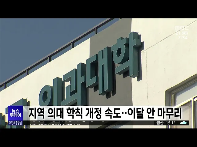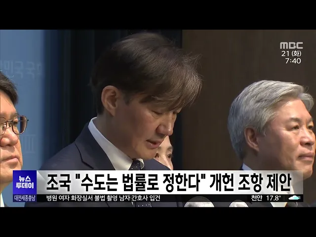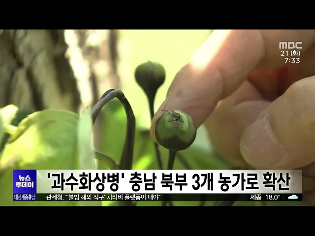 뉴스투데이 뉴스데스크뉴스투데이뉴스데스크 VOD(전체 다시보기)뉴스투데이 VOD(전체 다시보기)유튜브뉴스페이스북 뉴스카카오톡 뉴스인스타그램 뉴스 prev 2024.5.21 - 화요일 next 곳간 왜 이렇게 비나? 알고보니../투데이 ◀ 앵 커 ▶세수 부족 등으로 정부 재정이 어려워지면서, 대전과 세종 등 각 지방자치단체에 지급하는 보통 교부세도 많이 줄어들었는데요.그런데, 대전 MBC가 정부의 올해 보통 교부세 산정 내역을 확인해 ... 박선진 충남 북부 과수화상병 확산..3개 농가 피해 충남 북부 지역에서 과수화상병이 빠르게확산하고 있습니다.충남에서는 지난 13일, 천안시 입장면의한 배 농가에서 과수화상병이 처음 나타난 뒤아산의 배 농가와 당진의 사과 농가에서 추가로발생해 모두... 이승섭 지역 의대 학칙 개정 서둘러..이달 안에 마무리 교육부가 의과대학이 있는 대학에학칙 개정을 비롯한 절차를 서둘러달라고당부하면서 충남대와 순천향대가 의대 정원 확대를 포함한 학칙 개정을이달 안에 마치기로 했습니다.충남대는 애초 다음 달 중순... 이승섭 쏟아지는 '먹방' 차단..'푸드 센서' 등장/투데이 ◀ 앵 커 ▶요즘 TV는 물론, 다양한 동영상 플랫폼에서도 먹는 방송, 이른바 '먹방'이 큰 인기죠.쏟아지는 이런 음식 관련 영상이나 소리는 자연스레 식욕을 자극하게 되는 데, 실시간으로 자동 차단하는 기... 김윤미 대전 안산 국방산업단지 부지 토지거래허가구역 재지정 사업이 지연되고 있는 대전 유성구안산 국방산업단지 부지가 토지거래허가구역으로 재지정됩니다.대전시는 반석동과 수남동 등 사업부지7.25㎢를 오는 31일부터 2027년 5월까지 3년간 토지거래허가구역으... 고병권 국내 첫 동물용 방사성 의약품 임상계획 승인 한국원자력연구원이 충북대와 공동으로연구용 원자로 '하나로'에서 생산한 원료로 지난 2018년 국내 최초로 개발한 동물용 방사성 의약품이 임상을 거쳐 제품 출시로 이어질지 관심입니다.연구원은 1회 투... 김윤미 '생선 부패' 유해 가스에 5명 질식/투데이 ◀ 앵 커 ▶어선에서 일하던 선원들이 유해 가스에 질식해 집단으로 의식을 잃는 사고가 발생했습니다.생선이 부패하면서 여러 유해가스가 선박 창고에 가득찬 건데, 날이 더워지면서 해산물의 장시간 보관... 조형찬 조국 대표 22대 국회 개헌특위 제안 '수도 법률로 정한다는 조항 신설'해야 최근 조국혁신당 조국 대표가 개헌특별위원회 구성을 제안하며 '세종시 행정수도 개헌'을언급해 관심을 끌고 있습니다.조 대표는 지난 17일 국회 소통관에서제22대 국회에서 행정수도 개헌을 해야한다며, ... 고병권 대전 중앙로 지하상가 상인들 "경쟁 입찰 멈춰라" 시청 항의방문 대전시 중앙로 지하상가상인 50여 명이 오늘 시청을 항의 방문해,"대전시는 상가에 대한 경쟁 입찰을 멈추고대안을 마련하라"고 촉구했습니다.이들은 "중앙로 지하상가가 경쟁입찰로전환되면 임대료 상승 ... 고병권 '양귀비는 마약' 불법 재배 잇따라/투데이 ◀ 앵 커 ▶농촌 지역에서 마약성 양귀비를 몰래 기르던 농민들이 잇따라 경찰에 적발됐습니다.양귀비는 마약의 원료가 되기 때문에허가없이 재배하는 건 엄연한 불법입니다.이승섭 기자입니다.◀ 리포트 ▶경... 이승섭 대전서 200억 대 전세사기 50대 임대업자 구속 대전경찰청 반부패경제범죄수사대가사회초년생을 대상으로 전세 보증금 2백억여 원을 가로챈 혐의로 50대 임대업자를 구속했습니다.피의자는 대전시 유성구 일대에 다가구주택 36가구를 보유하고, 임차인... 김성국 병원 여자 화장실서 불법 촬영한 남자 간호사 입건 대전 중부경찰서가 종합병원 여자 화장실에서불법 촬영한 혐의로 20대 남자 간호사를 붙잡아 조사하고 있습니다.이 남성은 지난달 30일, 병원 안에 있는 여직원 기숙사 화장실에서 휴대전화로 여직원을 불... 김성국 관세청, '해외 직구 불법 적발시' 처리비용 플랫폼이 비용 내야 관세청은 해외 직접 구매 물품이국내 반입 단계에서 불법이 적발돼 폐기되는 경우 해당 직구 플랫폼이그 비용을 물어야 할 필요가 있다고밝혔습니다.고광효 관세청장은 어제정부 대전청사에서 기자회견을 ... 고병권
