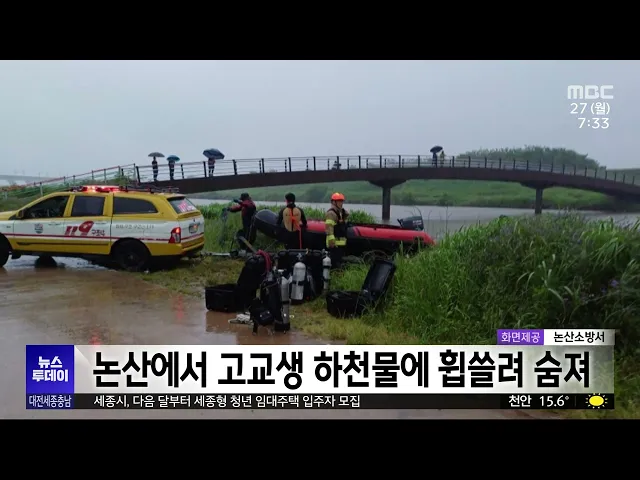 뉴스투데이 뉴스데스크뉴스투데이뉴스데스크 VOD(전체 다시보기)뉴스투데이 VOD(전체 다시보기)유튜브뉴스페이스북 뉴스카카오톡 뉴스인스타그램 뉴스 prev 2024.5.27 - 월요일 next 충남도의 수상한 청사 녹지공사/투데이 ◀ 앵 커 ▶충남도가 청사 녹지 공간을 확충하겠다며 36억 원을 들여 공사를 진행하고 있습니다.그런데, 공사를 면밀히 살펴보니,외부 방문 인사 의전을 위해 도청 현관으로 향하는 도로 신설이 끼워넣기식... 김태욱 논산에서 고교생 하천물에 휩쓸려 숨져 어제 오후 5시 50분쯤 논산시 채운면강경천에서 고등학생 2명이 물에 빠지는 사고가났습니다.사고 직후 1명은 자력으로 대피했지만,다른 한 명은 물에 떠내려가 실종됐다가세 시간 만인 어젯밤 8시 50분쯤... 이승섭 충남도, 축산물 취급 업체 32곳 적발 충남도 민생사법경찰팀이 최근 한 달 동안축산물을 유통하는 업소를 단속해위반 업소 32곳을 적발했습니다.이번에 적발된 업체는 소비기한이 지난 닭고기를 판매 목적으로 진열하거나 위생 점검 일지를 작... 김광연 산림청, 산림 내 불법 훼손 행위 363명 적발 산림청은 올해 들어 지난 4월까지 국유림에서불법 행위를 한 3백여 명을 적발했습니다.산림청은 허가 없이 산지 형질을 변경하거나 임야를 훼손하고, 입산 통제 구역에 무단으로들어가는 등의 불법 행위를... 김광연 한국철도, 일반철도 보수에도 '레일 밀링차' 활용 한국철도공사는 올 하반기부터새마을호와 무궁화호 등이 다니는 일반철도 구간 선로 보수에도 레일 밀링차를 활용한다고 밝혔습니다.레일 밀링차는 절삭 날로 레일 표면을 깎아 선로를 보수하는 장비로 기... 김광연 대전 전세사기 피해 대책위, 국회의원 당선인과 간담회 대전 전세사기 피해 대책위원회가어제, 더불어민주당 대전시당사에서제22대 국회의원 대전 지역 당선인 7명과간담회를 열어 실효성 있는 피해 대책 마련을촉구했습니다.대책위는 이 자리에서 대전 지역의 ... 이승섭 대전시, 'CES 2025' 대전통합관 참가 기업 모집 대전시가 내년 미국 라스베이거스에서 열리는 CES 2025 대전통합관에 참가할 기업 30곳을 다음 달 3일부터 20일까지 모집합니다.시는 지난해보다 참가 기업을 50% 늘려전략산업인 바이오헬스와 양자 기술,... 김광연 세종시, 다음 달부터 세종형 청년 임대주택 입주자 모집 세종시가 청년들이 저렴하게 거주할 수 있는 임대주택의 입주자를 다음 달 3일부터 28일까지 모집합니다.대상 주택은 조치원과 장군면에 있는 전용면적 17∼32㎡ 규모의 서른 가구로임대료는 시세의 30∼50%... 김광연 한화 이글스 상승세..시티즌 최하위 머물러 프로야구 한화 이글스가 지난 주 4승 1패의 상승세를 기록하며, 중위권 도약을 노리고 있습니다.한화는 지난 주 한때 최하위로 처졌지만, SSG 랜더스와의 주말 경기에서 2연승을 기록해6위 SSG와의 승차를... 이승섭 부여군, 굿뜨래페이 월 최고 신규 가입 유치 부여군이 지역화폐인 굿뜨래페이 월 신규 가입자 수가 역대 최고치를 기록했다고 밝혔습니다.군은 이번 달에만 634명이 신규 가입했다며지난해 신규 가입자 수를 올해 들어5개월 만에 초과 달성했다고 설... 박선진 천안 K-컬처박람회에 관광객 30만 명 찾아 어제까지 닷새 동안 천안 독립기념관에서 열린 K-컬처박람회가 30만 명이 넘는 국내외 관광객을 동원하며막을 내렸습니다.지난해에 이어 두 번째로 개최된 이번 행사에는음식과 웹툰, 뷰티 등 여러 분야의... 김광연