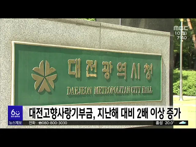 뉴스투데이 뉴스데스크뉴스투데이뉴스데스크 VOD(전체 다시보기)뉴스투데이 VOD(전체 다시보기)유튜브뉴스페이스북 뉴스카카오톡 뉴스인스타그램 뉴스 prev 2024.6.10 - 월요일 next 범의료계, 의협 중심 18일 전면 휴진..지역 의료 차질 우려 범의료계가 대한의사협회를 중심으로 오는 18일 전면 휴진에 나서기로 하면서 지역에서도 의료 공백에 대한 우려가 커지고 있습니다. 의협이 실시한 이번 설문조사에서 '휴진을 포함하는 단체행동 참여 여... 최기웅 기후위기 시대, 이끼의 재발견/투데이 ◀ 앵 커 ▶우리 주변 그늘진 나무 아래 흔히 볼 수 있는 이끼가 새로운 탄소흡수원으로 주목받고 있습니다.이끼는 단위 면적 당 이산화탄소 흡수량이나무보다 뛰어난 것으로 알려져 있는데요,정부보다 강도... 문은선 지역 대형 유통점 실적 부진...온라인 쇼핑·소비 양극화 여파 지역 대형유통점들이 온라인쇼핑 확대와 고물가로 인한 소비 양극화 등으로 실적 부진을 겪고 있습니다.충청지방통계청에 따르면 지난 4월 기준 대전 내 대형소매점 판매액지수는 119.0으로 지난해 같은 ... 최기웅 카이스트 등 이공계 특성화 대학 이탈자 증가....의대 증원 영향? 의대 증원으로 이공계 분야를 중심으로 학생 이탈이 대거 늘고, 카이스트 등 이공계 특성화대학의 중도 이탈자도 증가할 것이라는 우려가 나오고 있습니다. KAIST 대학정보공시에 따르면 올해들어 중도 탈... 최기웅 한국지역경영원 "가장 살기좋은 도시는 세종시" 세종시가 국내에서 가장 살기 좋은 도시 1위로 꼽혔습니다. 사단법인 한국지역경영원의 '2024년 대한민국 지속 가능한 도시 평가 결과'에 따르면 세종시가 1위, 경기 수원시가 2위에 올랐으며 대전 유성구... 윤소영 대전고향사랑기부금, 지난해 대비 2배 이상 증가 올해 대전고향사랑기부금이 지난해 대비 2배 이상 증가한 것으로 나타났습니다. 대전시에 따르면 올해들어 지난달 말 기준 누적 모금액은 6천859만 여 원으로 지난해 같은 달 누계액 보다 2배 이상 증가했... 최기웅 충남도, 도내 8개 시군·24개 지구 지적재조사 사업지구 지정 고시 충남도는 오늘자로 도내 8개 시군 24개 지구를 지적재조사사업지구로 지정 고시합니다. 해당 지역은 공주·서산·논산·계룡·부여·청양·예산·태안군 내 24개 지구 624만㎡로 앞으로2년에 걸쳐 지적재조사지구... 최기웅 충남도의회, 12대 전반기 마지막 정례회 개최 제352회 충남도의회 정례회가 오늘부터 오는 24일까지 15일 동안 열립니다.이번 정례회에서는 지난해 충남도와 도교육청 소관 회계연도 결산 승인을 비롯해 '충청남도 청년 예술인 육성 및 지원 조례안' ... 윤소영