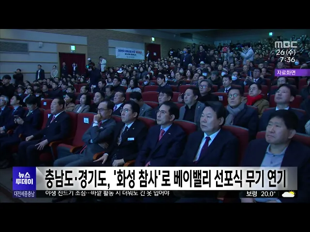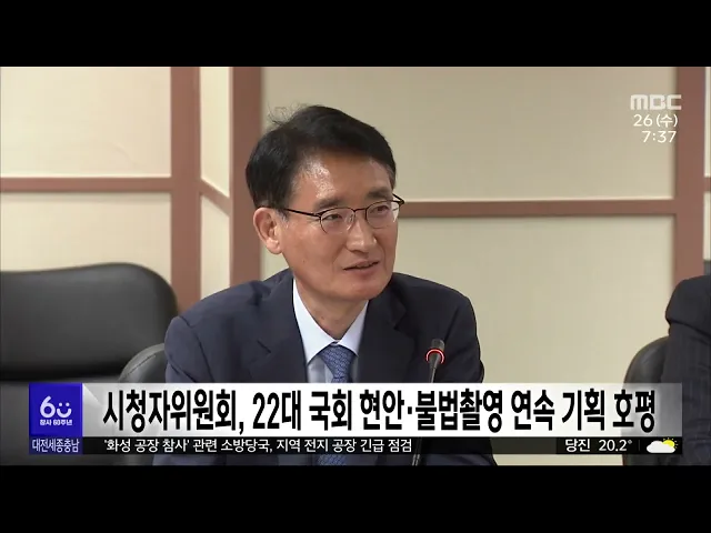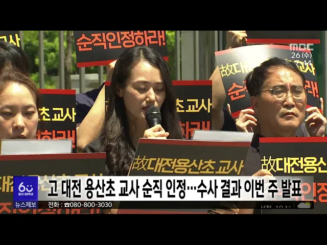 뉴스투데이 뉴스데스크뉴스투데이뉴스데스크 VOD(전체 다시보기)뉴스투데이 VOD(전체 다시보기)유튜브뉴스페이스북 뉴스카카오톡 뉴스인스타그램 뉴스 prev 2024.6.26 - 수요일 next 도지사 공약 스마트축산단지 "백지화하라"/투데이 ◀ 앵 커 ▶김태흠 지사의 공약인 당진 석문간척지 스마트축산단지 조성을 두고 주민 반발이 거세지고 있습니다.백지화를 요구하는 대책위는 주장이 받아들여지지 않으면, 다음 달 도지사 방문에 맞춰 집회... 김광연 2027 하계 세계 대학 경기대회 폐회식 "세종 중앙공원" 검토 2027 충청권 하계 세계 대학 경기대회조직위원회가 폐회식을 세종 중앙공원에서 여는방안을 검토하는 것으로 알려졌습니다.이는 애초 폐회식 장소였던 대평동종합체육시설 조성이 지연되는 데 따른 것으로... 고병권 태안, 유성 등 지방의회 후반기 의장단 선출 놓고 내홍 잇따라 지방의회 후반기 의장단 선출을 놓고 내홍이 잇따르고 있습니다.태안군의회가 후반기 의장단을 다수당인 민주당 의원들로만 구성하자 국민의힘과 무소속 등 의원 3명이 자신들을 뺀 채 의장단을 결정한 것... 김태욱 충남도, 올 하반기 지역경제 회복 전망 충남도가 올 하반기 지역경제가 회복할 것이라고 전망했습니다.도는 제1차 경제상황관리회의를 열고하반기 반도체 등 주력 산업의 수출 투자가 확대되면서 경기 회복이 전망되고,신규 채용은 상대적으로 ... 김태욱 폭주족 손 놓고 뒷북 단속?/투데이 ◀ 앵 커 ▶3.1절이나 광복절 등 기념일만 되면 폭주족들이 폭주를 하죠.6.25 전쟁 기념일인 어제도 천안과 아산에어김없이 폭주족이 나타나 극심한 소음에다 차량 사고까지 발생했는데요.경찰이 폭주족이 ... 김성국 '전지 공장 화재 참사' 관련 긴급 화재 안전 조사 실시 그제 경기도 화성의 배터리공장에서 사상자 30여 명이 발생한 화재와 관련해 소방당국이 다음 달 9일까지지역에 있는 배터리 공장을 대상으로긴급 화재 안전 조사를 진행합니다.산업통상자원부 강경성 1차... 이승섭 충남-경기, 베이밸리 선포식·콘서트 무기한 연기 그제 경기도 화성의 배터리 공장 화재로30명의 사상자가 발생한 가운데, 충남도와 경기도가 오늘 열릴 예정이던 베이밸리 비전 선포식을 무기한 연기했습니다.충남도는 당초 김태흠 충남지사와 김동연 경... 김태욱 시청자위원회, 22대 국회 현안·불법촬영 연속 기획 호평 본사에서 열린 6월 대전MBC 시청자위원회에서위원들은 화력발전소 폐지 대책 등을 다룬22대 국회 지역 현안 관련 연속보도와 불법촬영 관련 단독보도를 높이 평가하고지역의 선한 영향력을 확산할 수 있는... 김지훈 SFTS 첫 사망.. '긴 옷 필수'/투데이 ◀ 앵 커 ▶충남에서 올해 중증열성혈소판감소증후군,SFTS에 감염된 첫 사망자가 발생했다는 소식, 전해드렸는데요.바이러스를 보유한 진드기에 물려 걸리는 만큼특히 야외활동이 많아지는 요즘부터 가을까... 박선진 순천향대 천안병원, 논산·홍성 환경오염 취약주민 건강조사 순천향대천안병원 산하 충남도 권역형 환경보건센터가 오늘부터 사흘 동안 논산시와 홍성군 내 환경오염취약지역 주민 240여 명을 대상으로 건강영향조사를 시행합니다.조사대상은 논산시 가야곡면 농공단... 김태욱 충남도, 행사장 임산부·아동 우선입장제도 시범 운영 충남도가 올 하반기부터 대규모 행사장을 방문한 임산부나 12살 이하 아동을 동반한 방문객이 전용 입구로 빠르게 들어갈 수 있도록 하는 '패스트트랙' 제도를 도입합니다.도는 아이 키우기 좋은 문화 만... 김태욱 충남도, 해군 미니 이지스함 '충남함'과 자매결연 충남도가 미니 이지스함으로 불리는 해군의 3,600t급 최신 호위함, 충남함과 자매결연을 맺었습니다.해군은 올 연말 충남함을 인수해 내년 상반기 전력화 할 예정인 가운데,협약에 따라 도는 백제문화 유... 김태욱 유해 4천여 구.. 편히 쉴 곳도 없다/투데이 ◀ 리포트 ▶한국전쟁 74주년을 맞아 군경에 의해 학살된 민간인 희생자들을 기억하는 기획보도 두 번째 순서입니다.지금까지 4천백여 구의 민간인 희생자 유해가 수습됐지만, 안치시설은 말 그대로 포화상... 김태욱 악성민원 끝 숨진 교사 순직 인정 지난해 9월, 학부모의 악성 민원에 시달리다가숨진 대전 용산초등학교 교사의 순직이인정됐습니다.인사혁신처 공무원재해보상심의회는 지난 19일, 고인이 된 대전 용산초 교사의 순직 유족 급여를 심의했... 이승섭 세종충남대병원, 불법 촬영 기기 긴급 점검 최근 공공장소에서 불법 촬영 범죄가기승을 부리는 가운데 세종충남대병원이경찰과 함께 불법 촬영을 예방하기 위한합동 점검을 오늘까지 진행합니다.병원 측과 경찰은 병원 화장실과직원들이 쓰는 샤워장... 이승섭
