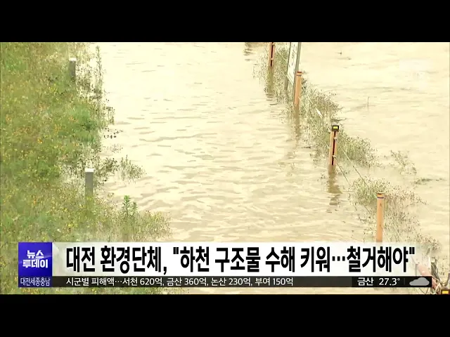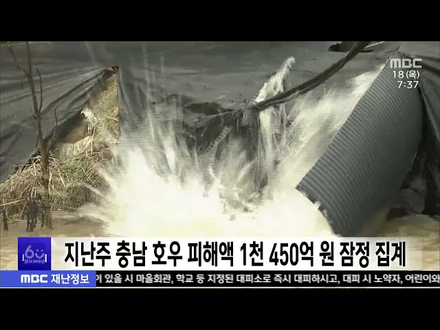 뉴스투데이 뉴스데스크뉴스투데이뉴스데스크 VOD(전체 다시보기)뉴스투데이 VOD(전체 다시보기)유튜브뉴스페이스북 뉴스카카오톡 뉴스인스타그램 뉴스 prev 2024.7.18 - 목요일 next 낙뢰 3천 번..정전 피해 속출/투데이 ◀ 앵 커 ▶이번 장맛비는 야간에 국지적으로 내리치는 성질을 갖고 있어 더 위험한데요.게다가 천둥 번개까지 요란해지고 있습니다.특히, 충남에는 3천 번 가까운 낙뢰로정전 피해도 속출했는데요.이승섭 ... 이승섭 강한 비바람에 피해 속출...1명 숨져/투데이 ◀ 앵 커 ▶밤사이 충청권에는 시간당 최대 50mm가 넘는 폭우가 쏟아졌습니다.여기에 강한 바람이 불면서피해가 속출했는데요.비바람에 축사 지붕이 무너져 1명이 숨졌고,아파트 외벽이 뜯겨져 나가는 등 2... 윤소영 충남 호우 피해 잠정 집계 피해액 1천450억여 원 지난 8일부터 사흘간 내린 집중호우로충남에서만 지금까지 천450억 원의재산 피해가 발생한 것으로 잠정 집계됐습니다.그제 기준 충남 15개 시군이 정부의 호우 피해 전산망에 입력한 현황에 따르면, 지난... 고병권 대전 환경단체, "하천 구조물 수해 키워..즉각 철거 요구" 대전의 환경단체가 하천에 설치된 구조물이 수해를 키운다며, 즉각적인 철거를 요구했습니다. 대전충남녹색연합과 환경운동연합은 갑천 지류에는 농업용수 취수를 위한 보가 10m당 1개씩 설치돼 있는데, ... 고병권 비는 또 온다는데.. "복구 인력 없어요"/투데이 ◀ 앵 커 ▶최근 계속된 집중 호우로 충남 농촌의 피해가 눈덩이처럼 불고 있는데요. 올해는 특히 여러 지역에서 동시다발적으로피해가 발생하면서 현장에 투입될 인력이 턱없이 부족해 복구가 더 지연될 ... 박선진 자매 성추행 70대 학원 차량 운전기사에 징역 5년 선고 대전지법 천안지원 형사1부 전경호 부장판사가 지난해 2월부터 7개월 동안 학원 차량을 이용하는 9살과 7살 자매를 강제 추행한 혐의로 70대 운전기사에게 징역 5년을 선고했습니다.재판부는 "관련 증거와... 김지훈 태안해경, 해삼 불법 잠수기 일당 4명 검거 태안해양경찰서가 태안 앞바다에서불법 잠수기 조업으로 해삼을 포획한 일당 4명을 수산관계법령 위반 혐의로 검거했습니다.이들은 어선에 잠수장비을 싣고 출항해 해저에 서식하는 해삼 100kg을 포획 중 ... 조형찬 보령에 서울 은퇴자 집 3천 가구 짓는다/투데이 ◀ 앵 커 ▶충남도와 서울시가 보령시에 서울지역 은퇴자 3천 가구가 거주할 수 있는 골드시티를 조성하겠다는 계획을 발표했습니다. 지역에서는 인구 소멸을, 서울은 주택 부족 문제를 해결하는 일석이조 ... 김태욱