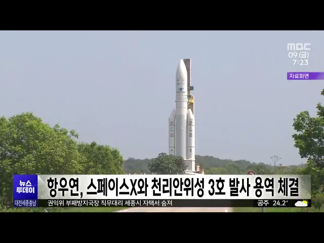뉴스투데이 뉴스데스크뉴스투데이뉴스데스크 VOD(전체 다시보기)뉴스투데이 VOD(전체 다시보기)유튜브뉴스페이스북 뉴스카카오톡 뉴스인스타그램 뉴스 prev 2024.8.9 - 금요일 next 천리포 물들인 나라꽃 '무궁화'/투데이 ◀ 앵 커 ▶요즘 태안 천리포에 무궁화 향기가 가득하다고 합니다.373가지 무궁화를 보유하고 있는태안 천리포수목원이 무궁화 축제를시작했습니다.김태욱 기자입니다. ◀ 리포트 ▶활짝 핀 무궁화에 꽃가루... 김태욱 대전 아파트 분양 잇따라 1순위 마감..낙수효과 기대 상반기에 미분양 사태가 잇따랐던 대전의 분양 시장이 조금씩 살아날 조짐을보이고 있습니다.한국부동산원 청약홈에 따르면대우건설이 대전 도안 2-5지구에 공급하는아파트가 평균 25대1을 넘는 경쟁률로 ... 이승섭 세종시 연동면에 4천5백 가구 아파트 건설..2029년 완공 세종시 연동면 일원에 대규모 아파트 단지가들어섭니다.세종시 연동면 명학지구 도시개발추진위원회는오는 2029년까지 명학리 일대 59만 4천㎡에4천5백 가구 규모의 아파트 단지를 조성하기로 하고 토지주... 고병권 코레일, 19일부터 추석 열차 승차권 예매 한국철도공사, 코레일이 오는 19일부터 나흘 동안 추석 열차 승차권 온라인 예매를 진행합니다.예매 대상은 추석 연휴를 전후한다음 달 13일부터 18일까지 엿새 동안 운행하는 열차로 오는 19일과 20일에... 이승섭 '대전 펜싱 영웅' 오상욱·박상원 금의환향/투데이 ◀ 앵 커 ▶올림픽 펜싱 남자 사브르 단체전에서 3연패라는 대업을 달성한 오상욱, 박상원 선수가소속팀인 대전시를 찾았습니다.이들은 앞으로 더 좋은 성적으로 대전을 널리 알리겠다고 포부를 밝혔고, 시... 김광연 대전 국회의원 7명 전원 "원전 설계 본부 김천 이전" 전면 재검토 촉구 대전 국회의원 7명 전원이 입장문을 내고, "한국전력기술 원자로 설계개발본부의 경북 김천 이전을 전면 재검토하라"고 촉구했습니다.이들은 "이전 움직임이 알려진 지난해 본부에서 8명이 떠났고, 올해 ... 고병권 "성추행 대전시의원 출석정지 15일..명백한 2차 가해" 총선 후보 캠프 여성 직원을 성추행한 혐의로 피소된 국민의힘 대전시의원에게 시의회 윤리자문위원회가 '출석정지 15일이 적합하다'고 의견을 낸 것에 대해 지역 여성단체들이 반발하고 나섰습니다.대전... 박선진 정부, 전기차 화재 종합 대책 수립 나서 최근 금산과 인천에서 전기차 화재가 잇따르자정부가 종합 대책을 마련하기로 했습니다.정부는 오는 12일, 관계 부처가 참여하는전기차 화재 관련 회의를 열어예방 방안을 논의하고, 다음 달 초에전기차 ... 이승섭 '태양의 비밀' 풀 망원경, 10월 우주로 간다/투데이 ◀ 앵 커 ▶태양은 빛과 열을 지구로 보내주는 동시에 초속 수백 킬로미터의 태양풍을 내뿜어 통신을 방해하거나 기후에도 영향을 미칩니다.이런 '태양의 비밀'을 풀 특별한 망원경을 국내 연구진과 미국 NA... 김윤미 항우연, 스페이스X와 천리안위성 3호 발사 용역 체결 한국항공우주연구원과 우주항공청이오는 2027년 쏘아 올릴 천리안위성 3호 발사 용역 계약을 미국 스페이스X사와 맺었습니다. 천리안위성 3호는 공공 위성통신 서비스를 제공하기 위한 정지궤도 공공복합 ... 최기웅 대청호 추동·회남 수역에 조류경보 관심 단계 발령 금강유역환경청이 대청호 추동, 회남 수역에추가로 조류경보 중 첫 단계인 관심 단계를 발령했습니다.지난 1일 대청호 문의 수역에 내려졌던 조류경보 관심 단계도 그대로 유지되고 있습니다. 환경청은 여... 김광연