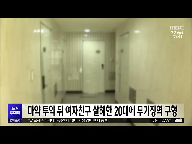 뉴스투데이 뉴스데스크뉴스투데이뉴스데스크 VOD(전체 다시보기)뉴스투데이 VOD(전체 다시보기)유튜브뉴스페이스북 뉴스카카오톡 뉴스인스타그램 뉴스 prev 2024.8.22 - 목요일 next 여름철 더 위험한 뇌졸중/투데이 ◀ 앵 커 ▶뇌 혈관이 막히거나 터져 뇌세포가 손상되는 증상인 뇌졸중.흔히 추운 겨울에 많이 발생한다고 알려져 있는데, 오히려 여름철에 환자가 더많은 것으로 나타났습니다.유독 더위가 길어지고 있는 ... 김성국 대전시, 갑천 물놀이장 조성 사업 잠정 중단 대전 갑천 물놀이장 조성 사업이잠정 중단됩니다.대전시는 지난달 집중호우로 유등교가 내려앉고하천 둔치 곳곳이 침수되는 등 피해가 컸다며갑천 물놀이장 조성은 하천 정비를 끝낸 뒤재개하겠다고 밝혔... 김광연 충남도, 청양 지천댐 건설 시 500억 지원...주민 반발 충남도는 "청양 지천댐 건설이 확정되면 이주민과 주변 지역에 대해 최대 500억 원 규모의 지원 사업이 추진된다"고 밝혔습니다.이에 따라 이주 정착금을 가구당 2천만 원 지원하고, 취업 알선과 댐 주변 ... 김지훈 '탈세 혐의' 타이어뱅크 김정규 회장 항소심 재개 세금 수십억 원을 탈루한 혐의로 기소돼1심에서 징역 4년과 벌금 백억 원을 선고받은타이어뱅크 김정규 회장의 항소심이1년 4개월 만에 재개됐습니다.대전고법 제1형사부 심리로 열린 공판에서검찰은 김 ... 이승섭 아이들을 위한 특별한 스포츠 교육/투데이 ◀ 앵 커 ▶대전MBC 창사 60주년을 기념해 마련한마음과 마음을 잇는 따뜻한 시선의 기획보도,이음 순서입니다.지역의 프로 축구 선수와 빙상장 강사들이 학생들을 위한 특별한 교육에 나섰습니다.아이들은 ... 김광연 의정연수 나선 세종시의원 '음주 추태' 빈축 강원도 속초에서 진행된 세종시의회 의정연수에서 일부 의원이 '음주 추태'로 빈축을 사고 있습니다.세종시의회에 따르면, 지난 7일 속초의 호텔 공연장에서 한 의원이 만취 상태로 다른 관광객들의 공연 ... 김지훈 '지인 상대 사기' 국민의힘 대전시당 전 청년위원장 구속 대전 둔산경찰서가 정치적 지위를 이용해지인들을 상대로 사기 행각을 벌인 혐의로국민의힘 대전시당 청년위원장 출신인39살 남성을 구속 상태로 검찰에 넘겼습니다.피해자 측은 이 남성이 정치인과의 친... 이승섭 검찰, 마약 투약 뒤 여자친구 살해한 20대에 무기징역 구형 검찰이 지난 4월, 대전의 한 다가구주택에서마약을 투약한 상태로 여자친구를 살해한혐의로 기소된 20대 남성에게 무기징역을구형했습니다.대전지법 제12형사부 심리로 열린 결심 공판에서 검찰은 피고인... 이승섭 '불법 드론 꼼짝마' 탐지 추적 기술 개발/투데이 ◀ 앵 커 ▶러시아- 우크라이나 전쟁을 계기로 드론은 무기이자 테러 수단으로서 그 위험성이 크게 부각됐죠. 국내 연구진이 불법 드론을 탐지 추적해내는 기술을 개발했는데, 5Km 떨어진 20cm 크기의 소형... 최기웅 세종체육시설공사 또 유찰..세종시 "사업비 증액해 공고할 것" 오는 2027년 충청권 하계 세계대학경기대회가치러질 예정인 세종지역의 경기장 건립 공사가 잇따라 유찰되면서 난항을 겪고 있습니다.행정중심복합도시건설청이 그제까지 진행한 세종종합체육시설 건립 사... 김광연 충청 4개 지자체 통합환승요금체계 26일부터 시행 대전과 세종, 공주, 청주 4개 지자체가 대중교통 통합환승요금체계를 구축해오는 26일부터 시행합니다.이는 기존 대전과 세종 간 적용되던 대중교통 환승할인이 청주와 공주까지 확대된 것으로, BRT를 포... 박선진 세종시, 셋째 이상 자녀 초교 '입학지원금 20만 원' 세종시가 다자녀 가정의 경제적 부담 완화를 위해 셋째 이상 자녀의 초등학교 입학 시 1인당 지원금 20만원을 지급합니다. 대상은 올해 입학일 기준 세종시에 주민등록을 둔 다자녀 가정이면서 올해 초등... 조형찬