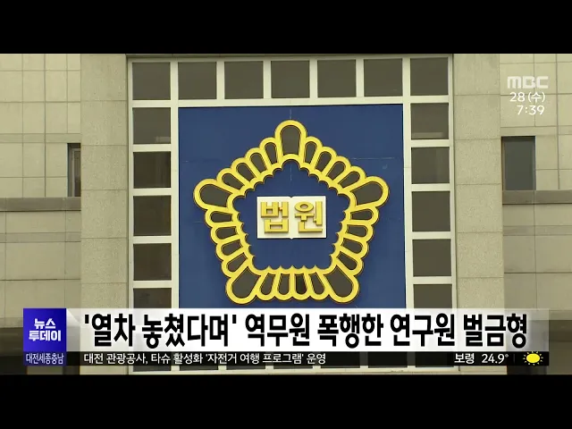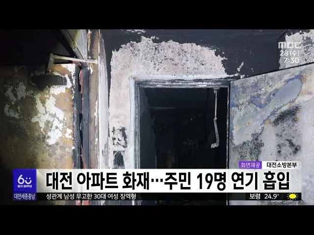 뉴스투데이 뉴스데스크뉴스투데이뉴스데스크 VOD(전체 다시보기)뉴스투데이 VOD(전체 다시보기)유튜브뉴스페이스북 뉴스카카오톡 뉴스인스타그램 뉴스 prev 2024.8.28 - 수요일 next 고장 난 버스로 서산까지?/투데이 ◀ 앵 커 ▶서울에서 충남 서산까지 고속버스로 약 1시간 50분이 걸리는데요.하지만, 최근 이 노선 버스가 출발한 지 5시간 반 만에 목적지에 도착했는데요.한 시간 넘게 전용차로도 이용하지 않고 저속 주... 김성국 경찰, 봉명동 음주의심 사망 사고 '운전자 특정' 대전 봉명동에서 음주 운전 의심 차량이 20대 보행자를 치여 사망사고를 내고도모두 운전을 하지 않았다고 부인하는 사건과 관련해, 경찰이 30대 내국인을 운전자로 특정해 도주치사 혐의 등을 적용할 방... 조형찬 대전 아파트서 불..주민 19명 연기 흡입 어젯 밤 8시쯤 대전시 읍내동에 있는 18층짜리 아파트 15층에서 불이 나 주민들이 대피하는 소동이 빚어졌습니다.불은 가정집 한 가구를 모두 태우고 40분 만에 꺼졌으며, 주민 19명이 연기를 흡입해 이 ... 김성국 대전 공공어린이 재활병원 정상화 위한 대책위 출범 대전 공공어린이재활병원에서 근무하는직원들의 열악한 처우를 개선하기 위한대책위원회가 출범했습니다.환아 가족과 35개 사회단체로 구성된 대책위는 대전시청 앞에서 어제 기자회견을 열고,치료사 인력... 윤소영 한동훈 국민의힘 당대표 "대전 과학기술 수도로 다시 빛나게 하겠다" 국민의힘 한동훈 당 대표가어제 대전시당 이전 개소식을 찾아대전을 과학기술의 수도로서 다시 빛나게 하는당 차원의 지원을 약속했습니다.한 대표는 "지난 총선에서 빚어진 정부의연구개발 예산 삭감 논... 고병권 거센 반발에…결국 환경부 설명회도 '무산'/투데이 ◀ 앵 커 ▶지난달 정부가 발표한 기후대응 댐 후보지에지천 일대가 포함되면서 주민들 사이에 갈등을 빚고 있다는 소식, 그제 전해드렸죠.청양 군민들과 만난 김태흠 충남지사에 이어 어제는 환경부가 설... 박선진 대전MBC 시청자위 "지천댐 논란 심층적인 접근 필요" 대전MBC에서 열린 8월 시청자위원회에서 위원들은 "식품사막과 관련한 기획보도가 충실한 문제 인식과 효율적인 대안 제시를 통해 지역 뉴스의 본질에 충실했다"고 호평했습니다.또 찬반 논란이 격화되고 ... 김지훈 이장우 대전시장 "대전과 세종은 충청권 한 뿌리" 이장우 대전시장이"대전과 세종은 충청권의 한 뿌리"라며,"과학 수도 대전과 행정수도 세종이 대한민국의새로운 중심으로 함께 뛰자"고 제안했습니다.이 시장은 어제 세종시청 여민실에서 세종시청 공무원... 고병권 전교조 충남지부, 학기 중 교사 해외연수 중단 촉구 전교조 충남지부가 성명을 내고 충남교육청이학기 중에 추진하는 특혜성 디지털 관람 연수를 즉각 중단하라고 촉구했습니다.전교조는 1인당 해외 연수 비용이 570만 원에 달하는 데다, 일부 교육지원청이 ... 김태욱 "대전 학교 40곳 이상?"…딥페이크 공포 확산/투데이 ◀ 앵 커 ▶타인의 얼굴을 음란물 등에 합성해유포하는 이른바 '딥페이크' 사건. 현재, SNS에서 딥페이크 범죄 피해를 입은학교 명단이 돌고 있는데 우리 지역 중·고등학교와 대학교 등 수십 곳이 포함된 것... 윤소영 연애 빙자해 현금 갈취한 20대 송치...총책 추적 중 대전 대덕경찰서는 연애하는 것처럼 속여 현금을 빼앗는 일명 로맨스 사기를 친 혐의로일당 가운데 현금 전달책인 20대 남성을 구속 송치했습니다.이 남성은 지난 달 1일, 대전시 법동에서 30대 피해자로... 윤소영 열차 놓쳤다고 역무원 폭행한 연구원 벌금형 대전지법 형사10단독은 열차를 놓쳐 화가 난다는 이유로 역무원을 폭행한 혐의로 기소된 모 정부출연연구기관 40대 책임연구원에게 벌금 4백만 원을 선고했습니다.이 연구원은 지난해 9월, 대전역 승강장... 윤소영 성관계 남성 무고한 30대 여성 집행유예 대전지법 천안지원은 성관계를 한 남성을 무고한 혐의로 기소된 30대 여성에게 징역 10개월에 집행유예 2년을 선고하고,사회봉사 160시간을 명령했습니다.이 여성은 지난해 6월, 아산에서 함께 술을 마신 ... 윤소영 내년 정부 예산안 발표..행정수도 발돋움 위한 예산 반영/투데이 ◀ 앵 커 ▶정부가 어제 내년도 예산안을 발표한 가운데, 세종시 관련 예산은 올해보다 5% 늘어난 수준으로 나타났습니다.시는 특히 국회세종의사당과 대통령 제2 집무실 등 실질적인 행정수도로 발돋움하... 김광연 한국전자통신연구원, 6세대 이동통신 핵심기술 개발 나서 한국전자통신연구원이 6세대 이동통신 선점을 위한 무선 액세스와 이동 무선 백홀 등 핵심기술 개발에 나섭니다. 무선 액세스 기술은 다양한 무선 환경 속에서도 모든 기기가 동일한 시각·시계를 갖도록 ... 최기웅 카이스트·원자력연구원, 원전 폐수 삼중수소 제거 촉매 개발 카이스트 생명화학공학과 고동연 교수와 한국원자력연구원 박찬우 박사 연구팀이 원전 폐수에 함유된 삼중수소를 효과적으로 제거할 수 있는 촉매를 개발했습니다. 지난해부터 후쿠시마 오염수의 해양 방... 최기웅 천안 서북구, '열섬현상 완화' 아스팔트 차열 도색 천안시 서북구는 폭염에 대응해유동인구가 많은 두정