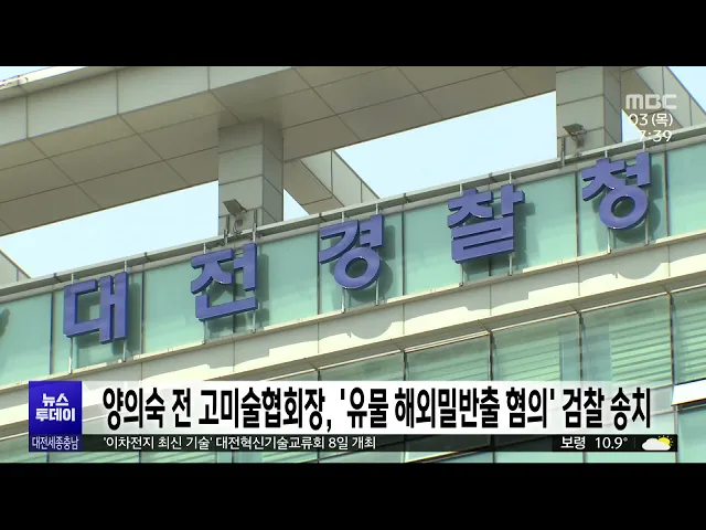 뉴스투데이 뉴스데스크뉴스투데이뉴스데스크 VOD(전체 다시보기)뉴스투데이 VOD(전체 다시보기)유튜브뉴스페이스북 뉴스카카오톡 뉴스인스타그램 뉴스 prev 2024.10.3 - 목요일 next 전 세계 무기, '계룡에 모여'/투데이 ◀ 앵 커 ▶올해 충남도가 유치한 '대한민국 국제방위산업전시회'가 역대 최대 규모로 계룡에서 막을 올렸습니다.대한민국을 세계 4대 방산강국으로 도약시키겠다는 포부를 밝혔지만 한편에서는 전쟁 장사라... 박선진 최민호 시장 "예산 삭감 사업, 지방채 발행해 강행" 세종시의회가 20억여 원의 예산을 전액 삭감한국제정원도시박람회와 빛축제에 대해 최민호 세종시장이 지방채를 발행해 추진하겠다는 뜻을 밝혀 논란이 일고 있습니다. 최 시장은 어제 직원 소통의 날 행... 조형찬 이정문 "이동통신·인터넷 소비자 피해구제, KT 최다" 최근 5년간 이동통신이나 초고속 인터넷 서비스에 대한 소비자의 피해 구제가 가장 많이 접수된 통신사는 KT라는 조사 결과가 나왔습니다.더불어민주당 천안시병 이정문 의원이 한국소비자원으로부터 제출... 김윤미 사라진 전봇대 전선...범인은 오리무중/투데이 ◀ 앵 커 ▶얼마 전, 태안군 일대에 있는 낙뢰방지용전선이 감쪽같이 사라지는 일이 벌어졌습니다.누군가 전봇대에 올라가 전선을 훔쳐간 건데요.경찰이 수사력을 집중하고 있지만, 여전히 범인은 오리무중... 윤소영 양의숙 전 고미술협회장, 유물 해외밀반출 혐의 검찰 송치 대전경찰청은 문화유산의 해외 불법 유출 의혹을 받아왔던 양의숙 전 한국고미술협회장을 국가유산기본법 위반 혐의로 검찰로 불구속 송치했습니다.양 전 회장은 지난해 국내 문화유산 유물 10여 점을 국... 조형찬 '국정원 통해 마스크 수출' 속여 장비 공급받은 업체 대표 실형 대전지법 천안지원 제1형사부는 국정원을 통해 마스크 수출을 할 수 있다고 속여 마스크 생산 기계 등을 납품받은 뒤 대금을 지급하지 않은 혐의로 기소된 60대 마스크 생산업자에게 징역 3년 6개월을 선... 조형찬 중견기업 일자리 박람회 지역 최초로 대전서 개최 산업통상자원부와 고용노동부가 주최하는청년 친화 강소기업과 함께하는 중견기업 일자리 박람회가 어제 대전 컨벤션센터에서 열렸습니다.지난 2017년부터 시작된 중견기업 일자리 박람회가 수도권이 아닌... 김윤미 카이스트 동영상 압축 특허 기술료 누적 100억 원 돌파 카이스트 연구팀이 지난 2014년 국제표준 핵심 특허로 등록한 '고효율 동영상 압축 기술'의 누적 기술료가 100억 원을 넘었습니다.카이스트는 아마존과 애플, 구글 등으로부터 올해만 약 54억 원의 기술료... 김윤미 JMS 정명석 항소심서 감형...'양형 부당' 인정?/투데이 ◀ 앵 커 ▶여신도들을 성폭행한 혐의 등으로 기소돼1심에서 징역 23년을 선고받은 기독교복음선교회 JMS 총재 정명석 씨가항소심에서 징역 17년으로 감형됐습니다.재판부가 원심의 형이 너무 무겁다며양형 ... 김성국 '어린왕자 충남 사투리편' 독일서 출간 앙투안 드 생텍쥐페리의 동화 '어린왕자'의 충남 사투리 편이 독일에서 출간됐습니다. 충남도에 따르면, 충남도 독일사무소와 독일 출판사의 협업으로 출간된 어린왕자 충남 사투리편이 독일 아마존 온라... 조형찬