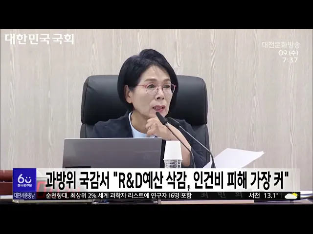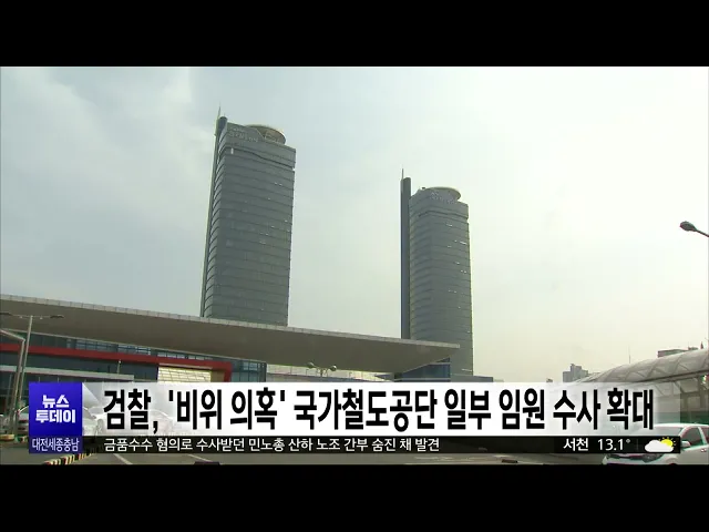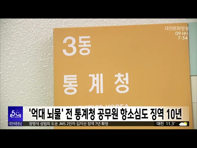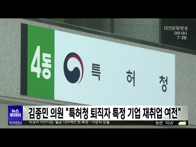 뉴스투데이 뉴스데스크뉴스투데이뉴스데스크 VOD(전체 다시보기)뉴스투데이 VOD(전체 다시보기)유튜브뉴스페이스북 뉴스카카오톡 뉴스인스타그램 뉴스 prev 2024.10.9 - 수요일 next 지천댐 우려 답변 문건 살펴봤더니/투데이 ◀ 앵 커 ▶청양군이 지천댐과 관련한 우려사항 7가지에 대해 환경부가 만족할 만한 답을 주지 않아댐 건설을 반대한다고 밝혔죠.실제 환경부 답변 문건을 면밀히 살펴봤는데요.이주단지를 조성해 주겠다는 ... 김태욱 최민호 세종시장 단식 사흘째..여야 대립 점입가경 한동훈 국민의힘 대표가 정원도시박람회 등의 예산 통과를 촉구하며 지난 6일부터 단식에 돌입한 최민호 세종시장을 찾아 "시민이 원하는 사업을 시의회가 좌초시키고 있다"고 지적했습니다.또, 국민의힘 ... 김광연 대전지검, '비위 의혹' 국가철도공단 일부 임원 수사 확대 지난 8월 국가철도공단의 전직 임원이6천여만 원의 뇌물을 받고 특정 업체에 불법으로 하도급을 준 혐의로 기소된 가운데 검찰이 국가철도공단의 또 다른 임원들에 대해수사 중인 것으로 확인됐습니다.대... 이승섭 억대 뇌물받은 전 통계청 공무원 항소심도 중형 대전고법 제3형사부가 특정 업체로부터억대의 뇌물을 받은 혐의로 재판에 넘겨진전 통계청 공무원에게 징역 10년을 선고한원심을 유지했습니다.피고인은 지난 2019년 8월부터 3년여 동안물품 구입 과정에... 이승섭 아산시장 당선 무효형 확정/투데이 ◀ 앵 커 ▶박경귀 아산시장이 2년 전 지방선거에서 상대 후보에 관한 허위 사실을 유포한 혐의로 당선 무효형이 확정됐습니다. 박 시장의 낙마로 아산시정은 당분간 혼란이 불가피하게 됐고, 내년 4월 시... 고병권 과방위 국정감사서 "R&D예산 삭감, 인건비 피해 가장 커" 어제 정부세종청사에서 진행된 과학기술정보방송통신위원회 국정감사에서윤석열 정부의 RD 예산 삭감으로 인건비 피해가 가장 컸다는 증언이 나왔습니다. 윤 대통령의 카르텔 발언에 대한 최민희 위원장의... 박선진 김영진 의원 "조달청 설치 전국 지방청 휴게실 등 불법" 조달청이 전국 지방청 등에서 휴게실 등으로 설치한 가설건축물을신고도 하지 않고 사용해 온 것으로 드러났습니다.국회 기획재정위원회 소속 김영진더불어민주당 의원이 조달청에서 받은자료를 보면, 대... 문은선 김종민 의원 "특허청 퇴직자 특정 기업 재취업 여전" 특허청 퇴직자들의 특정 기업 재취업 관행이 여전한 것으로 나타났습니다.국회 산업통상자원중소벤처기업위원회 소속무소속 김종민 의원실은 최근 5년간특허청 퇴직자 94명이 특허·상표·디자인 등 선행기... 문은선 '13kg 빠졌다' 황영묵...눈부신 성장/투데이 ◀ 앵 커 ▶올해 프로야구 한화이글스는 팀 성적은 아쉬웠지만, 젊은 선수들의 성장은 눈에 띄었는데요.그중에 만 24살의 나이로 프로 무대에 데뷔한황영묵은 한화를 대표하는 내야수로떠올랐습니다.한 시즌... 김성국 서천군, 집중호우 피해 약 3천 가구 상하수도 요금 감면 서천군이 지난 7월 집중호우로 피해를 본 2,989 가구의 상하수도 요금을 감면합니다.군은 특별재난지역 선포에 따라이달부터 오는 12월까지 기본요금을 제외한상수도 요금 전액과 하수도 요금 절반을 감면... 김태욱 서산시 신청사, 충남도 지방재정 투자심사 통과 서산시가 추진하는 신청사 건립 사업이충남도 지방재정 투자심사를 통과했습니다.서산시는 오는 2030년 개청을 목표로현재 서산문화원 일대 5만 7천여㎡부지에1,600억여 원을 투입해 본청과 의회, 직장 어... 김태욱 대전하나시티즌 파이널 라운드 일정 확정 하위 스플릿에서 1부 리그 잔류를 두고 경쟁하는 K리그1 대전하나시티즌의 파이널 라운드 5경기 일정이 확정됐습니다.대전은 오는 19일, 전북과의 원정 경기를시작으로 대구와 광주, 인천과 차례로 만난 ... 이승섭 신약 발굴 '원자 편집'으로 빠르게/투데이 ◀ 앵 커 ▶신약 후보 물질을 발굴하기 위해서는 많은 시간과 비용이 소요되는데요.국내 연구진이 신약 개발 분야 꿈의 기술로 불리는 '원자 편집'에 성공했습니다.최기웅 기자입니다. ◀리포트▶신약 개발을... 최기웅 부여서 11일~17일 세계유산축전 열려 오는 11일부터 일주일간 부여군 정림사지 일원에서유네스코 세계유산의 의미를 알리기 위한2024 세계유산축전-백제역사유적지구가열립니다.올해 세계유산축전에서는 성왕의 꿈을주제로 한 창작 뮤지컬을 ... 문은선
