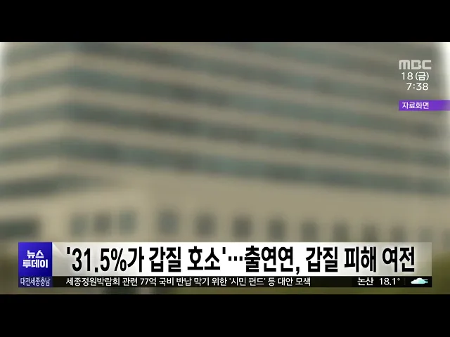 뉴스투데이 뉴스데스크뉴스투데이뉴스데스크 VOD(전체 다시보기)뉴스투데이 VOD(전체 다시보기)유튜브뉴스페이스북 뉴스카카오톡 뉴스인스타그램 뉴스 prev 2024.10.18 - 금요일 next '완연한 가을' 지역 곳곳에서 가을 축제 개최/투데이 ◀ 앵 커 ▶완연한 가을 날씨가 이어지고 있는 가운데지역 곳곳에서는 다양한 축제가 진행되고 있습니다.예산에서는 국화와 국밥, 국수를 즐길 수 있는삼국축제가, 논산에서는 젓갈과 고구마의 조화로운 맛... 김광연 법원·검찰청 국정감사..여야 공방 국회 법제사법위원회가 어제, 대전고등법원과 대전고등검찰청에서 연 국정감사에서는 전·현 정부의 사건을 두고,여야 공방이 이어졌습니다.여야 의원들은 대전지검과 대전고검을 대상으로 한 국정감사에서... 이승섭 과기정위 국감 "국립과학관 방문객 크게 줄어...효율 떨어져" 과학기술정보통신부와 정부출연연구기관 등에 대한 국정감사에서 전국에 조성된 국립과학관의 방문객이 크게 줄어 운영상 난맥을 보이고 있다는 지적이 나왔습니다. 대전 KAIST서 열린 국회 과기정위 국감... 최기웅 과기정위 국감 "연구재단 부정연구 1천769억 원…환수는 1.9%뿐" 한국연구재단이 최근 5년 동안 발주한 연구 가운데 부정 연구로 결정이 났음에도 환수되지 않은 연구비가 천7백억 원에 달한다는달한다는 지적이 제기됐습니다. 국회 과학기술정보방송통신위원회 더불어민... 최기웅 출연연, 조직 내부 갑질 피해 여전 과학기술계 정부출연 연구기관 조직 내부 갑질 피해가 여전한 것으로 나타났습니다. 더불어민주당 노종면 의원이 국가과학기술연구회로부터 받은 '출연연 갑질 실태조사'에 따르면 2022년 2월 기준 26개 ... 최기웅 윤석대 수자원공사 사장 "기후대응댐 건설 필요" 윤석대 한국수자원공사 사장이충남 청양 등 전국 14곳에 건설을 추진하는기후대응댐이 폭우와 가뭄 피해를 막고,각종 용수 확보를 위해 필요하다는 입장을밝혔습니다.윤 사장은 어제, 국회 환경노동위원회... 이승섭 "관세청 마약 탐지견 10% 복제견" 관세청이 마약류 단속에 활용하는탐지견의 10%가 복제견으로 나타났습니다.국회 기획재정위원회 소속개혁신당 천하람 의원이 관세청에서 확인한자료를 보면, 마약 탐지견 40마리 가운데4마리가 복제견으로... 문은선 단식 복귀 첫 일성 "대안 찾겠다"/투데이 ◀ 앵 커 ▶정원 박람회 등의 예산 통과를 촉구하며 단식 농성을 벌였던 최민호 세종시장이 요구안이 무산된 뒤 첫 공식자리에서 '대안을 찾겠다'고 밝혔습니다. 추경예산 없이도 박람회를 치를 수 있는 방... 고병권 "세종시 이응패스 도입으로 대중교통 이용 10% 이상 증가" 지난달 세종시 이응패스 도입 이후 한 달 남짓한 기간 동안 시민들의 대중교통 이용이 늘어난 것으로 나타났습니다.시가 이응패스 시행 전후 대중교통 이용 데이터를 분석한 결과평일 평균 이용 건수는 7... 문은선 전자담배 기술 보상 청구 민사 소송 시작 전자담배 제조 기술을 최초로 발명한곽대근 전 KTG 연구원이 직무발명의 보상으로천억 원을 지급하라며 회사를 상대로 낸 민사소송의 첫 재판이 어제, 대전지방법원에서 열렸습니다.곽 전 연구원 측은 회... 이승섭 대전시 'RISE' 출범대비 산학투어 본격화 대전시가 내년 출범하는지역혁신중심 대학 지원체계 즉 RISE를앞두고, 대학생이 지역 우수기업을 방문하는산학투어를 본격화하고 있습니다.대전시는 어제 대학생 30여 명이지역의 연구용 실험기기 제조업... 고병권