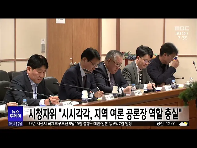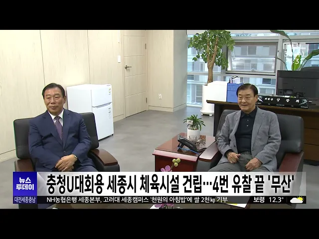 뉴스투데이 뉴스데스크뉴스투데이뉴스데스크 VOD(전체 다시보기)뉴스투데이 VOD(전체 다시보기)유튜브뉴스페이스북 뉴스카카오톡 뉴스인스타그램 뉴스 prev 2024.10.30 - 수요일 next 계파·자리 싸움 언제까지..의정비 받고 일은 언제하나?/투데이 ◀ 앵 커 ▶의장 선출 과정에서 파행을 거듭했던 대전 대덕구의회가 이번에는 부의장을선출하지 못해 원 구성이 불발됐습니다.계파갈등과 자리싸움 때문이라는 분석인데,의정비는 받고 일은 대체 언제 하는 ... 김광연 충청U대회용 세종시 체육시설 건립 결국 무산 2027 충청권 하계세계대학경기대회를 위해 추진했던 세종시 종합체육시설이 잇단 유찰 끝에 결국 무산됐습니다.세종시는 충청U대회 조직위, 행복청 등과긴급 회의를 열고, 대회 개최 전 체육시설 건립은 ... 문은선 10·29 참사 2주기..."함께 기억해주세요"/투데이 ◀ 앵 커 ▶서울 이태원의 좁은 골목에 수많은 인파가 몰려 159명이 희생된 10·29 참사 2주기를 맞았습니다.지역에서도 2년째 진상 규명의 끈을 놓지 않고 힘겹게 버티는 유가족들이 있는데요.많은 이들이 ... 김성국 KAIST 교수협, 총장 후보로 김정호·류석영 교수 추천 카이스트 교수협의회가 차기 총장 후보자로 전기·전자공학부 김정호, 전산학부 류석영 교수를 이사회에 추천했습니다.두 교수는 앞으로 카이스트 이사회 총장발굴위원회에서 발굴한 후보와, 자천으로 공모... 조형찬 시청자위 "시시각각, 지역 여론 공론장 역할 충실" 대전MBC에서 열린 10월 시청자위원회에서 위원들은 "토론 프로그램 시시각각이 지역의제 공론장 역할을 충실히 하고 있다"며 "앞으로는 현안 해결과 사회 변화를 일으킬 수 있도록 기능을 강화해달라"고 ... 김지훈 내포 종합병원 "충남도가 짓는다"/투데이 ◀ 앵 커 ▶내포신도시에 오는 2026년까지 세워질 예정이던종합병원이 무산될 위기에 놓이자 충남도가 직접 병원을 짓기로 했습니다.도립병원을 세워 대학병원에 운영을 맡기겠다는 건데, 예산과 사업성을 ... 이승섭 충남도, 안면도 관광지 개발 방식 전환..충남도 참여 30년 넘게 표류해온 태안 안면도 관광지 개발 사업이 충남도가 참여하는 개발 방식으로새롭게 추진됩니다.김태흠 충남지사는 기자회견에서애초 민간컨소시엄이 맡은 안면도 3·4지구가 경기 침체 등으로 지... 이승섭 세종충남대병원 야간 응급실 제한 유지.."인력 지원 검토" 전문의 사직으로 응급실 운영에 차질을 빚는 세종충남대병원이 다음 달에도 야간 응급실 진료를 제한합니다.병원 측은 응급실 전문의를 채용하기 위해공고를 냈지만 여전히 인력 확보에 어려움을 겪고 있... 윤소영 LED 마스크로 피부 탄력 효과...다음 달 상용화/투데이 ◀ 앵커 ▶피부 노화를 줄이기 위해 최근 얼굴에 쓰는 LED 마스크가 늘고 있는데요.국내 과학자들이 기존 제품에 비해 피부 탄력을 3배가량 향상시키는 LED마스크 개발에 성공했다고 합니다.고병권 기자입... 고병권 세종 홀덤펍 불법도박 '117명 검거'...공무원도 참가/투데이 ◀ 앵 커 ▶세종시 도심의 홀덤펍에서 불법 도박장을 운영한 업주와 참가자 등백여 명이 무더기로 경찰에 붙잡혔습니다.불법 도박 참가자 중에는 세종시 중앙부처와 지자체 공무원 3명도 포함돼 있었습니다.... 김태욱 2억 뇌물 챙긴 전 통계청 6급 공무원 징역 10년 확정 2억4천만 원의 뇌물을 받은 전 통계청 공무원에게 선고된 징역 10년의 실형이 확정됐습니다.앞서 지난달 대전고법은 지난 2019년부터 지난해까지 인쇄업자 2명에게 40차례에 걸쳐 2억 4천만 원의 뇌물을 ... 김지훈 세종시, 보조금으로 술·선물 산 민간 단체들 무더기 적발 세종시가 보조금으로 술과 선물 산 민간단체들을 대거 적발했습니다.세종시감사위 보조금 감사 결과, 6개 보훈단체가 보조금으로 수십 차례에 걸쳐 술과 선물용 홍삼 세트를 구입하는 등 수천만 원을 유용... 조형찬 대전시, 대전 출신 가수 머쉬베놈 홍보대사 위촉 대전시가 대전 출신의 힙합 가수 머쉬베놈을홍보대사로 위촉했습니다.머쉬베놈은 앞으로 2년 동안대전을 대표하는 각종 행사에 참여해시민과 소통하고, 지역의 문화 발전에 힘을 보탤 계획입니다. 이승섭 홍성군, 바비큐페스티벌 방문객용 '신바람 관광택시' 현장 접수 홍성군이 글로벌바비큐페스티벌이 열리는 다음 달 1~3일 신바람 관광택시 현장 접수서비스를 운영합니다.기존에는 택시 이용 사흘 전에 예약해야 했지만, 축제장 방문 관광객의 편의를 위해 행사 기간 2~6... 조형찬