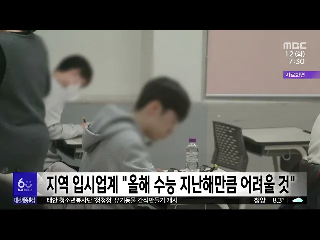 뉴스투데이 뉴스데스크뉴스투데이뉴스데스크 VOD(전체 다시보기)뉴스투데이 VOD(전체 다시보기)유튜브뉴스페이스북 뉴스카카오톡 뉴스인스타그램 뉴스 prev 2024.11.12 - 화요일 next 충남 서북부 단수 사태가 남긴 것/투데이 ◀ 앵 커 ▶지난주 금요일 새벽부터 발생한 충남 서북부 단수 사태로 33만 명이 넘는주민들이 큰 불편을 겪었는데요.단수 나흘만에야 수돗물 정상 공급이 이뤄졌지만, 항구적인 재발 방지 대책 등 여러 과... 최기웅 입시업계 "올해 수능 지난해 만큼 어려울 듯" 오는 14일 치러지는 대학수학능력시험은 N수생 응시가 크게 늘면서 변별력 확보를위해 다소 어렵게 출제될 것이란 전망이우세합니다.올해 수능은 대전 만 5천여 명을 비롯해 전국 85개 시험지구에서 52만 ... 문은선 지역경찰청, 수능시험장 102곳 주변 특별 교통관리 대전과 세종, 충남경찰청이 2025학년도 대학수학능력시험이 치러지는 오는 14일, 시험장 102곳을 중심으로 특별 교통관리를 추진합니다.이에 따라 미리 수능 시험장 주변 교차로와 간선도로를 관리하고, ... 윤소영 대전시장-국회의원, 반년 만에 만난 자리에서 고성 오가/투데이 ◀ 앵 커 ▶대전시장과 지역 국회의원들이 내년 국비 확보를 위해 반 년 만에 한자리에 모였습니다.서로 소속 정당은 다르지만대전시민을 위해 당을 떠나 협력하자는 취지였는데, 일부 사안을 놓고 쓴소리와... 김광연 대전시, 6조 6천억여 원 규모 내년도 예산안 편성 대전시가 올해보다 2.2% 증가한6조 6천771억 원 규모로 내년도 예산안을 편성해 시 의회에 제출했습니다.주요 예산을 보면 28년 만에 착수한 도시철도 2호선 건설 사업에 978억 원, 내년 개장하는 베이스... 김광연 대전 잔류·아산 PO 직행.. '1부에서 만나요'/투데이 ◀ 앵 커 ▶우리 지역에 연고를 둔 축구팀끼리 맞붙는 장면, 이른바 '충청 더비'가 내년에 가능할 수도 있을 것 같습니다.강등 위기까지 몰렸던 대전하나시티즌이 잔류를 확정했고, K리그2 충남아산FC가 1부... 김태욱 서산서 운전자 살해 후 차량 불태운 40대 영장...10만 원 빼앗아 서산경찰서가 식당 주차장에서 운전자를 흉기로 찔러 숨지게 한 혐의 등으로 40대 남성의 구속영장을 신청했습니다.피의자는 지난 8일 밤 서산시 동문동의 한 식당 주차장에 있던 차에 들어가 40대 남성을... 김태욱 잇단 사전답사 비리...교육부, 뒤늦은 대책 마련/투데이 ◀ 앵 커 ▶대전MBC는 수학여행 사전답사가 교장과 간부 교사들의 가족 여행으로 변질된 실태를 보도해 드렸는데요.교육당국의 허술한 감시를 틈 타 나랏돈 빼먹기가 관행처럼 번진 건데요.관리에 소극적이... 윤소영 "세종시 공공도서관 도서구입 예산 매년 삭감" 세종시 공공도서관 도서 구입 예산이 매년 줄어드는 것으로 나타났습니다.세종시의회 안신일 의원은 "시 공공도서관 도서구입비 예산은지난해 9억 6천여만 원이었지만 올해는 절반 이상 삭감된 4억 3천여 ... 문은선 아산 신정호 지방정원 내년 1월 임시 개방 아산시 방축동 일대 신정호 지방정원이준공돼 내년 1월 임시 개방됩니다.신정호 지방정원은 물의 정원을 주제로환영정원, 사계절과 색깔정원 등 6개의 테마정원이 조성됐습니다.아산시는 안내판 설치 등 ... 문은선 내년부터 대전역 등 기차역에 '백종원 표' 도시락 판매 한국철도공사와 더본코리아가 손잡고대전역 등 전국 기차역에서 백종원 표 전문 도시락을 판매합니다.이들 기관은 역사 내 청년 창업 매장 조성과 상품 개발 지원, 일반 매장보다 낮은 수수료율 적용 등으... 문은선 천안시, 복지부에 치의학연구원 설립 촉구 서명부 전달 천안시가 보건복지부에 대통령 공약인국립치의학연구원 천안 설립을 촉구하는서명부를 전달했습니다.서명운동은 지난 7월부터 석 달간진행했으며, 시 전체 인구의 45%에 해당하는31만 4천여 명이 참여했습... 문은선 건양대병원, 중증·응급환자 중심 진료체계 구축 건양대병원이 보건복지부가 추진하는'상급종합병원 구조전환 지원사업'참여 기관으로 선정됐습니다.이번 사업은 상급종합병원을 중증과 응급,희귀 질환 중심 의료기관으로 전환하고, 임상과 수련을 위한 ... 김태욱 핵융합연, 케이스타 토카막 용기 '텅스텐' 교체 성능 실험 핵융합에너지연구원이인공 태양 '케이스타'의 새로운 핵심 소재인'텅스텐'의 성능을 시험하기 위한 실험에들어갔습니다.연구원은 케이스타에서 발생하는플라스마 에너지를 가둬놓는 토카막의 용기소재를 ... 고병권 당진시 우수 평생학습도시 선정 당진시가 평생학습도시 재지정 평가에서 우수 평생학습도시로 선정돼 교육부장관상을 받았습니다. 당진시는 평생학습 통합 플랫폼을 구축해 학습 접근성과 편의성을 높이고 평생교육 중장기 발전계획에 시... 최기웅 태안군, 김장철 맞아 절임배추 등 판매 태안군이 김장철을 맞아 이달 한 달 동안 로컬푸드직매장에서 절임배추와 김장양념을 저렴하게 판매합니다. 2박 3일간 절인 뒤 3차례 세척한 절임배추는 20㎏ 3만 9천 원으로, 전화나 인터넷으로 주문할 ... 최기웅