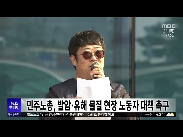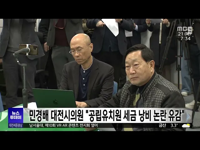 뉴스투데이 뉴스데스크뉴스투데이뉴스데스크 VOD(전체 다시보기)뉴스투데이 VOD(전체 다시보기)유튜브뉴스페이스북 뉴스카카오톡 뉴스인스타그램 뉴스 prev 2024.11.21 - 목요일 next 유등교 임시 교량 내년 2월 개통/투데이 ◀ 앵 커 ▶지난여름, 집중호우로 내려앉은 대전 유등교를임시로 대체할 교량이 어제착공했습니다.애초 올해 안에 임시 교량을 짓겠다던대전시의 계획보다 두 달가량 미뤄지게 돼주민들의 불편이 불가피합니... 이승섭 대전 한화생명이글스파크에서 야외 스케이트장 운영 프로야구 한화 이글스가오는 29일부터 닷새 동안, 올 시즌을 끝으로 프로야구 경기를 마친대전 한화생명이글스파크 외야에가로 40m, 세로 25m 규모의 야외 스케이트장을 설치해 운영합니다.구단 측은 구단... 이승섭 충남아산FC 승강전 홈경기, 천안종합운동장에서 열려 창단 이래 처음으로 K리그1 승강 플레이오프에 진출한 충남아산FC가 승강전 홈경기를 천안종합운동장에서 치르게 됐습니다.아산FC의 홈구장인 이순신종합운동장은 잔디 교체 공사로 경기가 어려운 상황이... 김광연 대전·세종·충남 고액 체납자 1,080명 명단 공개 대전시와 세종시, 충남도가1년 넘게 천만 원 이상 세금을 내지 않은개인과 법인 대표 1,080명의 명단을공개했습니다.대전에서는 고액 체납자 233명이세금 163억 원을 제때 내지 않았고, 세종은 334명이 16... 이승섭 빈 상가 바겐세일! 상가공실 박람회/투데이 ◀ 앵 커 ▶세종시가 출범 당시부터 골칫거리였던상가 공실 문제를 공론화하고 해법 찾기에 나섰습니다.전국에서 처음으로 빈 상가를 적극 알리고예비창업자를 연결하는 상가공실 박람회를연 건데요, 해법을... 문은선 민경배 대전시의원 "공립유치원 세금 낭비 논란" 유감 표명 민경배 대전시의원이 대전시교육청 행정사무감사에서 한 자신의 발언이 공립유치원을 세금 낭비라고 폄훼했다며 사과를 요구한 대전교사노조에 유감을 표명했습니다.민경배 의원은 "소규모 유치원의 운영 ... 이승섭 철도노조 "임금 인상·인력 충원"⋯12월 초 총파업 예고 전국철도노조 대전지방본부가대전역 철도공사 본사 앞에서 기자회견을 열고 임금 인상과 안전인력 충원을 촉구했습니다.이들은 한국철도가 공공기관 임금 인상가이드라인인 기본급 2.5% 인상 요구를받아들... 김태욱 민주노총, 발암·유해물질 현장노동자 대책마련 촉구 민주노총 대전본부가 대전역 서광장에서 발언대회를 열고, 발암 또는 유해물질에 노출된 산업현장에서 일하는 노동자들을 위한 대책 마련을 촉구했습니다. 이들은 세계보건기구가 전체 암환자의 4%를 직업... 김태욱 벼랑 끝에 선 소상공인/투데이 ◀ 앵 커 ▶어려운 경기 여건 속에 소상공인들의 한숨이 짙어지고 있습니다.박선진 앵커가 벼랑 끝에 선 소상공인들의 현실을 진단했습니다.◀ 리포트 ▶대전 2만 6천637명,세종 6천118명,충남 3만 9천168명.... 박선진 여대생 원룸 무단침입 20대 1심서 집행유예 3년 대전지법 형사11부 장민주 부장판사가 대낮에 혼자 사는 여대생의 집에 상습적으로침입해 물건을 훔친 혐의로 기소된20대 남성에게 징역 1년 6개월에 집행유예 3년, 보호관찰과 사회봉사 120시간을 명령했... 김성국 한국타이어 대전공장 기계 멈춘 전 노조 지회장 벌금형 대전지법 형사10단독 김태현 판사가 지난 2022년 한국타이어 대전공장의 기계 작동을 멈추고 이를 제지한 직원을 폭행한 혐의로 기소된 민주노총 소속 한국타이어 전 노조 지회장에게 벌금 7백만 원, 노조... 김태욱 '특정 국회의원 후보 지지해 달라' 우편 보낸 목사 2명 벌금형 대전지법 11형사부 최석진 판사가 국회의원 선거를 앞둔 지난 3월 종교 관계자 2백여 명에게 특정 후보의 지지를 호소하는 우편을 보낸 혐의로 재판에 넘겨진 대전 중구 지역 교회 담임목사 2명에게각각 ... 김태욱 크리스마스실 인기 시들...결핵 환자 도움 절실/투데이 ◀ 앵 커 ▶연말을 맞아 주변 사람들에게 보내는 카드나 편지에 붙이던 크리스마스실, 이메일과 휴대전화 메시지가 일상이 된요즘 거의 쓰이지 않는 추억의 상징이 됐죠.크리스마스실 수익금이 줄면서 결핵 ... 윤소영 백일해 환자 급증.."예방접종, 마스크 착용해야" 최근 백일해 환자 급증세 속에 한 살 미만 영아 사망 사례가 발생한 가운데세종시가 예방접종과 마스크 착용 등 백일해 확산 방지를 위해 개인위생에 유의해 줄 것을 당부했습니다.올해 세종 지역 백일해 ... 문은선 태안군, 안흥항 일대에 해안 길·숲속 길 조성 태안군 근흥면 안흥항 일대에 내후년까지 2개의 비경길과 경관 전망대가 조성됩니다.태안군은 관광자원 개발 사업 공모로 확보한 도비 10억 원 등을 들여 해안 절경을 감상할 수 있는 해안 길과 치유 체험... 김광연 백종원, 예산시장 상가 시세 급등 우려 "시장 통째로 옮길 수 있어" 예산시장 인기로 주변 상가 한 달 임대료가10만 원에서 최대 2백만 원까지 크게 오르자 백종원 더본코리아 대표가 임대료가 올라 원주민이 밀려나는 '둥지 내몰림', 이른 바 젠트리피케이션을 우려하며 "... 김광연 광역상수도 단수 피해에 서산·태안 상수도 요금 감면 서산에 이어 태안군도 지난 8일 발생한 보령광