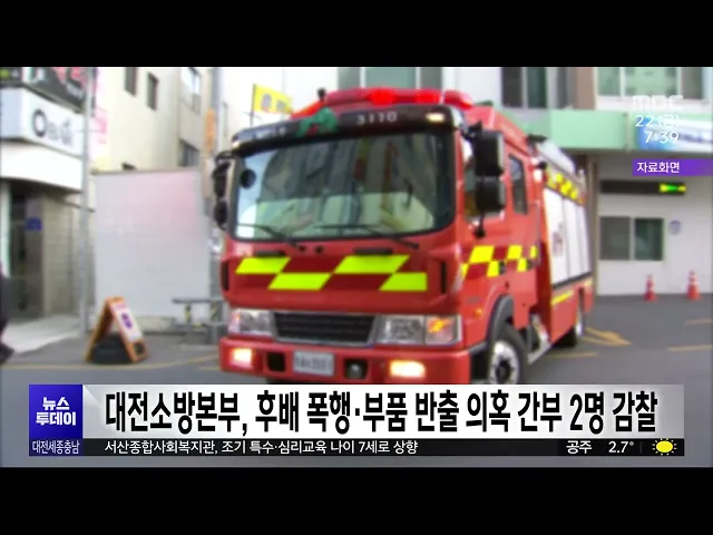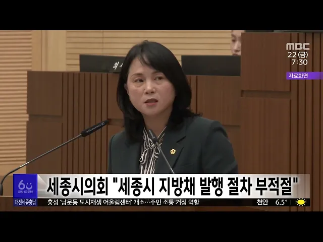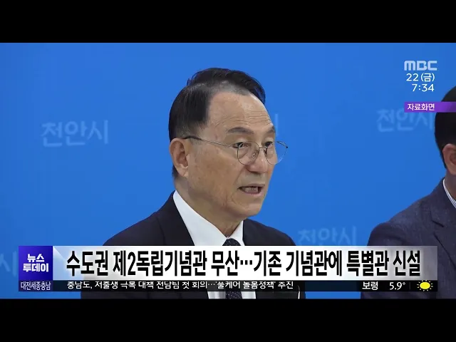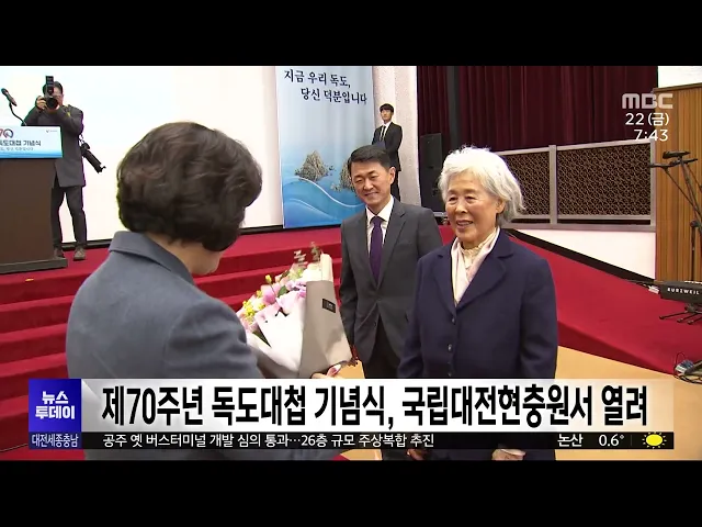 뉴스투데이 뉴스데스크뉴스투데이뉴스데스크 VOD(전체 다시보기)뉴스투데이 VOD(전체 다시보기)유튜브뉴스페이스북 뉴스카카오톡 뉴스인스타그램 뉴스 prev 2024.11.22 - 금요일 next 대전-충남 내후년 지방선거까지 행정통합 추진/투데이 ◀ 앵 커 ▶대전과 충남이 내후년 7월 출범을 목표로행정통합을 추진하겠다고 선언했습니다.정치권과 시·도민의 공감대를 형성하는 것이과제로 꼽히는 가운데, 세종, 충북과 함께 추진하는 충청광역연합에 ... 김광연 아산만 순환철도 조기 개통에 충남도 "베이밸리 가속도" 충남 천안, 아산, 당진 등과 경기도 평택을 타원형으로 연결하는 아산만 순환철도 조기 개통 기념행사가 아산 인주역에서 열렸습니다.김태흠 충남지사는 이 자리에서 "기존 노선을 활용하는 방식을 정부에... 김윤미 대전 326개 학교 불법 촬영기기 점검 '적발 없음' 대전지역 초·중·고교 등 326개 학교를 대상으로 벌인 불법 촬영기기 점검에서적발 사례가 없는 것으로 나타났습니다.대전시교육청은 경찰 등 유관기관과실시한 하반기 점검에서 화장실과 탈의실을 중점적... 김윤미 세종시의회 "세종시 지방채 발행 절차 부적절" 박란희 세종시의원이 올해 4차 추가경정예산안 심의 과정에서 시의 신규 지방채발행 절차가 부적절하다고 지적했습니다.박 의원은 "자체 재원 사업들이 갑자기 지방채 발행으로 전환된 것은 세수 추계의 ... 문은선 "숙소도 없는데.." 원설본부 김천 이전 강행/투데이 ◀ 앵 커 ▶대전에 있는 한국전력기술 산하 조직,원자로설계개발본부가 김천으로 이전을 시작했습니다.원설본부 직원 3백여 명 가운데70여 명은 김천 이전에 반발해 휴직 또는 이직에 나서는 등 원전 설계 ... 김태욱 수도권 제2독립기념관 무산..기존 기념관에 특별관 신설 국가보훈부와 경기도가 수도권에 건립을 추진했던 제2독립기념관 사업이 기존 천안에 있는 독립기념관 내 특별관을신설하는 방식으로 변경됐습니다.국회 정무위원회는 제2독립기념관으로 불리던가칭 국내... 김윤미 대전 시민 35% '도시철도 2호선 공사 기간 교통 분산 필요' 대전 도시철도 2호선 트램의 착공을 앞두고,시민들은 공사 기간에 교통 수요를 분산하는정책이 가장 필요하다고 생각하는 것으로나타났습니다.대전시가 시민 천9백여 명을 대상으로 트램 공사 기간 가장 ... 이승섭 대전에 난청인 커뮤니티센터 국내 최초 개소 한국난청인교육협회가 국내 최초로청각 장애인들의 원활한 소통을 돕는텔레코일존이 설치된 난청인 커뮤니티센터를대전시 문지동에 열었습니다.난청인 커뮤니티센터는 보청기나 인공와우를 착용한 청각 장... 이승섭 혈세 136억 요양시설 부의장 땅에?/투데이 ◀ 앵 커 ▶정부가 심각한 고령화에 놓인 농촌에 노인요양시설 확충 사업을 벌이고 있는데요.최근 홍성군이 136억 원의 혈세를 투입하는노인요양시설 대상지로 군의원 가족이 운영하는 사회복지법인을 선정... 김성국 대전소방본부, 폭행·부품 무단반출 의혹 간부 감찰조사 대전소방본부가 후배 직원을 상습적으로 폭행하고, 소방 지휘차 부품을 무단 반출해부당 이득을 챙긴 의혹을 받는 간부급 직원 두 명을 대상으로 감찰을 진행 중인 것으로 알려졌습니다.대전소방본부는 피... 김태욱 수자원공사 내부 성 비위 잇따라..직원 2명 중징계 한국수자원공사 소속 직원들의 성 비위 사례가 잇따라 관련 직원 1명이 파면되고, 또 다른 직원은 강등 조치되는 등 2명이 중징계를 받았습니다.공사 측은 산하 댐에서 근무하는 직원이 지난 3월부터 4개... 김지훈 중고 안심거래 사기 조직에 통장 빌려준 50대 구속 기소 대전지검이 중고 안심거래 가짜 링크를 이용한 신종 전화금융 사기에 조직에 통장을 빌려준 50대 남성을 사기 방조 혐의로 구속 기소했습니다.검찰에 따르면 해당 사기 조직은 지난 9월 초쯤 온라인 카페 ... 김태욱 교수들 이어 대학생들도 "이대로는 안 돼"/투데이 ◀ 앵 커 ▶대학가에서 정권을 비판하는 목소리가 들불처럼 번지고 있습니다.하야를 촉구하는 교수들의 시국선언에 이어 대학생들이 쓴 대자보가 붙기 시작했고,대통령 탄핵을 위한 실천단까지 생겨났습니다... 김윤미 대전현충원에서 '제70주년 독도대첩 기념식' 개최 국가보훈부와 독도의용수비대 기념사업회가국립대전현충원에서강정애 국가보훈부 장관과 시민 등 4백여 명이 참석한 가운데 제70주년 독도대첩 기념식을 개최했습니다.독도대첩은 지난 1954년 11월 21일,... 이승섭 경찰, 서천군수 부인에 명품백 전달 의혹 공무원 불송치 충남경찰청 반부패수사대가 서천군수 부인에게 명품가방을 건넨 의혹을 받던 서천군 팀장급 공무원에 대해 지난 15일 혐의 없음으로 불송치 결정을 내렸다고 밝혔습니다.앞서 지난 6월 국민신문고에는 서... 김태욱 공주 옛 시외버스터미널 개발 사업 첫 단추 15년 동안 방치된 공주시 옛 시외버스터미널 개발 사업이국가유산청의 심의와 세계유산 영향 평가를 통과하며, 첫 단추를 끼웠습니다.시는 해당 부지에 민간사업자를 유치해주상복합 아파트를 짓기로 하고... 이승섭 세종교육청, 저연차 공무원에 새내기 도약 휴가 신설 저연차 공무원, 이른바 'MZ공