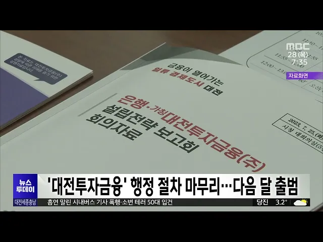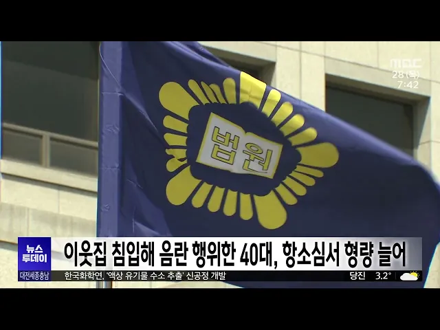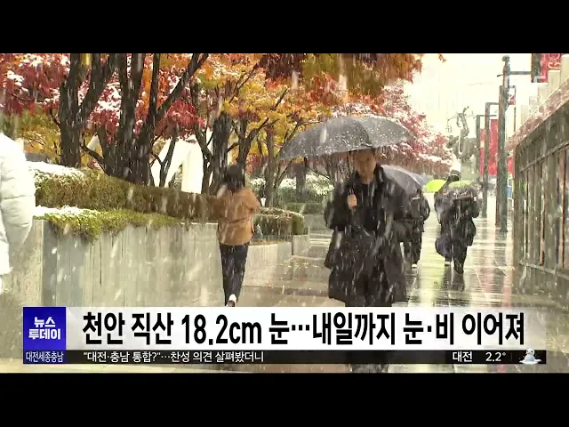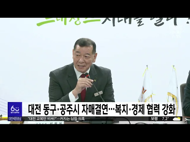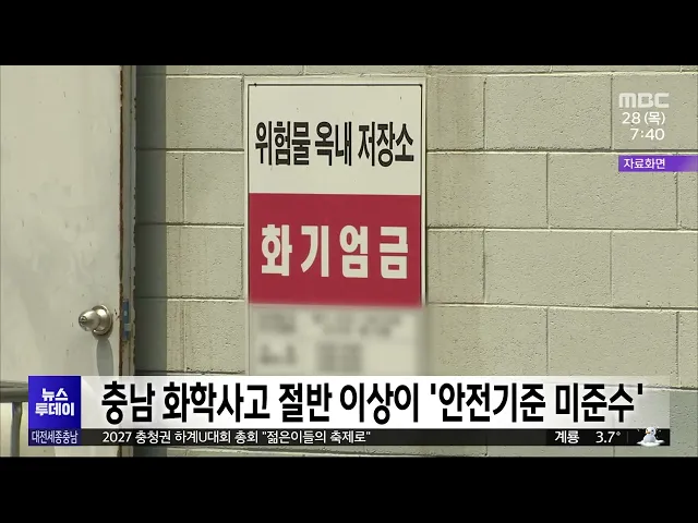 뉴스투데이 뉴스데스크뉴스투데이뉴스데스크 VOD(전체 다시보기)뉴스투데이 VOD(전체 다시보기)유튜브뉴스페이스북 뉴스카카오톡 뉴스인스타그램 뉴스 prev 2024.11.28 - 목요일 next 천안 직산 18.2cm 눈..내일까지 눈·비 이어져 현재 천안에 대설 경보가, 공주와 아산 등 충남 4개 시군과 세종에는 대설주의보가 내려진 가운데, 내일까지 눈이나 비가 이어지겠습니다.지금까지 천안 직산에 18.2cm의 눈이 내려 쌓이는 등 충남 북부 ... 김성국 대전-충남 행정통합, 기초단체 입장은?/투데이 ◀ 앵 커 ▶ 대전시와 충남도가 내후년 7월 출범을 목표로행정통합을 하겠다고 선언했죠. 각 기초자치단체는 이를 어떻게 바라보고 있을까요?대전MBC가 대전과 충남의 20개 기초단체에 행정통합에 대한 의견... 이승섭 2027 충청권 하계U대회 총회 "젊은이들의 축제로" 오는 2027년 충청권이 공동 개최할 하계세계대학경기대회 조직위원회가 어제 대전에서 2차 위원총회를 열고본격적인 대회 준비에 나서기로 했습니다.이번 총회에서 강창희 위원장은"전 세계 젊은이들이 꿈... 김윤미 대전 동구-공주시, 자매결연 체결 대전 동구와 공주시가 자매결연을 체결하고, 주민의 복지 향상과 경제적 이익을 위해다양한 분야에서 협력하기로 했습니다.두 기초단체는 자매결연을 계기로지역 생산품의 판로를 지원하고, 행정 정보와 ... 이승섭 대전시, 대전투자금융 행정 절차 마무리 대전시가 전국 최초의 지방정부 공공 투자기관인대전투자금융의 행정절차를 마치고본격적인 운영 준비에 들어갔습니다.시는 금융감독원으로부터 대전투자금융의 신기술사업금융업 등록을 마쳤다는 통보를... 이승섭 교복 카르텔.."대전이 10만 원 더 비싸"/투데이 ◀ 앵 커 ▶물가 때문에 걱정이 큰 요즘, 중·고등학생을 둔 가정이라면 교복값도 적지않은 부담이죠.대전에서는 학부모 부담을 덜어주기 위해시와 교육청이 반반씩 부담해서 교복 값으로30만 원을 지원하고 ... 윤소영 시내버스 운전기사에 소변테러, 폭행한 50대 입건 달리는 버스 안에서 흡연하다 이를 제지하는 버스 기사에게 소변을 보고 폭행까지 한 50대가 경찰에 붙잡혔습니다. 대전 서부경찰서는지난 19일 대전시 용문동에서 주행 중이던버스 안에서 담배를 피우다... 윤소영 대전노동청, 노동법 위반 사업장 6백여 곳 적발 대전고용노동청이 지역 내 사업장 800여 곳을 근로 감독한 결과, 전체의 80%에 해당하는 600여 곳에서 법 위반 사실이 적발됐습니다.주요 위반 사항은 임금 체불, 근로계약서 기준 위반, 임금명세서 작성 ... 윤소영 충남 화학사고 절반 이상이 안전기준 미준수 올해 충남에서 발생한 화학사고 가운데 절반 이상은 안전기준을 제대로 지키지 않아 발생한 것으로 나타났습니다. 충남도와 화학물질안전원에 따르면 최근 도내에서 발생한 화학사고는 지난해 15건이었고,... 최기웅 군청 간부 공무원 직원 성추행 논란..'직위해제'/투데이 ◀ 앵 커 ▶ 금산군청 간부 공무원이 부하 여직원을 성추행한 혐의로 수사를 받고 있습니다. 최근 직위해제된 해당 간부 공무원은 그런 사실이 없다며 결백을 주장하고 있습니다. 김태욱 기자입니다.◀ 리포... 김태욱 이웃집 침입해 음란 행위한 40대 항소심서 형량 늘어 대전지법 형사항소3부는 지난해 5월부터 4차례에 걸쳐 아래층에 사는 여성의 집에 침입해 음란 행위를 한 혐의로 기소된 40대에게 징역 8개월을 선고한 원심을 깨고,징역 1년을 선고했습니다.2심 재판부는... 윤소영 천안 서북~성거 우회도로 개통 2개월 "교통 분산 효과" 천안 서북~성거 국도 대체 우회도로가 지난 9월 개통된 이후 천안 북부지역 일대 교통 흐름이 개선된 것으로 나타났습니다.천안시는 4.4km 구간의 우회도로 개통으로 하루 평균 1만 2천여 대의 차량이 지... 김윤미 코레일, 철도차량 핵심 부품 10종 국산화 한국철도공사, 코레일이 철도차량의 핵심 부품 10가지를 국산화했다고 밝혔습니다.이번에 개발한 부품은 KTX-이음과 도시철도 전동차, 트램 등에 쓰이는 부품 10가지로, KTX-이음의 부품 국산화율은 90% ... 이승섭 내년에 기차 타고 보령 여행하면 열차운임 50% 할인 보령시와 한국철도공사는 '인구감소지역 철도관광 활성화' 업무협약을 맺고 내년에 기차를 타고 보령 관광지를 여행하면열차운임을 절반으로 할인해 주기로 했습니다.이에따라 내년 1월부터 관광객이 보령... 조형찬