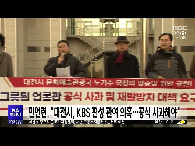 뉴스투데이 뉴스데스크뉴스투데이뉴스데스크 VOD(전체 다시보기)뉴스투데이 VOD(전체 다시보기)유튜브뉴스페이스북 뉴스카카오톡 뉴스인스타그램 뉴스 prev 2024.11.29 - 금요일 next "수업 준비 어쩌나" 오락가락 디지털교과서/투데이 ◀ 앵 커 ▶내년 새학기 도입될 AI 디지털교과서 선정 결과가 오늘 발표됩니다.가뜩이나 늦어진 결정에 도입 교과목도조정 가능성이 거론되면서 학교 현장은혼란스럽습니다.문은선 기자입니다.◀ 리포트 ▶AI ... 문은선 보령 대천사격장 주변 완충공간 마련?주민 이주·보상 지원 사격 훈련에 고통받던 보령 대천사격장 인근 주민들에 대한 지원이 이뤄집니다.국민권익위원회는 대천사격장 인근 갓배마을 주민들을 위한 현장조정회의를 열어 공군 측이 주민 피해를 줄이기 위해 내년 1... 김지훈 새미래민주당 지도부 대전 방문.."제2의 DJP연합정권 제시" 새미래민주당 전병헌 대표와박영순 대전시당위원장 등 당 지도부가대전시의회에서 기자 간담회를 열어충청권에서 제2의 DJP 연합정권의 비전을제시하겠다고 밝혔습니다.새미래민주당 지도부는 충남 내포신... 이승섭 세종 빛축제 시민주도로 다음 달 개막 세종시의회의 예산 삭감으로 폐지 위기에 놓인 세종 빛축제가 시민주도로 다음 달 열립니다.지역 소상공인과 종교계 등 시민단체로 구성된 빛축제 시민추진단은 다음 달 13일부터 한 달간 이응다리 일원에... 문은선 교복카르텔-"단체 담합 의심되지만"...손 놓은 공정위/투데이 ◀ 앵 커 ▶교복 업체의 담함 의혹, 교복카르텔을 연속보도해 드리고 있습니다.대전뿐 아니라 세종시에서도 사실상 지역 내 모든 교복 업체가 담합에 가담한 정황이 드러났습니다.올해 공정위가 세종 지역 ... 윤소영 대전시 'KBS 방송 편성 관여 의혹'..시민단체 공식 사과 요구 대전·충남 민주언론시민연합이 기자회견을 열어, "스타벅스 로스터리 매장 유치 중단에 대한 대전시의 공식 발표 전 KBS가 관련 보도를 하려 하자 보도 연기 요청을 하고 받아 들여지지 않자 강력한 유감... 고병권 대전서 1천억 원대 도박사이트 적발..204명 검거 대전경찰청 형사기동대가 판돈 천억 원이 넘는 온라인 도박사이트 개설해 수억 원을 챙긴 혐의로 운영진 13명과 도박 참가자 191명 등 204명을 적발해 11명을 구속했습니다.도박사이트 총책인 50대는 지... 김지훈 세종서 학부모가 초등 교실 들어가 교사에 욕설 학부모가 수업 중이던 초등학교 교실에 들어가 난동을 부리고 이를 제지하던 교사에게 욕설을 퍼부어 학교 측이 법적 대응에 나섰습니다.세종시교육청 등에 따르면, 지난 22일 세종 모 초등학교 학부모가... 김지훈 "8부 능선 넘었다"...충남아산, 대구 격파/투데이 ◀ 앵 커 ▶K리그2 충남아산FC가 대구FC와의K리그 승강플레이오프 1차전에서난타전 끝에 한골차 승리를 거뒀습니다. 홈경기에서 화끈한 공격력을 과시한 충남아산은 1부 리그 승격에 유리한 고지를 차지했습... 이승섭 옛 충남도청사 향나무 무단 제거한 대전시 공무원 벌금형 대전지법 형사 6단독 김지영 판사가 지난 2021년 옛 충남도청사를 리모델링한다며 소유주인 충남도청의 허락도 없이 담장을 허물고 수령 수십 년의 향나무 100여 그루를 베어버린 혐의로 기소된 대전시 간... 김지훈 서천군, 내년 지방채 200억원 발행?"재난 복구" 서천군은 재난 복구를 위해 내년 200억 원 규모의 지방채를 발행할 계획이라고 밝혔습니다.이는 최근 국가 세입 감소로 군 재정의 30%를 차지하는 교부세가 714억 원 준데다, 서천특화시장 화재와 집중호... 조형찬 충남인권센터 "주거 취약 가구 20% 재난 시 자력 대피 어려워" 충남도 인권센터가 주거 환경이 취약한 5백 가구를 조사한 결과, 전체의 20%가재난 발생 때 자력으로 대피하기 어려운것으로 분석됐습니다.또 조사 대상 가운데 65살 이상 고령자가 74%에 달했고, 1인 가... 김지훈 세종시, 내년 노인 일자리 참여자 4천2백여 명 모집 세종시가 노인 일자리 사업을 확대해내년에 4천 2백여 명을 모집하기로 하고, 다음 달 2일부터 신청을 받습니다.노인 일자리는 공익활동 사업 2천8백여 명,역량 활용 사업 9백여 명 등으로, 공익활동 사업... 김윤미 ETRI, 한국어 기반 생성 언어모델 개발 한국전자통신연구원이 한국어 기반의 생성 언어모델을 개발해 일반에 공개했습니다.'생성 언어모델'은 사용자 질문에 따라자연스러운 대화나 콘텐츠를 만들어내는시스템으로, 연구팀은 인공지능이 학습한... 고병권 신세종빛드림발전소 준공..597MW 전기 공급 한국남부발전 신세종 빛드림발전소가 세종시 6생활권 누리동에서 준공행사를 열고 본격 가동을 알렸습니다.신세종빛드림발전소는 세종 지역에 전기와 열을 공급하는 두 번째 열병합발전소로, 액화천연가스... 김윤미