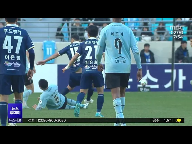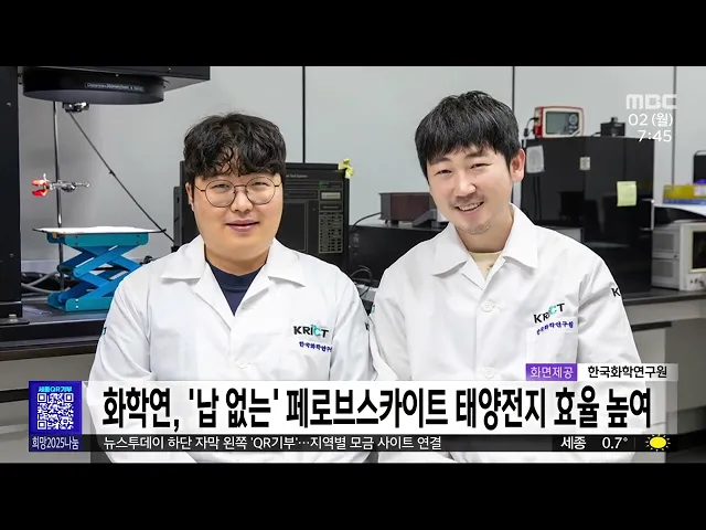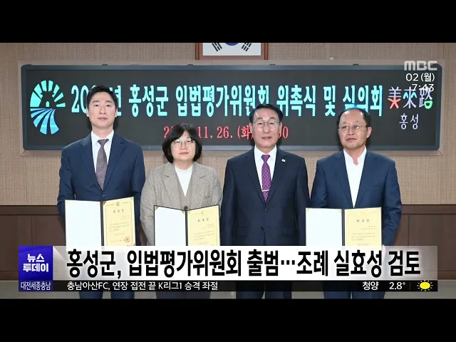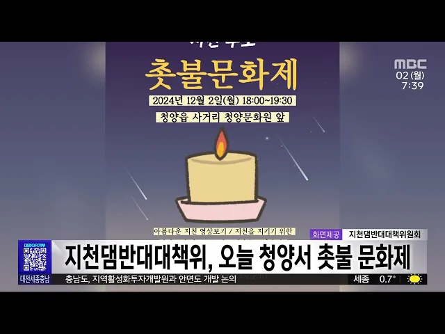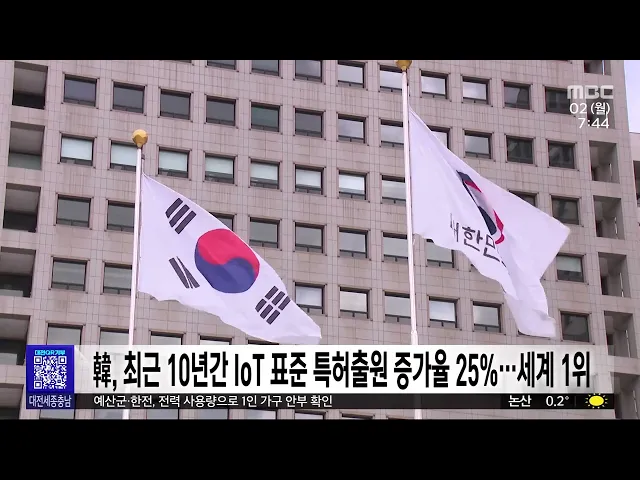 뉴스투데이 뉴스데스크뉴스투데이뉴스데스크 VOD(전체 다시보기)뉴스투데이 VOD(전체 다시보기)유튜브뉴스페이스북 뉴스카카오톡 뉴스인스타그램 뉴스 prev 2024.12.2 - 월요일 next 충남아산FC 대구에 패배..승격 좌절/투데이 ◀ 앵 커 ▶프로축구 충남아산FC가 대구FC와의K리그 승강플레이오프에서 패해1부 리그 승격이 좌절됐습니다.하지만, 충남아산은 올 시즌 K리그2에서준우승을 차지하고, 1부 리그 팀을 상대로도대등한 경기를... 이승섭 대전·세종, 배출가스 5등급 차량 운행 전면 제한 내년 3월 말까지 미세먼지 계절관리제시행으로 대전과 세종에서 배출가스 5등급 차량의 운행이 전면 제한됩니다.주말과 공휴일을 제외한 평일 오전 6시부터 오후 9시까지 해당 차량 운행이 제한되고주요 ... 박선진 12월 지역 중소기업 전망지수 68.7⋯전월 대비 3.3p↓ 내수 침체 장기화로 지역 중소기업의 경기전망지수가 2개월 연속 떨어지고 있습니다.중소기업중앙회 대전세종지역본부가 지역 중소기업 252곳을 대상으로 조사한 '12월 중소기업 경기 전망 조사'에 따르면... 문은선 대전시, 대덕특구 건물 높이 '7층 규제' 완화 건의 정부가 첨단산업 발전을 위한 규제 정비에 나선 가운데 대덕연구개발특구의 '층수 제한 규제'도 풀릴지 관심이 모아지고 있습니다.대전시는 "최근 대덕특구의 건폐율과 용적률이 높아지긴 했지만 민간기업... 문은선 지천댐반대대책위, 오늘 저녁 촛불 문화제 진행 정부의 청양부여 지천 일대 기후대응댐 건설에 반대하는 지천댐반대대책위원회가오늘 저녁 6시부터 청양문화원 앞에서촛불 문화제를 엽니다. 이번 행사에서는 '사랑해요 지천, 지켜줄게 지천'을 주제로 시... 박선진 세종시 감사위원회, 채용실태 전수조사 15건 지적 세종시 감사위원회가 지방공기업 등 산하 공공기관 10곳의 채용 실태를 전수 조사한 결과 모두 15건이 지적됐습니다.시 감사위는 특히 시장애인체육회의 경우지난해 사무처 직원 채용 당시감독부서와 사전... 박선진 대전노동청, 상습 임금 체불 128곳 근로 감독 착수 대전지방고용노동청이 상습적으로 임금을 체불한 기업 128곳을 대상으로 근로 감독에 착수합니다.노동청은 익명 제보를 토대로 고의 체불이의심되는 20곳을 대상으로 기획감독을 실시하고 고의 체불이 확... 박선진 '홍성 광천토굴새우젓가공업' 국가중요어업유산 지정 홍성 광천토굴새우젓가공업이제15호 국가중요어업유산으로 지정됐습니다. 광천토굴새우젓가공업은 자체적으로 수분을 생성하는 풍화암 재질의 친환경 토굴에서 새우젓을 숙성·발효시키는 가공업으로,해양... 박선진 서천 한산모시 후계인력 4명 추가 배출 유네스코 인류무형문화유산인 한산 모시 짜기후계 인력 4명이 추가로 배출됐습니다.서천군은 지난 4월부터 7개월 동안 한산모시조합 등과 한산모시 직조 전체 과정에 대한 교육을 진행해 관련 과정을 이수... 문은선 홍성군, 입법평가위원회 출범⋯조례 실효성 검토 홍성군이 조례의 적정성과 실효성을 강화하기 위해 전문가 등으로 구성된 입법평가위원회를 충남 기초단체 가운데 처음으로 출범했습니다.입법평가위원회는 조례의 시행 효과와 목적 달성 여부 등을 체계... 문은선 예산군·한전, 전력 사용량으로 1인 가구 안부 확인 예산군이 한국전력공사와 업무협약을 맺고전력 사용량으로 1인 가구 안부를 확인하는서비스를 실시합니다.이에 따라 관내 140여 1인 가구를 대상으로 전력 사용 유형을 인공지능으로 분석해 이상 징후가 ... 문은선 韓, 최근 10년간 IoT 표준 특허출원 증가율 25%⋯세계 1위 최근 10년간 한국의 사물인터넷 표준 특허출원 증가율이 세계에서 가장 높았던 것으로나타났습니다.특허청이 지난 2012년부터 10년간 한국과 미국, 일본 등 주요 5개국 사물인터넷 표준특허를 분석한 결과... 문은선 충남도 지역활성화투자개발원 창립… 현안 탄력 기대 충남도가 최근 창립한지역활성화투자개발원과 함께안면도 개발 등 도내 현안 사업 해결에나섭니다.도는 개발원과 안면도 관광지 3·4지구 조성,충남국제컨벤션센터 건립 등 14개 관광?산업단지?지역개발 ... 박선진 화학연, 납 없는 페로브스카이트 태양전지 효율 높여 독성 금속인 납을 빼고친환경적인 주석을 주원료로 만든 페로브스카이트 태양전지의 효율과 안전성을 높이는 기술을 국내 연구진이 발표했습니다.한국화학연구원 연구팀은차세대 태양전지로 꼽히지만 효율... 박선진