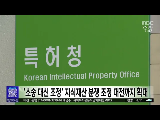 뉴스투데이 뉴스데스크뉴스투데이뉴스데스크 VOD(전체 다시보기)뉴스투데이 VOD(전체 다시보기)유튜브뉴스페이스북 뉴스카카오톡 뉴스인스타그램 뉴스 prev 2024.12.26 - 목요일 next 대전 오정동·대흥동 도시재생사업 공모 선정 대전시 오정동과 대흥동이 올 하반기국토교통부 도시재생 공모사업에 선정됐습니다.오정동 도시재생 사업은 현 대덕구청사 부지에 산업과 주거, 문화,복지 기능이 융합된 복합 혁신 거점을조성하는 사업으... 문은선 '소송 대신 조정' 지식재산 분쟁 조정 대전까지 확대 법원에 계류 중인 지식재산 분쟁을 조정을 통해 해결하는 '법원 -조정 연계제도'가 서울, 수원에 이어 대전까지 확대됩니다.특허청과 대전지방법원 업무협약에 따라특허청 산업재산권 분쟁조정위원회가 운... 문은선 세종시 산단 정주여건 개선..버스 노선·기숙사비 지원 확대 세종시가 산업단지 근로자의 정주여건개선에 나섭니다.시는 북부권 산단 근로자의 출퇴근 불편을 줄이기 위해 산단을 경유하는출퇴근 시간대 버스 992번 노선을 신설해내년 상반기 운행을 시작하고읍·면지... 문은선 충남 모빌리티 특화도시 추진..7개 시군 후보지 충남도가 미래 모빌리티 환경 변화를반영한 특화도시 조성을 추진합니다.도는 관련 연구용역을 통해천안, 아산, 보령, 당진, 홍성, 예산,태안 등 7개 시군을 모빌리티 특화도시후보지로 정하고 편리한 이... 문은선 충남도민 음주·흡연율 줄고 걷기 실천 늘어 충남 도민의 음주와 흡연율은 줄고걷기 실천은 증가한 것으로 나타났습니다.질병관리청이 발표한 올해 지역사회건강조사결과를 보면, 충남지역 현재 흡연율은지난해보다 1.9%포인트 하락한 20.3%,남자 흡... 문은선 충남 가로림만·천수만 저수온 위기경보 '주의' 충남 가로림만과 천수만 등 서해안에저수온 위기경보가 내려졌습니다.해양수산부는 서해와 남해서부 연안을 비롯해 충남 가로림만과 천수만, 전남 함평만 등 내만에 저수온 위기경보 '주의' 단계를 발령했... 문은선 대전 중고교에 청소년 사이버도박 예방 상담소 운영 대전시교육청이 경찰청, 도박문제예방센터와 함께 청소년 사이버도박 문제 해결을 위한'리본 상담소'를 중고등학교에서 운영합니다.상담은 학생이 자율적으로 신청할 수 있고요청이 있을 경우 경찰관과 전... 문은선 대전 첫 공립 온라인학교 개교...'온길 캠퍼스' 구축 대전 첫 공립 온라인 학교가 문을 열었습니다.온라인 학교는 희망 학생이 적거나교사 수급이 어려워 단위 학교에서 개설이어려운 선택·심화 과목 등을 온라인상에개설해 학생의 다양한 선택권을 보장하기... 문은선 전국시도교육감협 "AI 교과서 '교육자료' 법안 보류해야" AI 디지털교과서를 교과서가 아닌교육자료로 규정하는 초중등교육법 개정안이국회 본회의 상정을 앞둔 가운데 전국시도교육감들이 해당 법안을 보류해야한다고 주장했습니다.전국시도교육감협의회는 건의... 박선진 청양군, 전국 최초 '경로당 무상급식' 추진 청양군이 전국에서 처음으로경로당 무상급식을 추진합니다.군은 내년 상반기 경로당 10곳을 시범사업 대상지로 정해 매주 밀키트, 반찬 등 부식비를 지원하고 하반기에는 먹거리 종합타운에 도시락 가공공... 문은선 대전 대덕구, 내년부터 산모회복비 50만 원 지원 대전 대덕구가 내년부터 산모회복비 50만 원을 지원합니다.대상은 내년 1월 1일 이후 출산하고대덕구에 출생 등록을 마친 출산 산모로,기존 출생축하금 50만 원에 더해병의원, 산후조리원 비용 등을출산일... 문은선 대전 청년부부 결혼장려금 첫 지급..만여 명 신청 결혼 초 경제적 부담을 덜고지역 정착 지원을 위해 도입한 대전시 청년부부 결혼장려금이 오늘부터 전용계좌를 통해 순차적으로 지급됩니다.대전에 주소를 둔 18~39살 이하청년부부를 대상으로 하는 결혼... 문은선 기부로 배우는 배려, '착한아이 나눔캠페인'/투데이 ◀ 앵 커 ▶ 최근 정국 혼란과 경기침체 장기화로 이웃돕기 성금 모금이 예년 같지 않다는데요.아이들에게 나눔과 배려의 의미를 어릴 때부터 심어 줄 수 있는 이런 기부는 어떨까요?박선진 기자입니다.◀ 리... 박선진 '세종시' 건설 기록 '세계기록유산' 추진/투데이 ◀ 앵 커 ▶우리나라 최초의 행정중심복합도시이자 특별자치시로 출범한 세종시는균형발전이라는 특별한 목적을 뿌리로 건설된 유례없는 신도시인데요.이런 세종시의 건설 과정을 담은 기록에 대한 세계기록... 김윤미
