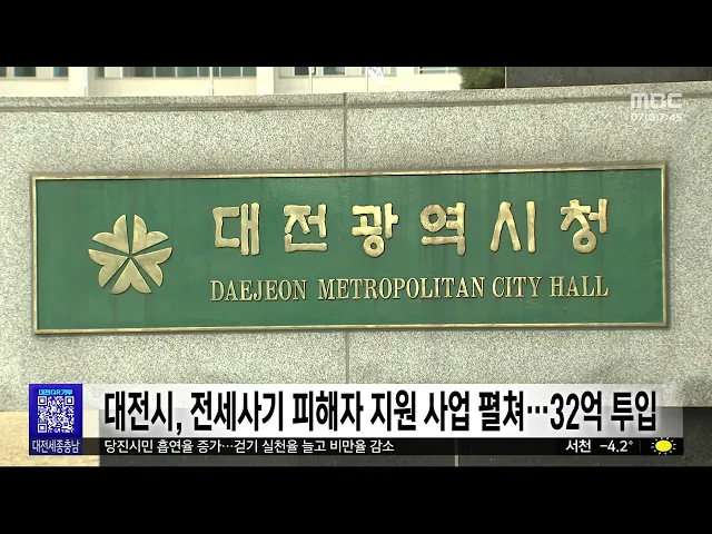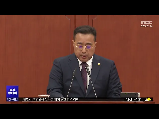 뉴스투데이 뉴스데스크뉴스투데이뉴스데스크 VOD(전체 다시보기)뉴스투데이 VOD(전체 다시보기)유튜브뉴스페이스북 뉴스카카오톡 뉴스인스타그램 뉴스 prev 2025.1.7 - 화요일 next 대전시, 전세사기 피해자 주거 안정 지원 사업 대전시가 올해 32억 원의 예산을 편성해전세사기 피해자의 주거 안정을 위한지원 사업을 펼칩니다.시는 특별법상 전세사기 피해자로 인정받은대전 지역 임차인에게 주거 안정 지원금과이사 비용을 각각 백... 이승섭 대전시, 인플루엔자 예방 접종 당부 대전시가 "전국적으로 인플루엔자, 즉 독감 환자가 급증하고 있다"며,"어르신과 어린이 등 감염 취약 계층을 중심으로 예방 접종을 서둘러 달라"고 당부했습니다.지난달 마지막 주를 기준으로전국의 독감 ... 이승섭 세종 3개 기업, 국제전자제품박람회 CES 첫 참가 세종 지역 3개 기업이 처음으로미국 라스베이거스에서 열리는 세계 최대 규모의 전자제품 박람회인 CES에 참가합니다.세종시는 오늘(7)부터 나흘간 개최되는 올해 CES 박람회에 인공지능을 활용한 통합 수... 김윤미 대전교육청, 월평동 성천초·성룡초 2027년 통폐합 추진 대전시 월평동에 있는 전교생 58명의 소규모 학교인대전 성천초가 오는 2027년 인근의 대전 성룡초와 통합됩니다.대전시교육청은 성천초와 성룡초통폐합 계획을 오는 27일까지 행정예고했고지난달 실시한 ... 문은선 충남도, 새해 지역내총생산 3.0%대 성장 목표 충남도가 새해 지역 내 총생산 성장 목표를 3%로 제시했습니다. 이를 위해 올해 기업 투자 유치 7조 원, 외자 유치 7천억 원 등 총 40조 원의 투자 유치를 통해 경제에 활력을 불어넣기로 했습니다. 또 중... 최기웅 대전시, 설 성수식품 판매업소 점검..적발업체 공개 대전시가 설 명절을 앞두고, 오는 10일까지 명절용 식품을 조리하거나 판매하는 업소 122곳을 대상으로 식품 위생 상태를 민관 합동으로 점검합니다.시는 신고 없이 식품을 제조하거나소비 기한이 지난 제... 이승섭 '구조 중 순직' 산림청 공중진화대원 대전현충원 안장 설악산에서 낙상환자를 헬기로 구조하다 순직한 고 이영도 산림청 공중진화대원이대전현충원에 안장됐습니다.고 이영도 대원은 설악산 수렴동 계곡 인근에서낙상환자를 구조한 뒤 헬기에 오르던 중 추락해... 김윤미 보호관찰소서 분신 시도 50대 징역 15년 구형 검찰이 지난 8월, 천안준법지원센터에서보호관찰 업무에 불만을 품고 자신의 몸에 불을 질러, 18명을 다치게 하고 3억 원의 재산 피해를 낸 혐의로 기소된 50대에게 징역 15년을 구형했습니다.검찰은 대전... 김성국 충남도의회 "신뢰받는 의회 구현..의전 관행 없애겠다" 충남도의회가 새해 민생 회복을 위한 의정활동을 통해 신뢰받는 의회로 거듭나겠다고 밝혔습니다. 또 올해 종합청렴도 1등급 달성을 목표로 지난해 청렴평가에서 부족했던 지표를 보완하겠다며 관행적인 ... 최기웅 대전시의회 제1부의장에 김영삼 의원 선출 고 송대윤 대전시의원의 별세로 공석이 된 대전시의회 제1부의장에국민의힘 김영삼 의원이 선출됐습니다.김 부의장은 소통과 협치를 강화한 협력 리더십을 강조하고,"의회의 독립과 자율성을 강화하기 위... 이승섭 청와대 복귀 대신 '세종'? "대통령실 완전 이전"/투데이 ◀ 앵 커 ▶윤석열 대통령 탄핵 국면에서 대통령 집무실 세종 이전이 뜨거운 관심거리로 떠올랐습니다.조기 대선이 치러질 경우, 용산 대통령실이 청와대로 복귀하는 대신,제2 집무실이 아닌 완전한 형태로 ... 김윤미 내란 여파에 치솟은 환율..밥상물가 '비상'/투데이 ◀ 앵 커 ▶ 12·3 내란 사태 여파로 환율이 고공행진을 하면서소비자 물가 부담이 커지고 있습니다.특히 지난해에 이어 과일, 채솟값이크게 올라 새해에도 밥상 물가에 비상이 걸렸습니다.문은선 기자가 보... 문은선 서산 캠핑장서 부자 참변..."가스 중독 추정"/투데이 ◀ 앵 커 ▶주말 나들이 겸 캠핑을 떠난 50대 아버지와 10대 아들이 텐트에서 숨진 채 발견됐습니다.경찰은 이들 부자가 텐트 안에서 휴대용 난로를 쓰다 일산화탄소에 중독된 것으로 보고 있습니다.윤소영 ... 윤소영 "대통령 수사 중단해야" 충청권 시도지사 주도/투데이 ◀ 앵 커 ▶이렇게 이장우 대전시장이 대전MBC에 날을 세운 건 국민의힘 시도지사협의회가 내놓은 입장문이 발단이었습니다.이들은 윤석열 대통령에 대한 수사와체포 영장을 중단해야 한다고 주장했는데요.... 김성국 "MBC에는 답을 안 하겠다"..대전시장 '입틀막' 언론관/투데이 ◀ 앵 커 ▶"MBC에는 답을 안 하겠다. 왜곡할 텐데."이장우 대전시장이 신년 기자회견에서대전MBC 기자의 질문에 내놓은 답변입니다.12·3 내란 당시 자신의 행적을 집요하게 물은 대전MBC 취재진에게 불편한... 이승섭