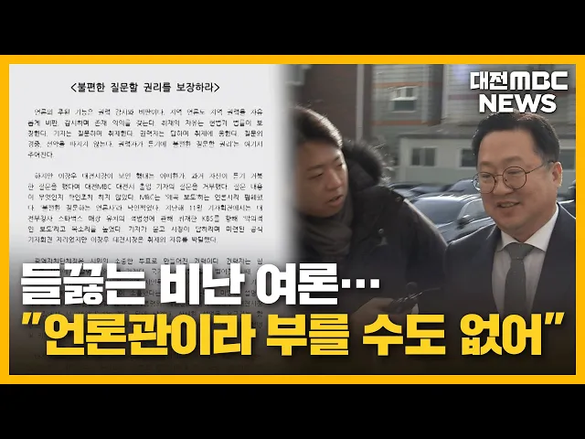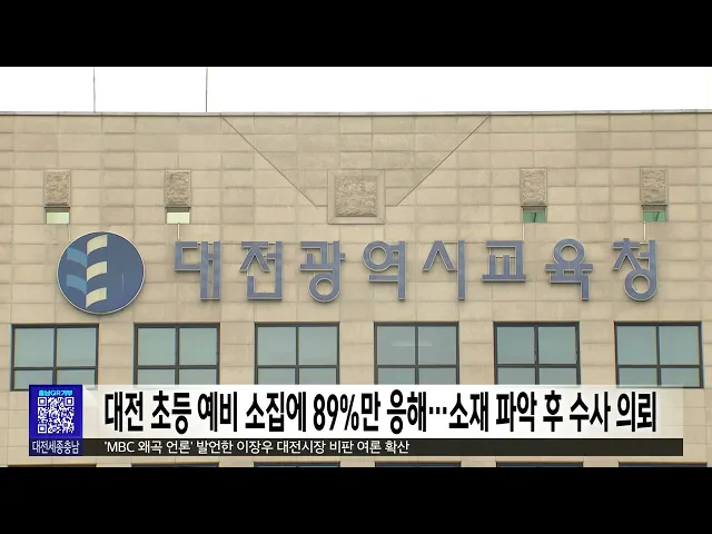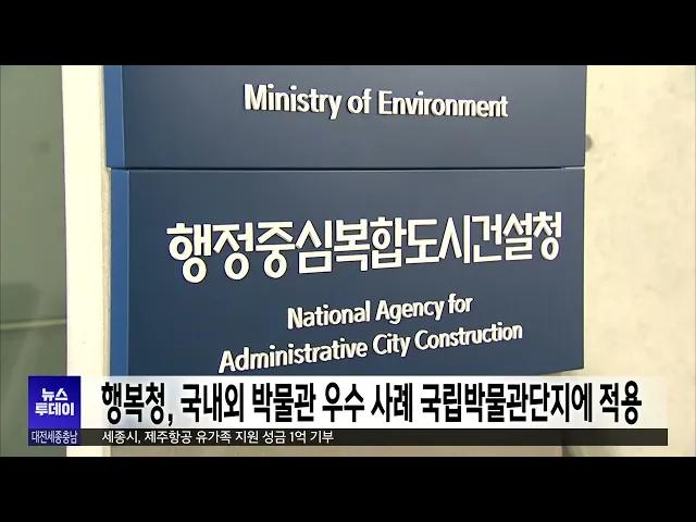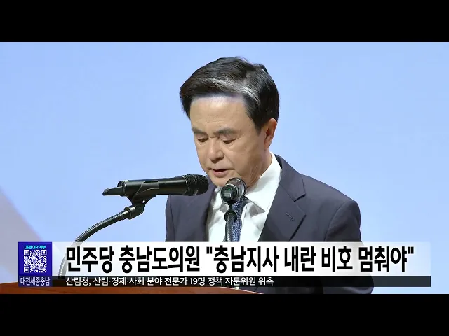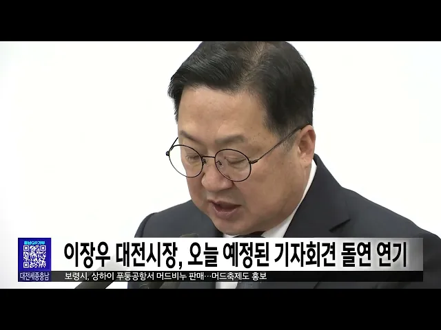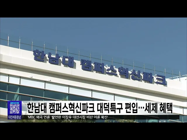 뉴스투데이 뉴스데스크뉴스투데이뉴스데스크 VOD(전체 다시보기)뉴스투데이 VOD(전체 다시보기)유튜브뉴스페이스북 뉴스카카오톡 뉴스인스타그램 뉴스 prev 2025.1.9 - 목요일 next 한남대 캠퍼스혁신파크 대덕특구 편입..세제 혜택 캠퍼스 안의 산업단지로 주목받는한남대 캠퍼스혁신파크가 대덕연구개발특구로 지정·고시됐습니다.이번 대덕특구 편입으로 연구소기업과 첨단기술기업의 경우 법인세 3년, 재산세 최대 7년간 면제 등세제 ... 문은선 세종시, 올해 투자 유치 3조 원 목표 세종시가 시정 4기 들어 역대 가장 많은 2조 3900여 억원의 투자 유치를 했다며올해 3조 원 달성을 목표로 세웠습니다.시는 경제산업국 주요업무 추진계획브리핑에서 매달 기업을 방문하는두드림 데이를 ... 문은선 행복청, 국내외 박물관 우수 사례 국립박물관단지 적용 행정중심 복합도시건설청이 현재 세종시에 조성 중인 국립박물관단지의 미래 발전 방향을 모색하는 사례 연구에 집중합니다.건설청은 미국 워싱턴 D.C의 스미스소니언 박물관단지 등 국내외 우수 박물관과... 문은선 세종시, 제주항공 유가족 지원 성금 1억 기부 세종시가 제주항공 여객기 참사 피해 유가족 지원을 위해 구호지원금 1억 원을 전국재해 구호협회에 지정 기탁했습니다.구호지원금은 시 재해구호기금을 활용해마련했고, 기금은 참사 피해자와 유가족의경... 문은선 민주당 충남도의원 "김태흠 충남지사 내란 비호 멈추고 도정 집중하라" 민주당 소속 충남도의원들이 성명을 내고 윤석열 대통령에 대한 체포영장 중단과 탄핵소추안 재의결을 요구한 국민의힘 시도지사 협의회를 규탄했습니다.민주당 도의원들은 "내란 비호 행위는 내란 동조"... 이승섭 이장우 대전시장, 오늘 예정된 기자회견 돌연 연기 'MBC 왜곡 언론' 발언 파문으로 비난에 휩싸인 이장우 대전시장이 오늘 예고했던 소상공인과 자영업자 지원 대책과 관련한 기자 회견을 돌연 연기했습니다.대전시는 충남도와 함께 추진하는 지원 대책에 ... 이승섭 충남 23개 학교 운동장서 프탈레이트 초과 검출 충남의 23개 학교 운동장에서 국가 표준치를 초과한 유해성 물질, 프탈레이트가 검출됐습니다.충남교육청이 지난해 10월부터 두 달 동안 전문기관에 의뢰해 도내 학교 운동장을 검사한 결과, 초등학교 11... 김지훈 대전시, 올해 아파트 7천여 가구 공급 대전시가 올해 아파트 14개 단지,7천여 가구를 공급합니다.공급 방식으로는 민간 건설이 3천7백여 가구,공공주택이 2천여 가구에 해당하고,올해 입주는 만 2천여 가구가 예정돼 있습니다.대전시는 올해 아... 이승섭 내일까지 최대 15cm 눈...낮 기온 '영하 5도' 맹추위 밤사이 많은 눈이 오면서 현재 태안과 보령 등 충남 서해안 시·군에는 대설주의보가, 공주와 논산 등 내륙을 중심으로 대설 예비특보가 내려져 있습니다.지난 7일부터 누적 적설량은 서천이 9.5cm로 가장 ... 윤소영 은둔형 외톨이 급증..."혼자 힘들어 마세요"/투데이 ◀ 앵 커 ▶집 밖에 나가지 않고 사람과의 만남을 꺼리는 은둔형 외톨이가 사회적 문제로 대두되면서지자체도 해법 마련에 나섰습니다.은둔 생활 기간과 정도에 따라 달리 접근하는 등 섬세한 정책을 펴는게... 김광연 "직원 선물로 5백만 원"...업무추진비 몰아쓰기/투데이 ◀ 앵 커 ▶지방자치단체 사업과 부서 운영을 지원하기 위한 경비를 업무추진비라고 부릅니다.그런데 일부 지자체가 연말을 틈타 이 예산을 부적절하게 사용한 사실이 드러났습니다.직원 선물을 사야한다며 ... 윤소영 들끓는 비난 여론…"언론관이라 부를 수도 없어"/투데이 ◀ 앵 커 ▶"답을 해도 왜곡할 것"이라며 대전MBC 취재진의질의를 거부한 데 이어 왜곡의 의미를 묻자반말로 날을 세운 이장우 시장.이 시장에 대한비판 여론이 거세지고 있습니다.언론관이라고도 부를 수 ... 박선진 대전 초등 예비 소집에 89%만 응해...소재 파악 후 수사 의뢰 대전시교육청은 2025학년도 초등학교 신입생 예비 소집 결과 취학 예정자의 89%가 참여한 것으로 집계했습니다.예비 소집 대상은 2018년생과 지난해미취학 아동, 2019년생 조기 입학 신청아동 등으로, 예... 문은선
