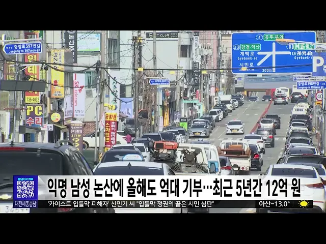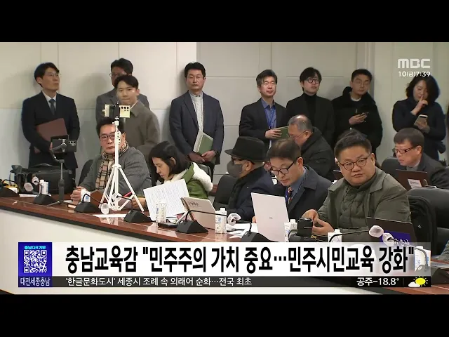 뉴스투데이 뉴스데스크뉴스투데이뉴스데스크 VOD(전체 다시보기)뉴스투데이 VOD(전체 다시보기)유튜브뉴스페이스북 뉴스카카오톡 뉴스인스타그램 뉴스 prev 2025.1.10 - 금요일 next 순천향대천안병원, 오는 5월 1천 병상 규모 새 병원 개원 순천향대 부속 천안병원 새 병원이 오는 5월 7일 개원합니다.순천향병원 측은 현 병원 북측 인접 부지에 지하 5층·지상 15층, 천 병상 규모로 지어지는 새 병원이 5월 개원을 위한 공사를 마치고, 시운전... 조형찬 '탑 위의 탑' 공주 마곡사 오층 석탑 '국보' 승격 탑 위에 탑을 쌓은 듯한 독특한 형태로고려 후기에 조성된 것으로 추정되는 '탑 위의 탑' 공주 마곡사 오층 석탑이 국보로 승격됐습니다. 국가유산청은 중국 원나라 등에서 유행했던 양식을 재현하고, 제... 조형찬 익명의 남성 논산시에 올해도 억대 기부...최근 5년 간 12억 원 성금 지난 2021년부터 연말연시 논산시에 억대 기부금을 내는 남성이 올해도 사회복지공동모금회 통장을 통해 1억9천2백만 원의 성금을 보내왔습니다.익명의 남성으로 알려진 이 기부자는 "어려운 형편 속에서 ... 김지훈 '여신도 성폭행' JMS 정명석 징역 17년 확정 대법원이 여신도를 성폭행한 혐의 등으로 기소된 JMS 총재 정명석에게 징역 17년을확정하고, 15년 동안 전자장치 부착 등을 명령했습니다.정 씨는 지난 2018년부터 4년 동안 금산에 있는 수련원 등에서 23... 윤소영 충남 산업단지 21곳 새로 지정 추진..생산 유발 26조 충남 도내 산업단지 21곳이 국토교통부의 심의를 통과해 지정 계획이 확정·고시됐습니다. 대상 산업단지는 천안 3곳, 아산 7곳, 서산 3곳, 논산 3곳 등으로 올해 지정계획에 포함된 산업단지 총면적은 천2... 최기웅 김지철 충남교육감 "민주주의 가치 중요 민주시민교육 강화" 김지철 충남교육감은 신년 기자회견을 열고 "지난해는 민주주의의 소중한 가치와 참여 그리고 연대의 중요성을 알게 된 한 해였다"며 "올해는 학교 교육과정을 통한 민주시민교육을 강화하고, 학생이 주도... 최기웅 일본 수학여행단 세종 첫 방문..한일 청소년 교류 일본 주오대 부설 고등학교 수학여행단이 세종시를 방문해 보람고 등 세종 지역 고등학생들과 공연 등을 즐기며 교류의 시간을 가졌습니다.외국 수학여행단이 세종시를 찾은 건 지난 2012년 세종시 출범 ... 김윤미 강준현 "대통령 제2 집무실 청와대 수준으로 지어야" 더불어민주당 강준현 의원이국회 세종의사당 건립과 함께 추진되는 대통령 제2 집무실과 관련해청와대 수준으로 지어야 한다고 밝혔습니다.강 의원은 기자회견을 통해 "올해 45억 원의 예산으로 대통령 집... 김윤미 세종시의회 "법원 조기 설치 등 행정수도 완성 주력" 세종시의회가 올해 세종지방법원 조기 설치 등 행정수도 완성을 중점 추진합니다.임채성 세종시의회 의장은 신년 기자회견에서 "최근 몇 년간 인구 증가가 정체되고 행정수도 완성을 위한 성과가 부족했다... 김윤미 정권퇴진대전본부, 오늘부터 이장우 시장 사퇴 촉구 시위 윤석열정권 퇴진 대전운동본부가 오늘부터 12·3 내란에 동조하고, 대전MBC 취재진의 질문을 거부한 이장우 대전시장의 사퇴를 촉구하며, 1인 시위를 진행합니다.본부 측은 내란에 동조한 국민의힘 시도지... 이승섭 이장우 대전시장 "언론과 소통을 위해 노력하겠다" 지난 6일, 신년 기자회견에서'MBC는 왜곡 언론' 발언으로 파문을 일으킨 이장우 대전시장이 "언론과 소통을 위해노력하겠다"라는 입장을 밝혔습니다.이장우 시장은 대전시 출입기자단 대표와의 면담에서 ... 이승섭 가로림만·천수만 저수온 주의보 발령 어제 낮 1시를 기해 충남 가로림만과 천수만에 저수온 주의보가 발령됐습니다. 어제 오전 9시 기준 가로림만의 수온은 4.3도로 저수온 주의보 발령 기준인 4도에 근접했습니다. 저수온 상태에서는 양식 생... 최기웅 법인택시에 고의 사고...잡고보니 전직 택시 기사/투데이 ◀ 앵 커 ▶택시를 상대로 고의 사고를 내합의금과 보험금을 뜯어낸 60대 남성이 경찰에 붙잡혔습니다.이 남성은 사고를 내면 회사에서 불이익을 받거나 법규 위반으로 신고를 꺼리는 기사들의 심리를 너무... 김성국 여자 화장실 숨어 흉기로 습격...정체는 '현역 군인'/투데이 ◀ 앵 커 ▶한낮에 대전의 한 상가 화장실에서 처음 본 여성을 성폭행하려고흉기까지 휘두른 남성이 경찰에 붙잡혔습니다. 경찰이 잡고 보니 이 남성은 휴가를 나온 20대 군인이었는데요.윤소영 기자입니다... 윤소영 '입틀막' 권력의 끝은 '심판'/투데이 ◀ 앵 커 ▶시민으로부터 위임받은 권력으로 MBC 취재진의 질문을 가로막은 이장우 대전시장.앞서 1년 전, 카이스트에서도 권력에 탄압당한 외침이 있었습니다.윤석열 대통령 앞에서 연구개발 삭감에 항의하... 이승섭