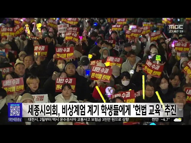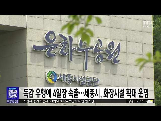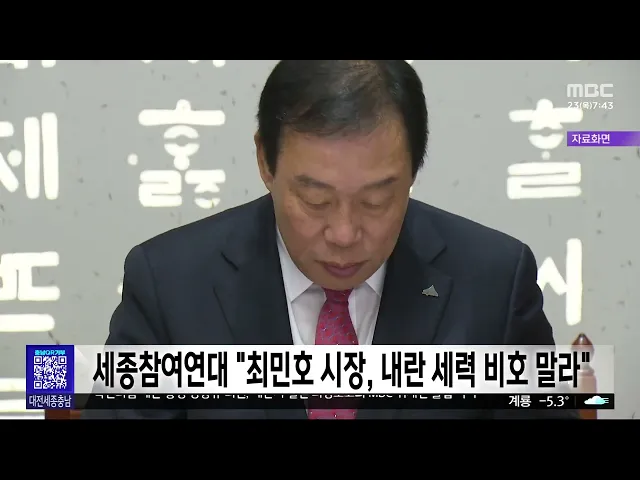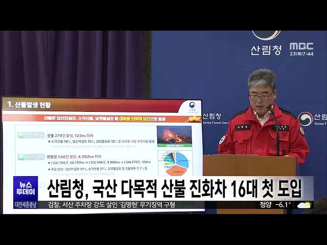 뉴스투데이 뉴스데스크뉴스투데이뉴스데스크 VOD(전체 다시보기)뉴스투데이 VOD(전체 다시보기)유튜브뉴스페이스북 뉴스카카오톡 뉴스인스타그램 뉴스 prev 2025.1.23 - 목요일 next 카이스트, 암 발생·전이 관여 단백질 기전 규명 카이스트 김세윤, 이광록, 조원기 교수 공동 연구팀이 각종 암 발생과 전이 현상 등에관여하는 유전자 발현 조절 단백질의 기전을규명했습니다.연구팀은 'IMPK' 단백질이 동물 세포의 핵심 유전자 발현에 ... 고병권 산림청, 국산 다목적 산불 진화차 16대 첫 도입 산불 대응을 위해 산악 환경에 최적화된 국산 다목적 산불 진화차 16대가 최초로 도입되고, 산사태 피해 방지를 위해 사방댐 천 개가 새로 설치됩니다.산림청은 이 같은 내용을 담은 새해 주요 업무 추진 ... 김지훈 세종참여연대 "최민호 시장, 내란 세력 비호 말라" 세종참여자치시민연대가 성명을 내고"최민호 세종시장은 내란 세력을 비호하지말고, 역사 앞에 부끄러운 행동을 멈추라"고촉구했습니다.참여연대는 "자신의 체포나 구속이 적법하지않다는 피의자 윤석열 ... 이승섭 충남경찰청, 강승규·장동혁 '내란 동조 혐의' 수사 착수 충남경찰청이 '대통령 관저 방탄'에 연루돼 진보당으로부터 고발당한 홍성·예산 강승규 의원과 보령·서천 장동혁 의원 등 국민의힘 소속 국회의원 2명에 대한 수사에 나섰습니다.충남경찰은 해당 고발 사... 김지훈 세종시의회, 비상계엄 계기 학생들에게 '헌법 교육' 추진 세종시의회가 12·3 비상계엄 사태를 계기로 학생들에게 민주주의와 헌법의 중요성 관련교육을 할 수 있도록 하는 조례 제정에나섰습니다.민주당 소속 이순열 세종시의원이 대표 발의한조례안은 세종시 학... 김지훈 대전 유등교 가설 교량 도마동 방면 24일부터 부분 개통 대전시가 지난해 집중호우로 침하한 유등교의 교통 통제에 따른 불편을 덜기 위해 설 연휴 전날인 내일부터 도마동 방면 가설 교량을 부분 개통합니다.부분 개통 구간은 버드내 네거리에서 도마 네거리로 ... 윤소영 한화 이글스, 호주 스프링캠프 출발...류현진 등 45명 참가 프로야구 한화 이글스가 어제호주 멜버른으로 스프링캠프를 떠났습니다.한화의 1차 캠프 명단에는 류현진과 채은성 등 주축 선수와 자유계약선수로 합류한 엄상백과 심우준,신인 정우주, 권민규 등 선수 4... 이승섭 충남신보, 신규 보증 9천5백억 원으로 확대..소상공인 지원 충남신용보증재단이 올해 신규 보증 규모를 9천5억 원으로 늘리고, 소상공인 자금으로6천억 원으로 확대해 상반기 집중 지원에나섭니다.또 충남 도내 42곳에 전담 창구와 통합 콜센터를 설치해 도민의 금... 김지훈 충남도, 새해 110개 청년 정책 추진..2천6백억 투입 충남도가 새해 2천6백억 원을 투입해 110개 청년정책을 추진합니다. 일자리 분야에서는 민간·공공 분야 체험형 청년인턴제도 운영과 우수기업 취업과 장기근속 지원, 학교 밖 청소년 일대일 입시 컨설팅 ... 최기웅 충남학교운영위원장협의회 "고교 무상교육비 정부 부담해야" 정부가 고교 무상교육 연장 법안을 거부한 것과 관련해 충남도학교운영위원장협의회가 "고교 무상교육 비용을 온전히 지방에 떠넘기는 것은 정부가 교육에 대한 책임을 회피하는 것"이라고 비판했습니다.... 최기웅 세종 3년 만에 새 아파트 공급..1순위 최고 경쟁률 134 대 1 세종에서 3년여 만에 신규 분양한세종시 5-1 생활권 아파트 1순위 청약이 평균 12 대 1의 경쟁률로 마감됐습니다.한국부동산원에 따르면 해당 아파트의 84㎡ P타입이 134.5 대 1로 가장 높은 경쟁률을기록... 이승섭 독감 유행에 4일장 속출..세종시, 화장시설 확대 운영 독감·폐렴 관련 사망자가 늘면서 화장장을 예약하지 못해 4일장을 치르거나 다른 지역으로 원정 화장을 가는 일이 잇따르자 세종시가 화장시설을 확대 운영하기로 했습니다.세종시 시설관리공단은 오늘부... 김지훈 검찰, 서산 주차장 강도 살인 '김명현' 무기징역 구형 지난해 11월 서산의 한 주차장에서 일면식도 없는 40대 남성을 흉기로 숨지게 하고시신을 인근 수로에 버린 혐의로 기소된 김명현에게 검찰이 무기징역을 구형했습니다.대전지법 서산지원 제1형사부 심리... 김지훈 '주민 입틀막' 논란 강승규..."MBC 들어오지 마"/투데이 ◀ 앵 커 ▶국민의힘 홍성·예산 강승규 의원이어제 열린 지역구 의정 보고회에서 MBC 취재진의 출입을 가로막았습니다.강 의원은 체포 영장이 집행되던 순간에도내란 수괴 혐의인 대통령을 위해 인간 방패로... 윤소영 "올해는 반드시 상위권"...태국서 담금질 시작/투데이 ◀ 앵 커 ▶올 시즌 K리그1 개막이 한 달도 남지 않았습니다.대전MBC는 올 시즌을 준비하는지역 프로구단인 대전하나시티즌의태국 전지훈련을 취재해 4차례에 걸쳐 연속 보도합니다.대전은 최하위를 전전했... 이승섭 "절망 딛고 희망으로"...서천특화시장 화재 1년/투데이 ◀ 앵 커 ▶1년 전 설 명절을 앞두고 서천특화시장에서 큰불이 나 2백 개가 넘는 점포가 잿더미로 변했는데요. 삶의 터전을 앗아간 갑작스러운 재난에 상인들은 망연자실했지만, 국민들의 성금과 관심 속에 ... 최기웅 "공기가 너무 탁해요"...초미세먼지 기승/투데이 ◀ 