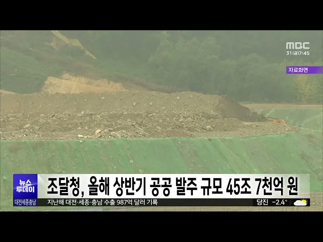 뉴스투데이 뉴스데스크뉴스투데이뉴스데스크 VOD(전체 다시보기)뉴스투데이 VOD(전체 다시보기)유튜브뉴스페이스북 뉴스카카오톡 뉴스인스타그램 뉴스 prev 2025.1.31 - 금요일 next 세종시, 모바일 헬스케어 참여자 모집 세종시는 모바일 앱을 이용해 전문가들에게 건강상담을 받는 모바일 헬스케어 참여자를 모집합니다. 참여자들은 24주 동안 건강검진과 영양·운동 모니터링을 통해 의사와 영양사 등 전문가... 김광연 충남도, 다음 달 고향사랑기부제 참여자에 증정품 제공 충남도가 다음 달 고향사랑 기부제 참여자에게 증정품을 제공하는 행사를 진행합니다. 이 기간 도에 10만 원 이상을 기부하고 답례품을 선택하면 증정품을 추가로 받을 수 있는데, 모금 유도를 위한 이번 ... 김광연 조달청, 올해 상반기 공공 발주 규모 45조 7천억 원 조달청이 올해 상반기 중앙행정기관과 지방자치단체, 공공기관의 물품·용역·공사 발주 규모가 45조 7천억 원에 이르는 것으로 집계했습니다. 이는 올해 전체 발주계획 70조 원의 65.3%에 달하는 것으로 ... 최기웅 충남도, 고부가가치 농축산산업 육성 거점 구축 추진 충남도는 고부가가치 농축산산업 육성 거점 구축을 위한 '개인 맞춤형 식품 푸드테크 연구지원센터' 유치에 나섰습니다. 푸드테크 연구지원센터는 농림축산식품부가 주관하는 식품 기업의 시제품 제... 최기웅 상반기 대전 트램 잔여 공사 발주⋯3천8백억 원 규모 지난해 6개 공구의 우선 발주를 마치고 착공에 들어간 대전 도시철도 2호선 트램의 잔여 공구 발주가 상반기 이뤄집니다. 대전시 등에 따르면 오는 3월부터 상반기 중 8개 잔여 공구와 차량기지, 기... 김지훈 지난해 대전·세종·충남 수출 987억 달러 기록 지난해 대전·세종·충남 지역 수출액이 987억 달러를 기록해 무역수지가 전년 대비 33.4% 증가한 516억 달러로 흑자를 냈습니다. 한국무역협회 대전·세종·충남 수출입 동향 보고서에 따르면, 지난해 지역 ... 최기웅 대전시 지방재정 전국 특·광역시 중 하위권 대전시의 지방 재정이 전국 8개 특·광역시 중 상당수 항목에서 하위권에 머물러 있는 것으로 나타났습니다. 지방재정 365에 따르면 지난해 기준 대전시는 재정자주도와 주민 1인당 세출예산액 부... 김지훈 '원자력 안전 교부세' 대전 유성구 지원 법안 재추진 다량의 방사성 폐기물을 보관중이지만 연구용 원자로란 이유로 국고 지원이 전무한 대전 유성구에 대해 국가 재정 지원을 가능하게 하는 방안이 추진됩니다. 대전 유성을 ... 김지훈 지난해 대전서 821건 화재 발생..감소율 전국 1위 지난해 대전에서는 821건의 화재가 발생해 58명의 인명 피해와 72억여 원의 재산 피해를 낸 것으로 집계됐습니다. 대전소방본부에 따르면 지난해 821건의 화재로 58명의 인명피해와 72억여 원의 재... 최기웅 설 연휴 경찰 신고 접수 건수, 전년 대비 9.1% 줄어 이번 설 연휴 기간 대전 지역 경찰 신고 건수가 지난해보다 9.1% 줄어든 것으로 나타났습니다. 대전경찰청은 지난 25일부터 닷새 동안 접수된 하루 평균 신고 건수는 1093건으로 전년보다 백여 건 감소했... 김광연 길어도 짧아도 아쉬워 "또 만나요"/투데이 ◀ 앵 커 ▶ 엿새간의 긴 연휴 마지막 날이었던어제, 역과 터미널은 다시 일상으로 돌아가는 사람들과 배웅나온 가족들로 붐볐습니다. 도심 공원에서는 친구와 가족 단위 인파가 몰려 스케이트... 김광연