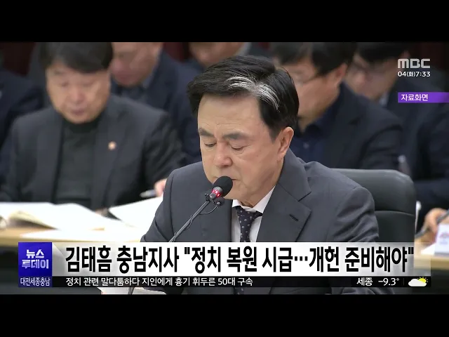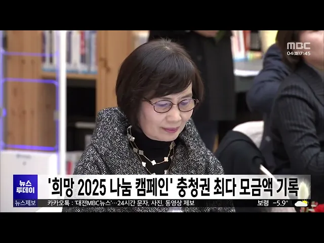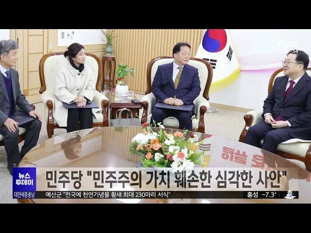 뉴스투데이 뉴스데스크뉴스투데이뉴스데스크 VOD(전체 다시보기)뉴스투데이 VOD(전체 다시보기)유튜브뉴스페이스북 뉴스카카오톡 뉴스인스타그램 뉴스 prev 2025.2.4 - 화요일 next 충남 금산사랑상품권 결제 후 환급방식으로 전환 충남 금산사랑상품권이 선할인에서 결제 후 환급 방식으로 전환됩니다.금산군은 부정 유통 방지와 지역 내 소비 진작을 위해, 오는 4월부터 금산사랑상품권 할인 방식을 사용 후 5% 환급으로 전환한다고 ... 조형찬 예산군 "전국에 천연기념물 황새 최대 230마리 서식" 천연기념물 황새가 전국적으로 최대 230여 마리 서식하는 것으로 나타났습니다.예산군에 따르면 50여 명으로 구성된 '전국황새모니터링 네트워크' 조사단의실사 결과 지난해 최대 231마리의 황새가관찰됐... 김지훈 충남 농산물 배달플랫폼 판매액 100억 돌파 대전시가 구직 단념 청년 등의 일상 회복을 돕기 위한 '2025년 청년도전 지원사업' 참여자를 모집합니다.신청 대상은 18살에서 34살 사이 구직 단념 청년이나 자립 준비 청년 등220명으로, 짧게는 5주부터... 김지훈 대전 청년도전사업 참여자 모집..최대 350만 원 지원 대전시가 구직 단념 청년 등의 일상 회복을 돕기 위한 '2025년 청년도전 지원사업' 참여자를 모집합니다.신청 대상은 18살에서 34살 사이 구직 단념 청년이나 자립 준비 청년 등220명으로, 짧게는 5주부터... 김지훈 대덕특구 육성 사업에 310억 원 투입..연구성과 사업화 중심 연구개발특구진흥재단 대덕특구본부가 올해 특구 연구성과 사업화 132억 원 등 대덕특구 활성화를 위해 올해 310억 원을투입합니다.특히 연구 성과 사업화를 위해 산·학·연·관으로 이뤄진 혁신 주체 네트... 김지훈 '희망 2025 나눔캠페인' 충남권 최다 모금액 성료 '희망 2025 나눔 캠페인'이 마무리된 가운데, 대전과 세종, 충남 지역 모두 나눔 온도 100도를 넘어서며 역대 최다 모금액을 달성했습니다.대전은 71억 8천만 원을 모금해 나눔 온도 105.8도를,세종은 지... 김성국 충청광역연합 혁신정책 공유 토론회 개최 충청광역연합이 세종에서 토론회를 열어 충청권 4개 시도의 우수한 혁신 정책을 공유하고, 상생 발전을 위한 다양한 의견을 나눴습니다.충청권 4개 시도가 모여 전국 최초로 출범한 특별자치단체인충청광... 문은선 천안 업성2초교 설치 사업 교육부 중앙투자심사 통과 천안 서북구 업성도시개발 지역에 추진 중인 천안 업성2초등학교 설치 사업이 교육부 중앙투자심사를 통과했습니다.업성2초교는 특수학급 3개를 포함해47개 학급, 천 14명을 수용할 수 있으며업성2유치원... 문은선 충남도 특사경, 학교 주변 유해환경 단속 충남도 특별사법경찰은 새 학기를 앞두고 학교 주변을 중심으로 식품 위생과 청소년 보호 분야 특별 단속을 시행합니다. 이번 단속은 도와 시군 특사경 등 합동 단속으로 진행되며 이달 말까지 학교 주변... 최기웅 지역 예비 초등생 22명 소재 미확인...해외 체류 추정 대전과 세종, 충남에서 예비 초등생 22명의소재가 확인되지 않아 경찰이 소재 파악에 나섰습니다. 지역 경찰청은 지난달 진행한 초등학교예비 소집 결과, 충남 16명, 대전 4명, 세종 2명 등 22명의 소재가... 조형찬 경찰, 이진숙 방통위원장 업무상 배임 혐의 입건 대전 유성경찰서가 법인 카드 부정 사용 의혹을 받는 이진숙 방송통신위원장을업무상 배임 혐의로 입건해 수사하고 있습니다.이 위원장은 지난 2015년 3월부터 2018년 1월까지 대전MBC 사장으로 재직하던... 김성국 화장실서 여성에 흉기 휘두른 군인 '강간 등 살인' 혐의 기소 대전지검이 지난달 8일 대전 중구의 한 상가여자 화장실에 몰래 들어가, 처음 본 여성을성폭행하려다 미수에 그치자 흉기를 휘두른혐의로 20대 현역 군인을 재판에 넘겼습니다.경찰은 당초 이 남성에 대해... 김성국 대전시, '명태균 변호' 김소연 변호사 법률특보 위촉 논란 대전시가 대통령 부부 공천 개입 의혹의 핵심 인물인 명태균 씨의 변호인을 맡았던 김소연 변호사를 비상임 법률특보로 위촉해논란이 일고 있습니다.대전시는 민선 8기 후반기 시정 동력 확보를 위해 법률... 김지훈 야당, 국민의힘 충청권 시도지사 尹 면회 계획 규탄 국민의힘 소속 충청권 시도지사들이서울 구치소에 있는 윤석열 대통령 면회를 계획한 것과 관련해 야권의 규탄이 잇따르고 있습니다.조국혁신당 대전시당은 대변인 논평을 통해"불법 계엄을 선포하고 내란... 문은선 김태흠 충남지사 "정치 복원 시급...개헌 준비해야" 김태흠 충남지사가 내각제나 이원집정부제 등권력 구조 개편을 위한 개헌 필요성을 주장하고 나섰습니다.김 지사는 자신의 SNS를 통해 "현 상황은 마치 해방 이후 정국의 혼란을 보는 듯하다"며 "정치 복... 김지훈 모레까지 8cm 눈⋯영하 10도 안팎 강추위 세종과 천안, 아산에 대설주의보가 내려진 가운데 충남 서해안과 내륙 일부 지역에눈이 내리고 있습니다.어제부터 내린 눈의 양은 보령 외연도 1.3cm,세종 전의 1.1cm 등으로 일부 지역에서는 시간당 1cm... 김광연 "드라마 보듯 안전 교육" 소방서 '전원일기' 화제/투데이 ◀ 앵 커 ▶화재를 예방하거나 응급 상황에서 대처 방법을 잘 알고 있다면 피해를 줄일 수 있