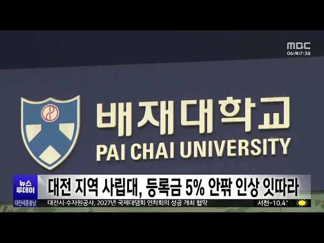 뉴스투데이 뉴스데스크뉴스투데이뉴스데스크 VOD(전체 다시보기)뉴스투데이 VOD(전체 다시보기)유튜브뉴스페이스북 뉴스카카오톡 뉴스인스타그램 뉴스 prev 2025.2.6 - 목요일 next 대전시, 여성 농업인 특수 건강검진 지원 대전시가 올해 처음으로 여성 농업인의 특수 건강검진을 지원하는 사업을 시행합니다.시는 대전에 사는 50~60대 여성농업인을 대상으로 2년에 한 번씩 심혈관계와 폐활량, 농약 중독 등의 검진 비용을 1인... 이승섭 수공, 국내 생산 초순수 품질 검·인증 기반 구축 나서 한국수자원공사가 표준과학연구원 등과 함께 반도체 생산 과정에서 불순물과 오염물을 씻는 데 사용하는 '초순수' 기술 검·인증 기반 구축에 나섭니다.현재 국내에서 개발된 '초순수' 생산기술은상용화를 ... 문은선 독립기념관, 3·1절 맞이 가족 대상 체험 프로그램 운영 독립기념관이 3·1절을 앞두고 초등학교 4학년이상을 포함한 가족을 대상으로 한 체험형 교육 프로그램 '꼬리에 꼬리를 무는 3·1운동 이야기' 참가 가족을 모집합니다.이번 프로그램은 독립기념관 제3전시... 김지훈 '농경지 상습 침수' 세종 연동면·연서면 일대 배수 개선 집중호우 때마다 농경지 침수 피해를 보았던세종시 연동면과 연서면 일대에 배수 개선 사업이 진행됩니다.세종시는 이들 지역이 농림축산식품부의 배수 개선 사업 착수 지구에 최종 선정됨에 따라 국비 29... 문은선 대전하나시티즌 시즌권 '원큐패스' 판매 시작 프로축구 대전하나시티즌이 어제 오후 1시부터 내일까지모바일 시즌권인 '원큐패스'를 판매합니다.'원큐패스'는 대전하나시티즌의 올 시즌 K리그1 홈경기를 25% 할인된 가격으로관람할 수 있는 차감형 모... 이승섭 12일 정월대보름 가장 둥근 달 밤 10시 53분 관측 한국천문연구원은 오는 12일 정월대보름에 가장 둥근 달은 오후 10시 53분에 뜬다고밝혔습니다.이때는 지구를 기준으로 달과 태양이 정반대 편에 일직선상으로 위치해 완전히 둥근 모습을 갖는 시각입니다... 김지훈 세종 반다비 빙상장 '장애인 참여' 방안 마련 장애인 생활체육 활성화를 위해 지어진세종 반다비 빙상장에 장애인을 위한프로그램이 부족하다는 대전MBC 지적과 관련해세종시가 장애인들이 빙상장을 이용할 수있는 방안을 마련합니다.시는 세종시장애... 문은선 지난해 충남 시설물 14% 화재 안전 조사 '불량' 지난해 충남소방본부는 공동주택과 전통시장 등 전체 소방대상물에 대한 화재 안전 조사를 한 결과 열 곳 가운데 한 곳 이상이 불량한 것으로 나타났습니다. 충남소방본부가 소방대상물의 5.8%인 6천360곳... 최기웅 대전 지역 사립대, 등록금 5% 안팎 인상 잇따라 지역 사립대들의 등록금 인상이 잇따르고 있습니다.이미 등록금을 인상한 건양대에 이어 목원대가 학부와 대학원 각각 4.98% 인상을, 배재대는 학부 등록금만 5.47% 인상을 확정했습니다.우송대 역시 학부... 문은선 태안군 인구 6만 명 붕괴 초읽기..부여군·금산군도 위기 지역 소멸 위기가 확산하는 가운데 태안군 인구 6만 명 붕괴가 초읽기에 들어갔습니다.태안군에 따르면 1월 말 기준 인구는 6만 2명으로 1년 전보다 720여 명 감소했습니다.여기에 올해부터는 태안화력 발... 김지훈 충청광역연합의회 의원 3명 사퇴..출범 직후 파열음 충청권 4개 시·도의원 16명으로 구성된충청광역연합의회가 의원 3명이 사퇴하며,출범하자마자 파열음을 내고 있습니다.충청광역연합의회는 지난해 12월, 첫 임시회 이후 의장단 구성에 반발한 박종선 대전... 이승섭 '영하 10도' 한파 기승..오후부터 많은 눈 밤사이 세종과 천안, 아산 등 충남권에 내려졌던 대설주의보가 모두 해제된 가운데오늘 오후부터 또다시 많은 눈이 내리겠습니다.지금까지 쌓여 있는 눈은 계룡산 17.9cm, 세종 전의 7.6cm 당진 3.3cm 등... 김성국 '비행기 탄소' 충남서 줄여유...'지속가능항공유'가 뜬다/투데이 ◀ 앵 커 ▶폐식용유를 활용한 항공 연료를 '지속가능 항공유'라고 하는데요.탄소 배출을 줄이기 위해 전 세계가 도입을 확대하고 있습니다.이런 지속가능 항공유를 종합적으로 연구 개발하는 대형 프로젝트... 최기웅 집에 감춰진 아이들...피해자 72% '13살 이하'/투데이 ◀ 앵 커 ▶친아버지가 지적 장애가 있는 딸을 상대로 초등학교 시절부터 성폭력을 저지른 사건, 대전MBC가 단독으로 전해드렸죠.친족 성폭력으로 상담한 피해자 70% 이상이 13살 이하로 조사될 만큼 가정 ... 김성국 판치는 위조 '안전교육 이수증'...건설 현장 안전 '구멍'/투데이 ◀ 앵 커 ▶건설 현장에서 반드시 필요한 안전 교육 이수증을 2백 장 넘게 위조해 불법 체류자 등에게 판매한 일당이 경찰에 붙잡혔습니다.4~5년 전부터 이수증 위조 사례가 잇따르고있지만, 여전히 제도 개... 윤소영