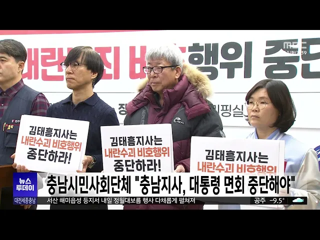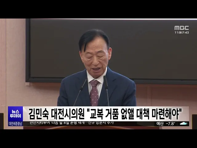 뉴스투데이 뉴스데스크뉴스투데이뉴스데스크 VOD(전체 다시보기)뉴스투데이 VOD(전체 다시보기)유튜브뉴스페이스북 뉴스카카오톡 뉴스인스타그램 뉴스 prev 2025.2.11 - 화요일 next 서산 대산항에 역대 최대 규모 컨테이너 항로 개설 서산 대산항에 역대 최대인 2천 500 TEU 급 컨테이너선이 오갈 수 있는 항로가 개설됐습니다. 신규 항로는 대산항을 떠나 중국 다롄 등과 인도네시아 자카르타, 그리고 필리핀 다바오로 가는... 최기웅 대전시, 꿈돌이 라면 시식평가회 개최..5월 출시 대전시가 구내식당에서 공무원들을 대상으로 '대전 꿈돌이 라면 시식평가회'를 개최했습니다. 이번 행사는 지난해 11월 체결된 협약을 바탕으로 개발 중인 '대전 꿈돌이 라면'의 맛을 평가하고, ... 김지훈 대전서 오는 14일부터 모바일 주민등록증 발급 세종시와 대전 서구 등 전국 8개 지자체에서 시범 운영 중인 모바일 주민등록증 발급이 이달 안에 충청권 전 지역으로 확대됩니다. 대전은 오는 14일부터, 충남은 28일부터 행정복지센터에서 IC ... 문은선 김민숙 대전시의원 "교복 가격 거품 없앨 대책 마련해야" 대전시의회 김민숙 의원이 시의회 임시회 본회의에서 "학부모들의 교복 가격 부담을 줄이기 위해 종합적인 대책을 마련할 것"을 시교육청에 촉구했습니다. 김 의원은 "대전시교육청의 무상교복 정책이 6년... 김지훈 교복 가격 성적표 '처참'...내년에 다를까?/투데이 ◀ 앵 커 ▶ 충청권 교복 업체들의 가격 담합으로 학부모와 학생들이 비싼 교복을 구매해야 하는 현실들을, 얼마 전 전해 드렸습니다. 올해 신입생 교복 구매 절차가 마무리됐는데 결과는 여전했습니다. 업... 윤소영 천안 농업단체, 정부 벼 재배면적 감축 계획 중단 촉구 천안지역 6개 농업단체 대표들이 성명을 내고 정부의 벼 재배면적 감축 계획 중단을 촉구했습니다. 이들은 농민들이 반발하자 정부가 강제 감축 대신 자율 감축을 내놨지만 인센티브와 페널티를 통해 정부... 문은선 충남지역 시민사회 "김태흠 지사 윤석열 면회 중단해야" 김태흠 충남지사 등 충청권 4개 시·도지사가 '내란혐의'로 구속 수감 중인 윤석열 대통령 면회를 추진 중인 것으로 알려진 가운데, 충남지역 시민사회가 '내란수괴 옹호'라며 면회 추진을... 최기웅 경제 한파에 투자 유치 사활/투데이 ◀ 앵 커 ▶ 미국발 관세전쟁과 극심한 내수 침체로 지역 경기는 한파보다 더 심하게 얼어붙고 있습니다. 성장 동력을 잃어가는 지역 경제에 활로가 필요한 시점인데, 충남... 최기웅 천리안 5호 개발 사업설명회 오늘 대전서 개최 우주항공청과 기상청이 추진 중이 첫 민간 주도 정지궤도 기상위성인 천리안 위성 5호 개발 사업설명회가 오늘 대전에서 열립니다. 설명회에서는 천리안 5호의 개발 사업 방향과 함께 시스템과 본체 개발,... 김지훈 대전시, 올해 전기차 1천8백여 대 대상 보조금 지원 대전시가 전기차 확대를 위해 올해 천 8백여 대의 전기차에 대당 830만 원에서 최대 1억 4천5백만 원까지 보조금을 지원합니다. 지원 차종은 승용차가 천6백여 대로 가장 많고 화물차 250대, ... 김지훈 세종시 도시상징광장 조성 마무리..박물관단지 등과 연계 세종시 나성동 2-4생활권에 조성 중이던 도시상징광장 2단계 공사가 끝나 일반에 개방했습니다. 도시상징광장은 정부세종2청사에서 중앙공원까지 약 1.2km 보행광장으로, 지난 2021년 5월 나성동 ... 문은선 세종 첫마을 IC 속도 낼까?/투데이 ◀ 앵 커 ▶ 세종시에서 고속도로로 접근성을 높일 핵심 시설인 대전-당진 고속도로 첫마을 하이패스 나들목 설치가, 새해 들어 속도를 낼 수 있을지 주목됩니다. 최근 행정중심 복합도시건설청이 첫마을 ... 문은선 대전 초교서 1학년 학생 흉기에 찔려 사망‥학교 교사 범행 자백/투데이 ◀ 앵 커 ▶ 대전의 한 초등학교에서 1학년 학생이 흉기에 찔려 숨졌습니다. 현장에서는 40대 교사 한 명도 다친 채 발견됐는데, 이 교사는 경찰에 살인 혐의를 자백했습니다. 김광연 기... 김광연