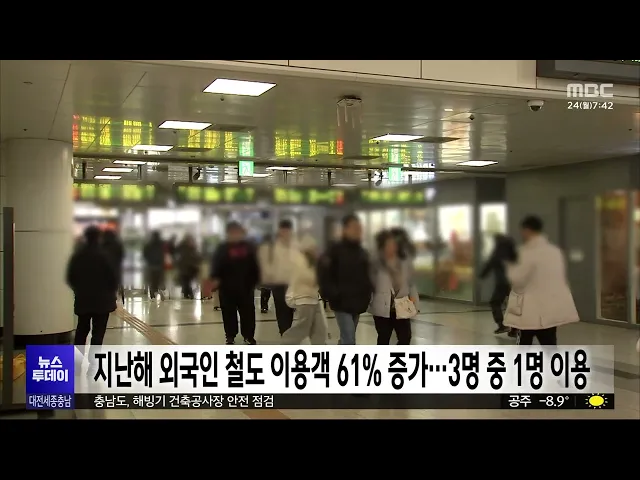 뉴스투데이 뉴스데스크뉴스투데이뉴스데스크 VOD(전체 다시보기)뉴스투데이 VOD(전체 다시보기)유튜브뉴스페이스북 뉴스카카오톡 뉴스인스타그램 뉴스 prev 2025.2.24 - 월요일 next 대전 중구, 온마을이 함께하는 맞춤형 통합돌봄 추진 대전 중구가 지역 내 거주하는 어르신들의 편안한 생활을 돕기 위해 온마을 통합돌봄 사업을 통한 촘촘한 돌봄 체계 구축에 나섭니다. 중구는 75살 이상 어르신 1천 명 대상 욕구조사를 실시하고 찾아가는... 김광연 한국원자력연, 출연연 최초 상생 경영 우수기업 인증 한국 원자력연구원이 정부출연 연구기관 최초로 상생 경영 우수기업 인증을 받았습니다. 상생 경영 우수기업은 한국경영인증원이 상생 프로그램의 연계성·효과성·지속가능성과 사회공헌 ... 최기웅 지난해 외국인 철도 이용객 전년 대비 61% 증가 지난해 외국인 철도 이용객이 전년보다 61% 증가한 것으로 나타났습니다. 한국철도공사에 따르면 지난해 외국인 철도 이용객은 554만 명으로 전년 대비 210만 명 증가해 방한 외국인 3명 중 1명이 열... 최기웅 장철민 의원, 청소년 AI 구독료 지원 법안 발의 더불어민주당 장철민 의원이 저소득층과 청소년의 인공지능 구독료를 지원하는 내용을 포함한 '인공지능 발전과 신뢰 기반 조성 등에 관한 기본법 개정안'을 대표 발의했습니다. 개정안은 국가나 지방자치... 최기웅 세종시, 셋째 이상 초등학교 입학 시 20만 원 지원 세종시가 다음 달부터 초등학교에 입학하는 셋째 이상 아이에게 20만 원의 입학지원금을 지급합니다. 시는 입학일인 다음 달 4일을 기준으로 세종시에 주민등록을 둔 셋째 이상 입학자에게 지역화폐 여민... 김광연 저출산 여파로 충남서 9곳 폐교 예정 저출산 여파로 학령인구가 줄어들며 올해 충남에서도 9곳의 학교가 폐교 예정인 것으로 나타났습니다. 국회 교육위원회 진선미 더불어민주당 의원이 교육부에서 제출받은 '전국 17개 시도교육... 최기웅 충남도, 해빙기 건축공사장 안전 점검 충남도는 해빙기를 맞아 다음 달 17일까지 건축공사장 민관 합동점검에 나섭니다. 합동점검반은 도·시군 담당공무원, 국토안전관리원, 민간전문가로 구성했으며, 점검 대상은 15개 시군 104개 공사장... 최기웅 충남도, 소상공인 경영정상화 자금 50만 원 지원 충남도는 지난해 매출이 1억 400만 원에 미치지 못하는 소상공인에게 경영정상화 자금 50만 원을 지원합니다. 경영정상화 자금은 총 575억 원이 투입되며 도와 시·군이 절반씩 부담하는데 사행성... 최기웅 내수 침체·관세 전쟁 등 악재로 지역 경제 회복 더뎌 내수 침체와 고환율, 글로벌 관세 전쟁 등 불안정한 대내외 환경으로 지역 경제 회복이 더딘 것으로 나타났습니다. 한국은행 대전세종충남본부가 발표한 '2월 소비자동향조사 결과'에 따... 최기웅 아쉬운 패배..."리그 상위권 기대해요"/투데이 ◀ 앵 커 ▶ 지난 경기 대승에 이어안방에서 2연승을 노린 대전 하나시티즌이 어제 열린 홈 개막전에서 패했습니다. 경기 막판까지 공세를 이어갔지만 2점 차로 졌는데, 경기장을 찾은 관중들은 아쉬운 마음... 김광연