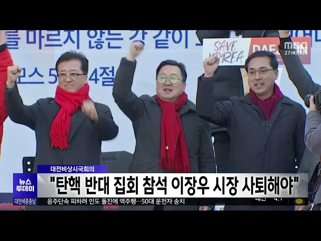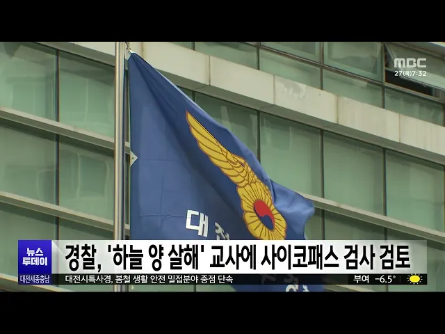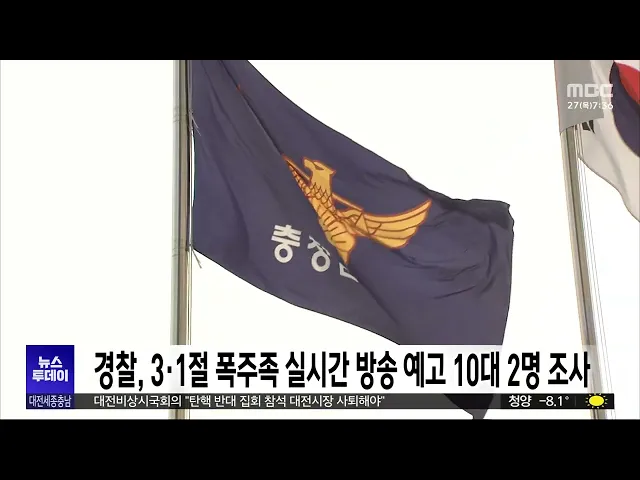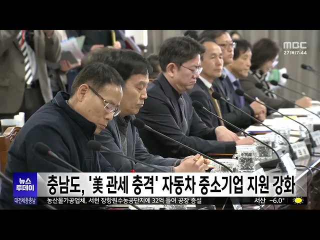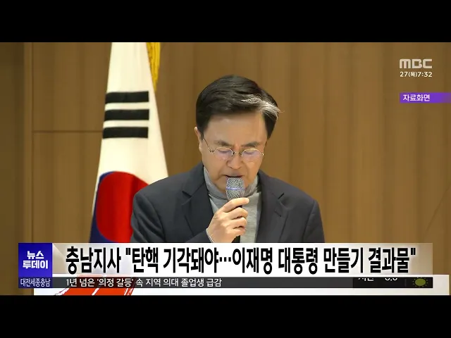 뉴스투데이 뉴스데스크뉴스투데이뉴스데스크 VOD(전체 다시보기)뉴스투데이 VOD(전체 다시보기)유튜브뉴스페이스북 뉴스카카오톡 뉴스인스타그램 뉴스 prev 2025.2.27 - 목요일 next 홍성군, '수급 차질'에 새조개 축제 조기 종료 홍성군은 기상 이변에 따른 새조개 수급 부족으로 남당항에서 진행 중인 '새조개와 함께하는 수산물 축제'를 내일 조기 종료하기로 했습니다. 군은 당초 축제가 오는 4월 7일까지 두 달 동안 이어... 최기웅 충남도, 美 관세 부과 충격 완화 대비 충남도는 미국의 관세 부과 등의 영향으로 타격이 예상되는 자동차 중소기업에 대한 지원을 강화합니다. 이에 따라 미래차 전환과 연구개발, 기술 이전 등에 6천867억 원을 투자하는 등 친환경 미래차 전... 최기웅 청양군의회, 지천댐 추진 계획 백지화 촉구 청양 지천댐 건설 계획으로 주민 찬반 갈등이 계속되는 가운데 청양군의회가 댐 건설 계획 백지화를 촉구하고 나섰습니다. 청양군의회는 성명을 통해 "환경부의 지천댐 추진으로 지역민들이 둘로 나뉘었다... 김지훈 세종연구원 독립..세종시-시의회 2라운드?/투데이 ◀ 앵 커 ▶ 세종시 자체 싱크탱크인 종합정책연구기관 설립을 놓고 시와 시의회 사이 갈등이 재연되면서 여론전으로 발전하는 모양새입니다. 시와 의회가 번번이 정치 논리에 기대, 감정 대립을 ... 문은선 충남소방, 해빙기 안전사고 주의해야⋯3년간 360건 발생 충남소방본부가 최근 기온 상승에 따라 지반 침하와 축대 붕괴, 낙석 사고 등 해빙기 안전사고 발생이 우려된다며 주의를 당부했습니다. 이에 따라 노후 건축물 주변을 지날 때는 균열이나 지반 ... 김지훈 세종충대병원 응급의학과 교수 2명 채용⋯응급실 정상화 수순 응급의학과 전문의 사직으로 응급실을 축소 운영해 온 세종 충남대병원이 정상화 수순을 밟고 있습니다. 병원 측은 응급의학과 교수 2명을 채용하는 등 의료진을 충원해 다음 달에는 2일과 4일, 6... 김광연 1년 넘은 '의정 갈등' 속 지역 의대 졸업생 급감 1년넘게 의정 갈등이 이어지면서 올해 지역 의대 졸업생이 크게 줄었습니다. 충남대 의대의 경우 정원이 110명이지만 의대생 집단 휴학 등으로 14명만 졸업했고, 건양대는 전체 49명 중 1명만 졸업장을 ... 김지훈 일본어 걷어낸 '한글 토지대장' 첫선/투데이 ◀ 앵 커 ▶ 올해는 광복 80주년이지만, 우리 사회와 문화 곳곳에는 여전히 일제 잔재가 남아있는데요. 삼일절을 앞두고 충남에서 일본 연호와 일본식 한자 등을 모두 걷어낸 '한글 토지대장'이... 최기웅 독립기념관, 3.1절 기념식 개최..다채로운 행사도 독립기념관은 3월 1일 겨레의 집에서 사전 모집한 100가족이 참석하는 삼일절 기념식을 진행합니다. 기념식에 이어 국민 공모로 모인 명예 독립운동가 천 919명이 참여하는 극단 우금치의 삼일절 퍼포먼스... 문은선 경찰, 3·1절 폭주족 실시간 방송 예고 10대 2명 조사 충남경찰청이 3·1절 천안지역 폭주 행위를 현장에서 실시간 방송하겠다는 내용의 SNS 게시글을 올린 10대 2명을 특정해 수사에 나섰습니다. 경찰은 해당 게시물 삭제를 요청하는 한편 이들을 공동위... 김지훈 천안시, 3.1절 폭주족 경찰과 합동 단속 천안시가 3.1절을 앞두고 해마다 되풀이되는 3.1절 폭주족을 경찰과 합동 단속합니다. 시는 내일 오후 6시부터 다음 날 오전 6시까지 주요 도로와 폭주족 집결 예상 지역에 검문소를 설치해 불법 경주... 문은선 '위험천만' 인도 질주에 역주행..."단속 피하려고.."/투데이 ◀ 앵 커 ▶ 대전 도심에서 인도를 질주하고 역주행까지 일삼으며 아찔한 도주극을 벌인 50대 운전자가 경찰에 붙잡혔습니다. 면허정지 수준으로 술에 취한 상태에서 6km를 운전하다 음주단속... 김광연 경찰, '하늘 양 살해' 교사에 사이코패스 검사 검토 고 김하늘 양을 살해한 40대 교사가, '반사회적 인격장애'에 해당할 가능성이 제기되면서, 경찰이 사이코패스 검사를 진행하는 방안을 검토하고 있습니다. 사건을 수사 중인 대전서부경찰서는 아직 검사 ... 윤소영 충남지사 "탄핵 기각돼야..이재명 대통령 만들기 결과물" 김태흠 충남지사가 윤석열 대통령 탄핵과 관련해 "계엄에 반대했지만 탄핵에 대해서도 반대한다"는 입장을 밝혔습니다. 김 지사는 자신의 SNS에서 "이번 탄핵 과정이 공정성과 정당성을 잃어 기각돼야 ... 김지훈 대전비상시국회의 "탄핵 반대 집회 참석 대전시장 사퇴해야" 지난 주말 대전에서 열린 탄핵 반대 집회에 참석해 단상에 오른 이장우 대전시장 등에 대한 사퇴 요구가 거세지고 있습니다. 대전비상시국회의는 성명을 내고 "이장우 시장과 국민의힘 소속 ... 김윤미 "또 무너질까 무서워요" 주민들 불안·불편/투데이 ◀ 앵 커 ▶10명의 사상자를 낸 고속도로 교량 붕괴 사고, 이틀이 지났지만 주민들은 여전히 불안합니다. 크레인 등이 50m 높이 교각에 걸쳐 있는 데다, 교각 역시 사고 충격을 받은 만큼 추가 붕괴를... 김성국