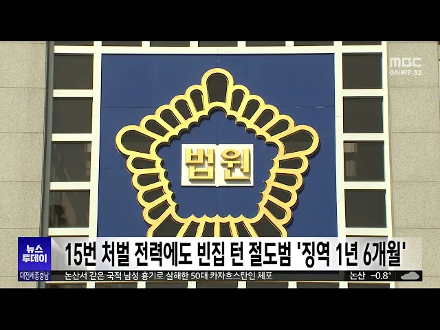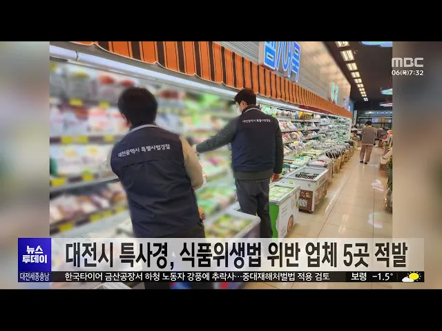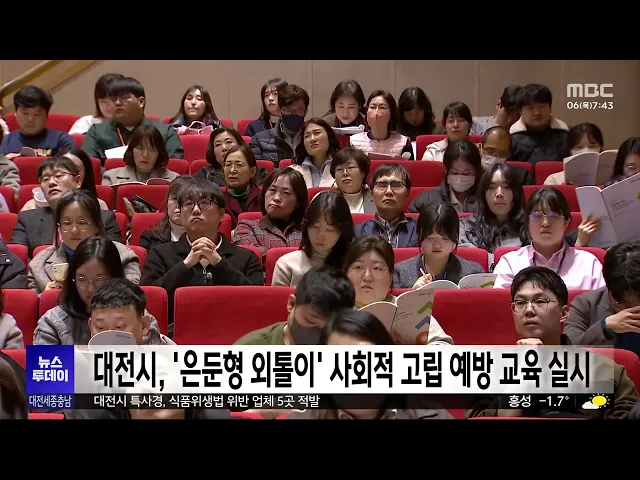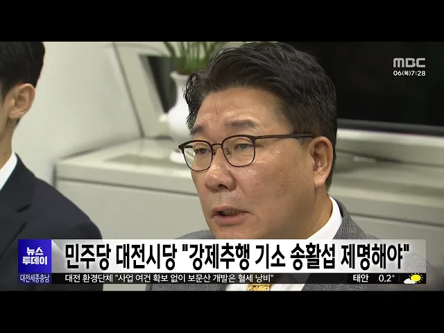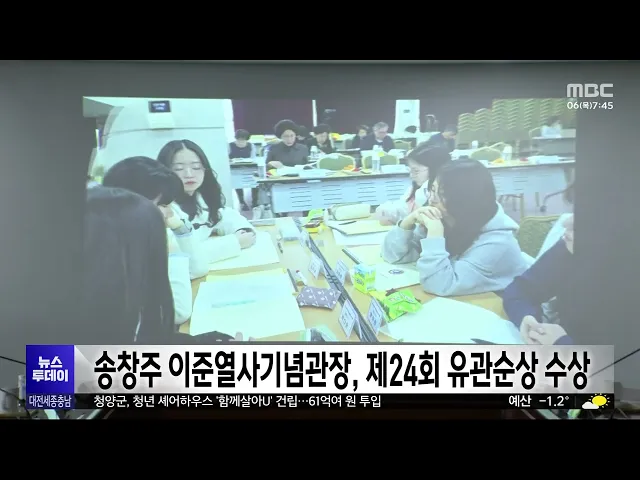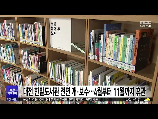 뉴스투데이 뉴스데스크뉴스투데이뉴스데스크 VOD(전체 다시보기)뉴스투데이 VOD(전체 다시보기)유튜브뉴스페이스북 뉴스카카오톡 뉴스인스타그램 뉴스 prev 2025.3.6 - 목요일 next 충남대, LH 계약학과 기술경영건설학부 신설 충남대가 한국토지주택공사 LH 재직자의 교육을 전담하는 기술경영 건설학부를 신설합니다.LH 계약학과인 기술경영건설학부는LH가 기존 토지주택대학교에서 운영하던선취업 후진학 재직자 대상 6개 전공 ... 문은선 송창주 이준열사기념관장, 유관순상 수상 대한민국 최고 여성상인 유관순상 수상자에 송창주 이준열사기념관장이 선정됐습니다. 유관순상위원회는 제24회 유관순상 수상자로 송 관장을 선정하고, 또 유관순횃불상 수상자로 당진 송악고 김송현·이... 최기웅 산림청, 국가유산 복원지원..춘양목 등 2,413그루 공급 산림청이 국가유산의 보수·복원을 위해영주국유림관리소에서 관리하는소나무와 참나무류 등 2천여 그루를 국가유산수리재료센터에 공급합니다.특히 이번에 공급하는 소나무 중 60% 이상이평균 지름 45cm ... 문은선 서산 호수공원 공영주차장 조성 감사원 감사 ‘적법’ 서산시가 추진 중인 호수공원 옆 예천지구 공영주차장 조성 사업과 관련해 시민단체 등이 감사원에 낸 공익감사청구가 받아들여지지 않았습니다. 서산시는 "최고 감사기구인 감사원에서 적법 판정을 내렸... 최기웅 대전시, '은둔형 외톨이' 사회적 고립 예방 교육 실시 대전시가 시청에서 사회서비스 기관 종사자와 은둔형 외톨이 가족, 공무원 등 5백여 명이 참석한 가운데고독사와 사회적 고립 예방 교육을 진행했습니다.이번 교육에서는 지난해 실시한 대전시의실태조사... 이승섭 대전 한밭도서관 전면 개·보수..다음 달부터 휴관 대전의 대표 도서관인 한밭도서관이지난 1989년 개관 이후 처음으로전면 개·보수 공사에 돌입합니다.한밭도서관은 국토교통부의 그린리모델링 사업에 선정돼 백억 원을 들여 다음 달부터 낡은 창호와 설비... 이승섭 충남교육청, 늘봄학교 현장 점검 충남교육청이 새학기를 맞아 김지철 충남교육감 등 교육 관계자들이 참석한 가운데 늘봄학교 현장 점검에 나섰습니다. 현장 점검에서는 늘봄교실 운영 현황과 함께 귀가 안전 대책과 주변 환경 안전 취약 ... 최기웅 경찰, 초등생 살해 교사 대면 조사 일정 조율 대전 초등생 피살 사건 가해 교사의건강 상태가 호전되면서 경찰이 대면조사 일정을 조율 중인 것으로 파악됐습니다. 대전 서부경찰서는 "최근 피의자가 산소호흡기를 제거한 뒤 건강 상태가 호전됐다"며 ... 윤소영 세종시의회 안신일 의원 "야간경관 기준 마련해야" 전국에서 처음으로 야간부시장을 임명하며 야간경제 활성화에 나선 세종시에정작 조명 설치와 운영에 관한명확한 기준이 없다는 지적이 나왔습니다.세종시의회 안신일 의원은 5분 발언에서 행복청 기준을 ... 문은선 세종시, 한글 놀이터 조성 추진 세종시가 국립한글박물관과 함께어린이들이 한글을 배우며 한글의 원리를체험할 수 있는 놀이공간을 조성합니다.가칭 한글 놀이터 세종관 위치는 원하는 읍면동을 대상으로 적합도 조사 등을거쳐 오는 18... 문은선 15번 처벌 전력에도 빈집 턴 절도범 징역 1년 6개월 대전지법 형사8단독은 절도죄 등으로 과거 15차례 처벌받은 전력이 있는데도 다시 빈 집에서 금품을 훔친 혐의로 기소된 절도범에게 징역 1년 6개월을 선고했습니다. 지난 2022년 말 절도죄 등으로 징역형... 윤소영 대전시 특사경, 식품위생법 위반 업체 5곳 적발 대전시 특별사법경찰이 최근 두 달 동안식품 제조와 유통 업체를 대상으로 기획 수사를벌여 관련 법률을 위반한 업체 5곳을 적발했습니다.이들은 지자체에 신고 없이 영업하거나제조원을 허위로 표시하는 ... 이승섭 관세청, 금 밀수 집중 단속..시세차익 노린 밀수 증가 관세청이 국내외 시세 차익을 노린금 밀수가 증가함에 따라 단속을 강화합니다.관세청은 최근 홍콩과 대만에서1kg 금괴와 0.3~0.5kg으로 쪼갠 금 24개, 29억 원 상당을 바지 안쪽, 여행가방 바퀴 속 등에 ... 문은선 인건비 부풀려 2년간 6억원 챙긴 인삼공사 전 직원 징역형 대전지법 형사4단독은 인력 파견업체와 짜고지난 2018년부터 2년 가까이 6억 원에 달하는인건비를 부풀려 회사에 청구한 뒤 차액을 나눠 가진 혐의로 기소된 한국인삼공사 전 직원에게 징역 2년 6개월을 ... 김지훈 민주당 대전시당 "강제추행 혐의 기소 송활섭, 의원직 제명해야" 민주당 대전시당이 "대전시의회는 강제추행 혐의로 기소된 송활섭 의원을 의원직에서 즉각 제명하라"고 촉구했습니다.민주당은 논평을 통해 "2023년 시의회 직원을 성희롱해 소속 정당인 국민의힘으로부터... 김지훈 논산·천안서 흉기 휘두른 사건 잇따라..2명 사상 그제 저녁 7시 40분쯤 논산시 은진면의한 원룸에서 카자흐스탄인이같은 국적의 50대 남성이 휘두른 흉기에가슴이 찔려 숨졌습니다.그제 오후 5시 반쯤 천안시 서북구의 한 아파트에서는 아들이 휘두른 흉... 조형찬 실수로 버린 아들 수술비...한마음으로 되찾아/투데이 ◀ 앵 커 ▶기획보도 이음 순서입니다.세종에서 쓰레기로 착각해 버려졌던 수천만 원