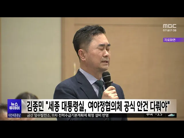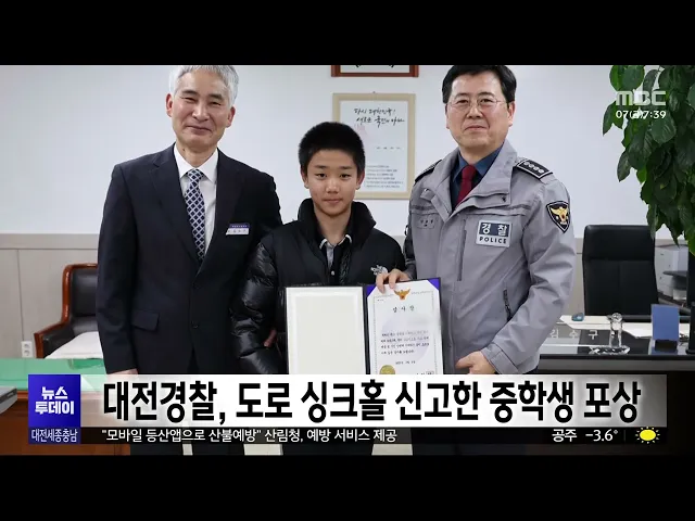 뉴스투데이 뉴스데스크뉴스투데이뉴스데스크 VOD(전체 다시보기)뉴스투데이 VOD(전체 다시보기)유튜브뉴스페이스북 뉴스카카오톡 뉴스인스타그램 뉴스 prev 2025.3.7 - 금요일 next 아산시, 충무공 이순신장군배 노젓기대회 참가팀 모집 아산시가 다음 달 열리는 제64회 아산 성웅 이순신축제 기간에 개최하는 '충무공 이순신장군배 전국 노젓기대회'의 참가팀을 오는 14일까지 모집합니다.올해 두 번째를 맞은 노젓기대회는 아산 곡교천 특... 김윤미 목원대, 소진공 '로컬콘텐츠 중점대학' 선정 목원대가 충청권에서는 유일하게소상공인시장진흥공단의 로컬콘텐츠중점대학 사업 주관 기관에 선정됐습니다.로컬콘텐츠 중점대학은 창의적인 아이디어와지역자원을 결합한 로컬콘텐츠를 개발하고 로컬 창... 문은선 세종시의회, 세종시 친환경 정책 축소 등 질타 세종시의회가 최민호 시장의 친환경 정책 축소 등을 질타했습니다.이현정 의원은 임시회 제2차 본회의5분 발언에서 세종시의 올해 전기차 보조금지원 규모가 160대로 지난해보다 40대 줄었고인구 3만 도시... 문은선 세종시장 시정질문 불참에 시의회 "의회 경시 처사" 세종시의회가 협치와 상생을 앞세워 초유의 의장 직권 상정을 통해 독자적인 정책연구원 조례안을 처리한 가운데 최민호 세종시장이 시의회 시정질문에 불참해논란이 일고 있습니다.시의회는 임시회 2차 ... 김윤미 한화이글스, 새 구장서 첫 훈련...내일 시범경기 개막 프로야구 한화이글스가 어제새로 문을 연 홈구장인 대전한화생명볼파크에서 첫 훈련을 진행했습니다.한화 1군과 2군 선수단은 자체 청백전을 펼쳐비대칭 그라운드와 몬스터월 등 새 홈구장에 적응하기 위... 이승섭 경찰, '고수익 보장' 투자금 가로챈 60대 송치 대전경찰청이 대전에 업체를 세워 지난 2022년부터 1년 동안 블록체인과 줄기세포 등의 사업에 투자하면높은 수익을 보장하겠다며 투자자를 모집해 53억여 원을 가로챈 혐의로 56살 전 모 씨를 불구속 상... 이승섭 초등생 살해 40대 교사 대면조사 '늦어도 다음 주' 대전 초등생을 살해한 40대 교사에 대한 대면 조사가 늦어도 다음 주 중으로 진행될 전망입니다.대전 서부경찰서는 최근 산소호흡기를 뗀 피의자의 건강 상태가 호전되면서의료진 판단에 따라 이르면 이번... 윤소영 대전 둔산경찰서, 도로 싱크홀 신고한 중학생에 포상 대전둔산경찰서는 도로 싱크홀을 발견하고신속히 신고해 대형 사고를 예방한 중학생 이 모 군에게 감사장과 신고 포상금을 수여했습니다.이 군은 지난달 17일, 대전시 둔산동의 한 버스정류장 앞에서 직경... 윤소영 '美관세 회피' 원산지 조작 우려에 관세청 일제 단속 미국의 고관세 부과 등으로 관세 부담을회피하기 위한 원산지 조작 우려가 커지면서 관세청이 다음 달까지 일제 단속에 나섭니다.단속 대상은 원산지를 거짓으로 표시하거나 표시를 손상 또는 변경하는 등... 김윤미 김종민 "세종 대통령실, 여야정협의체 공식 안건 다뤄야" 대통령실 세종 이전을 둘러싸고 정치권 논의가 활발한 가운데 김종민 의원이 "대통령 집무실 세종 이전을공식 안건으로 다뤄야 한다"고 제안했습니다.김 의원은 자신의 SNS를 통해 "민주당과 이재명 대표... 김윤미 태안군 인구 6만 명 붕괴...인구 감소 가속화 태안군 인구가 6만 명 아래로 떨어지는 등 인구 감소가 가속화되고 있습니다. 지난달 말 기준 태안군 인구 수는 5만 9천8백여 명으로 지난해 같은 기간 대비 730여 명 줄었습니다. 태안군 인구는 서산군... 최기웅 부여 무량사 미륵불 괘불도, 국보로 승격 한국 대형 불화의 대표적인 작품으로 꼽히는부여 무량사 미륵불 괘불도가 보물로 지정된 지28년 만에 국보로 승격됩니다.무량사 미륵불 괘불도는 조선 후기인 1627년에 제작된 대형 불화로, 충청 지역에서... 이승섭 "운전 줄이면 최대 10만 원"...충남도, 탄소중립포인트제 참여자 모집 충남도는 환경 오염 예방을 위해자동차 탄소중립포인트제에 참여할 운전자 3,024명을 오는 10일까지 모집합니다.탄소중립포인트제에 참여하면 자동차 주행거리 감축 실적에 따라 2만 원에서 최대 10만 원... 윤소영 봄철 담배꽁초 화재 주의 "끝까지 살펴야"/투데이 ◀ 앵 커 ▶담배꽁초 때문에 발생하는 화재가잇따르고 있는 가운데, 특히 대기가건조한 봄철 각별한 주의가 필요한데요.담배꽁초로 인한 불은 곧바로 나타나지 않는 만큼 투기 자체를 주의해야 하고, 완전히... 김성국 이재명 "대통령실 세종 이전 검토"...행정수도 재점화/투데이 ◀ 앵 커 ▶조기대선이 가시화되며 다시금 세종시의 행정수도론이 뜨거워지고 있습니다. 이재명 더불어민주당 대표가 최근 지도부 회의에서 대통령실의 세종 이전가능성을 검토하라고 지시했는데요.전국시도... 문은선 충남 '지천댐' 추진 재확인...갈등 재점화 우려/투데이 ◀ 앵 커 ▶지난해 10월 환경부가 댐 건설과 관련해 주민 반대가 심하면 신설 후보지로 포함하지 않겠다는 입장으로 선회하면서 청양 지천댐은 후보지에서 잠정 보류됐었죠. 하지만 백지화는 아닌 후보지(안... 최기웅