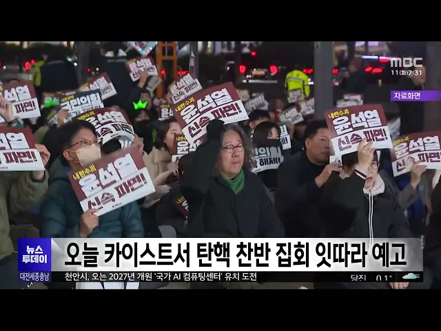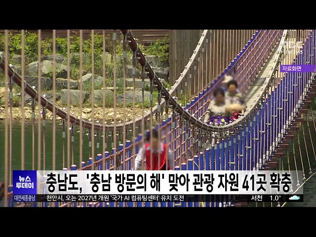 뉴스투데이 뉴스데스크뉴스투데이뉴스데스크 VOD(전체 다시보기)뉴스투데이 VOD(전체 다시보기)유튜브뉴스페이스북 뉴스카카오톡 뉴스인스타그램 뉴스 prev 2025.3.11 - 화요일 next 천안시, 국가 AI 컴퓨팅센터 유치 도전 천안시가 인공지능 산업 도시로의 도약을 위해 국가 AI 컴퓨팅센터 유치에 도전합니다. 시는 정부와 민간이 2조 5천억 원을 투입해 오는 2027년 개원을 목표로 비수도권에 구축하는 국가 AI 컴퓨팅센... 김윤미 가로림만 해상교량 건설 추진 서명 1만4천 돌파 가로림만 해상교량 건설사업 범군민 추진위원회가 진행 중인 서명운동 참여자가, 만 4천명을 돌파했습니다. 태안군 이원면 만대항과 서산시 대산읍 독곶리를 왕복 2차로의 해상교량으로 잇는 가로림만... 최기웅 충남도, '충남 방문의 해' 맞아 관광 자원 41곳 확충 충남도는 올해와 내년 '충남 방문의 해'를 맞아 3천 488억 원을 투입해, 41개 관광 자원 개발 사업에 나섭니다. 이에 따라 올해 공주 백제문화전당과 금산 금강 여울목길, 태안 천수만 탐방로 조성 ... 김지훈 대전-충남 행정통합 특별법 초안·기본 방향 윤곽 대전시와 충남도의 행정통합을 추진하는 민관협의체가 특별법 초안과 행정통합의 기본 방향을 마련했습니다. 가칭 대전충남특별시 설치 및 경제과학수도 조성을 위한 특별법은 미래 전략 산업을 구축하고,... 이승섭 대전 트램 이달 말 착공..교통 체증 해소 대책 추진 대전시가 이달 말부터 도시철도 2호선 트램 공사를 본격적으로 시작하는 가운데, 교통 체증을 해소하기 위한 대책을 내놨습니다. 시는 14개 공사 구간에서 차량 흐름에 따라 전국 최초로 다인승 전용차로... 이승섭 '지역발전' 교육혁신 '시동'..RISE 사업 공모/투데이 ◀ 앵 커 ▶ 그동안 교육부 중심이었던 대학 재정지원이 올해부터 자치단체 주도로 바뀝니다. 지역 산업과 연계한 대학 혁신을 통해 지역과 대학의 동반 성장을 꾀한다는 건데 어느 대학에 얼마의 ... 문은선 한국해양과학기술원 서해연구소 서천에 둥지 충남도가 한국해양과학기술원 서해연구소 설립 시범사업 대상지 공모와 관련해, 서천 장항국가 생태산업단지를 최적지로 선정했습니다. 한국해양과학기술원 서해연구소는 갯벌과 금강하구 생태, 해양 바이... 최기웅 서산시, '개 물림 사고 진료비' 10만 원 지원 서산시가 올해 시민안전보험 보장 항목에 '개 물림 사고 진료비'를 추가해 반려견이나 유기견에게 물린 시민은 진료비 10만 원을 지원받을 수 있습니다. 등록 외국인을 포함해 서산시민 누구나 시민안전보... 김지훈 고병원성 AI 이달이 고비/투데이 ◀ 앵 커 ▶ 천안에서 또다시 조류인플루엔자가 발생했습니다. 지난해 겨울부터 지금까지 지역에서 11번째인데요. 극심한 한파로 철새들의 겨울나기 기간이 늘어난 것이 원인으로 ... 최기웅 "민생·생명 위협 '한미연합 군사연습' 중단하라" 민주노총 대전본부가 11일 동안 실시되는 한·미군의 정례 연합 훈련인 자유의 방패 연습을 즉각 중단하라고 촉구했습니다. 이들은 대전시청 북문에서 기자회견을 열고 "최근 한미연합군사훈련 중 전투기 ... 김성국 K리그1 대전 주민규·이창근, 국가대표팀 발탁 K리그 1 대전 하나시티즌의 공격수 주민규와 골키퍼 이창근이 북중미 월드컵 예선전에 나설 국가대표팀에 선발됐습니다. 주민규는 올 시즌 4경기에 나서 4골을 넣어 득점 1위에 올라있고, 이창근은 연이... 이승섭 세종 목욕탕 3명 감전사..업주, 혐의 일체 부인 지난 2023년 세종의 한 목욕탕에서 감전으로 3명이 숨진 사건과 관련해 업무상 과실치사 혐의로 기소된 목욕탕 업주가 첫 재판에서 전기 관련 설비 제조사의 책임을 주장하며 혐의를 모두 부인했습니다. ... 김성국 초등생 살해 교사 신상정보 공개심의위 오늘 개최 대전에서 초등학생을 살해한 혐의로 구속된 40대 교사에 대한 신상정보 공개 여부가 오늘 결정됩니다. 대전경찰청은 오늘 오후 2시쯤 청사 내에서 가해 교사에 대한 신상정보 공개심의위원회... 김성국 인삼 경매제 논의 한창인데...금산 군수, 이권단체서 접대 논란/투데이 ◀ 앵 커 ▶ 단독 보도 순서입니다. 예전 만큼은 아니지만 건강을 위해 여전히 많은 분들이 인삼을 찾는데요, 가격 때문에 부담을 느끼는 경우가 많습니다. 이 때문에 전국 인삼의 70%가 모이... 윤소영 오늘 카이스트서 탄핵 찬반 집회 잇따라 예고 최근 대학가를 중심으로 윤석열 대통령 탄핵 찬반 집회가 잇따르고 있는 가운데 오늘 카이스트에서도 찬반 집회가 잇따라 예고됐습니다. 카이스트 일부 졸업생들은 "불법으로 이뤄진 대통령 탄핵... 김윤미 국민의힘 시도지사협의회 "헌재, 대통령 탄핵 각하해야" 대전과 세종, 충남 시도지사가 포함된 국민의힘 시도지사협의회가 입장문을 내고,헌법재판소에 윤석열 대통령 탄핵 심판의 각하를 촉구했습니다. 협의회는 윤석열 대통령의 구속을 취소한 법원... 이승섭 "대통령 석방 환영" 최민호 세종시장 발언 규탄 잇따라 최민호 세종시장이 기자 간담회에서 무죄 추정의 원칙을 강조하며 윤석열 대통령의 구속 취소 결정과 석방을 환영한다고 밝힌 데 대해 규탄의 목소리가 이어지고 있습니다. 세종시의회 민주