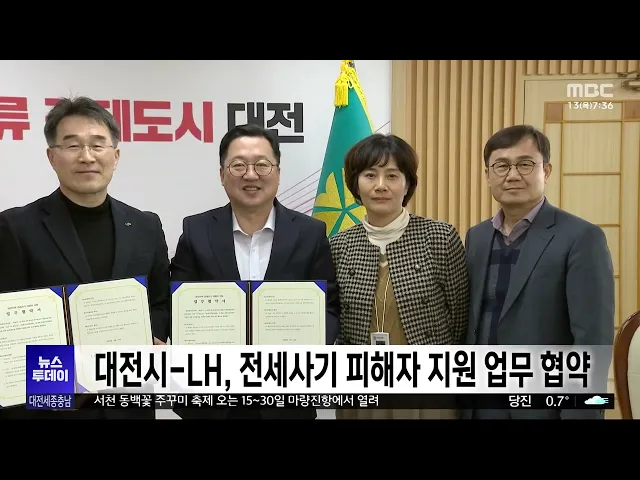 뉴스투데이 뉴스데스크뉴스투데이뉴스데스크 VOD(전체 다시보기)뉴스투데이 VOD(전체 다시보기)유튜브뉴스페이스북 뉴스카카오톡 뉴스인스타그램 뉴스 prev 2025.3.13 - 목요일 next 대전시, 소상공인 임대료 지원 2배 확대⋯1만 명 혜택 대전시가 경기 침체로 어려움을 겪는 소상공인을 돕기 위해 지난해에 이어 임대료를 지원합니다. 시는 지난해보다 예산을 두 배 늘린 34억 원을 투입해 상반기와 하반기에 걸쳐 모두 만 개 업체에 최대 30... 이승섭 세계유산 등재 10주년 기지시줄다리기 축제 큰줄 제작 시작 올해 유네스코 인류무형 문화유산 등재 10주년을 맞는 기지시 줄다리기 축제가 한 달 앞으로 다가온 가운데 큰 줄 제작이 시작됐습니다. 당진시는 지난달 24일부터 짚 6천단으로 큰줄 재료가 되는 작... 조형찬 코레일, '부정승차 방지' 열차 승차권 특별 단속 한국철도공사가 부정승차 근절 등을 위해 내일부터 열차 내 승차권 특별 단속반을 운영합니다. 코레일은 KTX와 무궁화호 등을 대상으로 이용수요가 많은 출퇴근 시간과 단거리 구간, 주말과 연휴 기... 문은선 한복모델 사진 허가 없이 쓴 대전전통문화연구원장 벌금형 대전지법 형사9단독은 모델 사진을 허가 없이 한복 관련 대회의 광고에 사용한 혐의로 기소된 대전전통문화 연구원장에게 벌금 70만 원, 법인에는 벌금 30만 원을 각각 선고했습니다. 해당 원장은 2023년 ... 윤소영 우주망원경 스피어엑스, 발사 성공·초기 운영 돌입 한국천문연구원과 나사 등이 공동 개발한 우주망원경 스피어엑스가 어제 낮 12시 10분쯤 미국 캘리포니아주 밴덴버그 우주군 기지에서 성공적으로 발사됐습니다. 스피어엑스는 스페이스X의 팰컨9 발사체에... 박선진 (주)신화, 대전시에 장애인의 날 기념 쌀 50톤 기탁 주식회사 신화가 다음 달 장애인의 날을 앞두고, 대전시와 대전사회복지 공동모금회에 1억 2천여만 원 상당의 쌀 50톤을 기탁했습니다. 시와 모금회 측은 이번에 받은 물품을 5개 자치구에 있는 장애인 가... 이승섭 세종시 로컬푸드 수산물 코너 개장 20일 만에 폐업 세종시 로컬푸드 직매장에 입점한 수산물 코너가 개장 20일 만에 폐업해 시의 행정력이 비판받고 있습니다. 세종시는 지난 1월 세종시 소담동 남부 BRT 환승센터에 로컬푸드 직매장인 싱싱장터 4호점을 열... 문은선 김태흠 지사 “내포 난방비 인하 조속 추진” 김태흠 충남지사가 그제내포신도시아파트연합회 회원들을 만난 자리에서 최대한 빠른 시일 내에 난방요금이 인하될 수 있도록 하겠다며 관련 부서에 조속한 조치를 지시했습니다. 또, 향후 난방요금 인... 조형찬 "드론 테러 막는다!" 방위통합훈련 진행/투데이 ◀ 앵 커 ▶ 러시아-우크라이나 전쟁 등에서 드론이 살상 무기로 활용되면서 드론 테러 위험도 커지고 있는데요. 우리 군이 국가중요시설에 드론 테러가 발생한 상황을 가정해 경찰과 소방 등과 함께 대응... 김성국 대전환경운동연합 "환경부, 9개 댐 후보지도 백지화해야" 어제 열린 국가수자원관리 위원회에서 기후대응댐 14곳 중 5곳의 댐 후보지가 백지화 된 것과 관련해 나머지 9개 댐 후보지도 백지화해야 한다는 주장이 제기됐습니다. 대전환경운동연합은 논... 조형찬 대전시-LH, 전세사기 피해자 지원 MOU 대전시가 한국토지주택공사 대전충남지역본부와 업무 협약을 맺고, 전세사기 피해자를 적극 지원하기로 했습니다. 이번 협약으로 대전시는 전세사기 피해자를 위한 전세피해지원센터를 운영하고, LH는 피... 이승섭 '150억 원대' 전세 사기 임대업자 징역 13년 6개월 대전지법 형사 8단독은 대덕 연구개발특구 인근에서 연구원 등을 상대로 150억 원대 전세 사기를 벌인 혐의로 기소된 50대 임대업자에게 징역 13년 6개월을 선고했습니다. 피고인은 지난 2020년부터 3년... 윤소영 '대권 행보' 김동연 "탄핵으로 내란 종식해야"/투데이 ◀ 앵 커 ▶ 대권 잠룡으로 꼽히는 김동연 경기지사가 조기 대선에 대비해 보폭을 넓히고 있습니다. 한달 만에 대전을 다시 찾아 12.3 비상계엄 이후 사회적 혼란을 즉각적인 대통령 탄핵으로 끝... 김윤미 "탄핵 인용·즉각 파면"..尹 석방 후폭풍/투데이 ◀ 앵 커 ▶ 헌법재판소의 윤석열 대통령 탄핵 심판 선고가 예상보다 늦어질 가능성이 제기되면서 윤 대통령 즉각 파면을 촉구하는 광장의 목소리는 점점 커지고 있습니다. 그제 카이스트에 이어 ... 문은선 대전-충남 통합 논의 간담회 개최..통합 법률안·절차 논의 대전충남 행정통합 민관협의체가 세종에서 대전-충남 통합 논의를 위한 간담회를 열고, 통합자치단체 명칭과 권한 이양, 특례 등이 담긴 통합 법률안을 공유하고, 향후 추진 방향을 논의했습니다. ... 조형찬 4.2 재보궐 오늘부터 후보자 등록..충청 3곳서 선거 4.2 재보궐선거 후보자 등록이 오늘부터 이틀 동안 진행됩니다. 지역에서는 아산시장과 충남도의원 당진시 제2선거구, 대전시의원 유성구 제2선거구 등 3곳에서 치러집니다. 특히 이번 재보궐선거는 내년 ... 문은선 고 김하늘 양 살해 교사 신상공개...48살 명재완/투데이 ◀ 앵 커 ▶ 지난달 대전의 한 초등학교에서고 김하늘 양을 살해한 가해 교사의 신상 정보가 공개됐습니다. 피의자