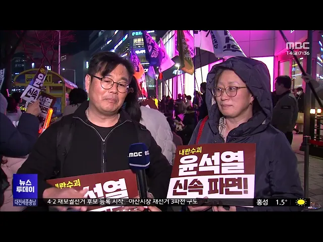 뉴스투데이 뉴스데스크뉴스투데이뉴스데스크 VOD(전체 다시보기)뉴스투데이 VOD(전체 다시보기)유튜브뉴스페이스북 뉴스카카오톡 뉴스인스타그램 뉴스 prev 2025.3.14 - 금요일 next 장애아 양육지원사업 신청자 모집 충남도가 장애아 가정의 양육 부담을 줄이고 보호자의 사회활동을 돕기 위한 ‘장애아 가족 양육 지원사업’ 신청자를 연중 모집합니다. 기준중위소득 120% 이하 가정은 아동 1명당 연 1080시간 내에서 월 1... 최기웅 세종시, 1003번 광역버스 노선 오송2지구까지 연장 세종시가 대전 유성구와 세종시, 충북 청주를 오가는 1003번 광역버스 노선을청주 오송2지구까지 연장합니다.이번 노선 조정으로 1003번 광역버스가 기존 오송역 종점에서 오송2지구까지 연장되며 하루 64... 김윤미 세종시 월평균 사교육비 47만 8천 원..전국 평균 웃돌아 지난해 우리나라 초중고 사교육비 총액이29조 2천억 원이라는 교육부와 통계청의 조사 결과가 나온 가운데세종시의 학생 1인당 월평균 사교육비가 전국 평균을 웃도는 것으로 나타났습니다.세종시의 학생 ... 김윤미 김태흠 지사 "탄핵 남발 경종..대통령에도 적용돼야" 감사원장 등에 대한 탄핵소추안을헌법재판소가 기각한 것과 관련해 김태흠 충남지사가 환영한다며 탄핵 남발에 대한 경종이라고 평가했습니다.김 지사는 자신의 SNS를 통해"헌재의 이번 결정은 민주당의 ... 김윤미 100일 아기 던졌다 떨어뜨려 숨지게 한 친부, 2심서 금고형 대전지법 4형사부가 지난 2018년 대전에서 생후 1백 일 된 아기를 위로 던졌다가 떨어뜨려 숨지게 한 혐의로 기소된 친부에 대한 항소심에서 금고 1년에 집행유예 2년의 1심을 파기하고 금고 1년 9월을 선... 김광연 화장실 침입해 여성에 흉기 휘두른 군인 "고의성 없어" 지난 1월 대전 중구의 한 상가 여자 화장실에 몰래 들어가, 처음 본 여성에게 흉기를 휘두르고 성폭행을 시도한 혐의로 기소된 20대 현역 군인이 첫 재판에서 고의성을 부인했습니다.대전지법 형사11부 박... 김성국 세종시, 3천억 원 규모 골프장·리조트 투자 유치 세종시 장군면에 오는 2029년 준공을 목표로 18홀 규모 골프장과 300여 실을 갖춘 리조트가 들어설 전망입니다.세종시는 국내 한 건설사와 3천억 원 규모의 투자 양해각서를 체결했으며 이번 투자로 200여... 김윤미 보령댐 저수율 33.4%…보령시 "생활 속 물 절약 실천" 충남 서부 8개 시,군에 용수를 공급하는보령댐 저수율이 30% 초반까지 떨어져 보령시가 생활용수 감축 공급을 검토하고 있습니다.보령시와 금강홍수통제소 등에 따르면,어제 오전 기준 보령댐 저수율은 33... 조형찬 모바일 주민등록증 오늘부터 전국 발급 확대 지난해 12월 세종 등에서 시작된 모바일 주민등록증 발급이 오늘부터 전국으로 확대됩니다.행정안전부는 단계적으로 발급이 확대된디지털 신분증인 모바일 주민등록증을 전국의 주민등록상 주소지 주민센... 김윤미 이준석 "충청, '옳은 중도' 택할 것"/투데이 ◀ 앵 커 ▶개혁신당 대선 예비 후보로 단독 입후보하며대선 레이스에 뛰어든 이준석 의원이 대전을 찾았습니다.진보와 보수의 대립이 아닌 상식을 가진 사람들을 중심으로 정계 개편을 이루겠다며 충청은 ... 박선진 충청권 시도지사 "대통령 탄핵 각하돼야"/투데이 ◀ 앵 커 ▶ 대통령 탄핵심판 선고가 임박한 가운데 국민의힘 소속 충청권 시도지사들이 "탄핵은 각하돼야 한다"며 다시 한 번 대통령 비호에 나섰습니다.지역 현안 추진을 위해 대통령이 업무에 빨리 복귀... 최기웅 100일째 이어진 촛불..."탄핵 선고 그날까지"/투데이 ◀ 앵 커 ▶12.3 내란 이후, 다음 날부터시작된 윤석열 대통령 탄핵 촉구 집회가어제로 정확히 100일을 맞았습니다.저녁 늦게까지 이어진 탄핵 촉구 집회를 마친 뒤에도,일부 시민들은 24시간 철야 농성장으... 윤소영 서천 무차별 살인...'34살 이지현'/투데이 ◀ 앵 커 ▶서천에서 처음 본 여성을 흉기로 살해한혐의로 구속된 피의자의 신상 정보가 공개됐습니다.'34살 남성 이지현'입니다.경찰은 우발이나 충동이 아닌 계획 범행으로 보고 이 씨를 살인 혐의로 구속... 김성국 4.2재보궐 후보 등록 시작..민심은 어디로/투데이 ◀ 앵 커 ▶4.2 재보궐선거가 후보 등록을 시작으로 본격적인 막이 올랐습니다.지역에선 아산시장 등 3곳에서 치러지는데대통령 탄핵 정국에 내년 지방선거까지앞두고 있어 민심의 향배에 정치권의 관심이쏠... 문은선